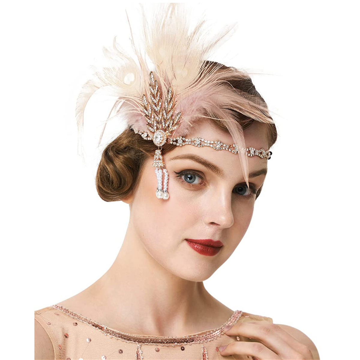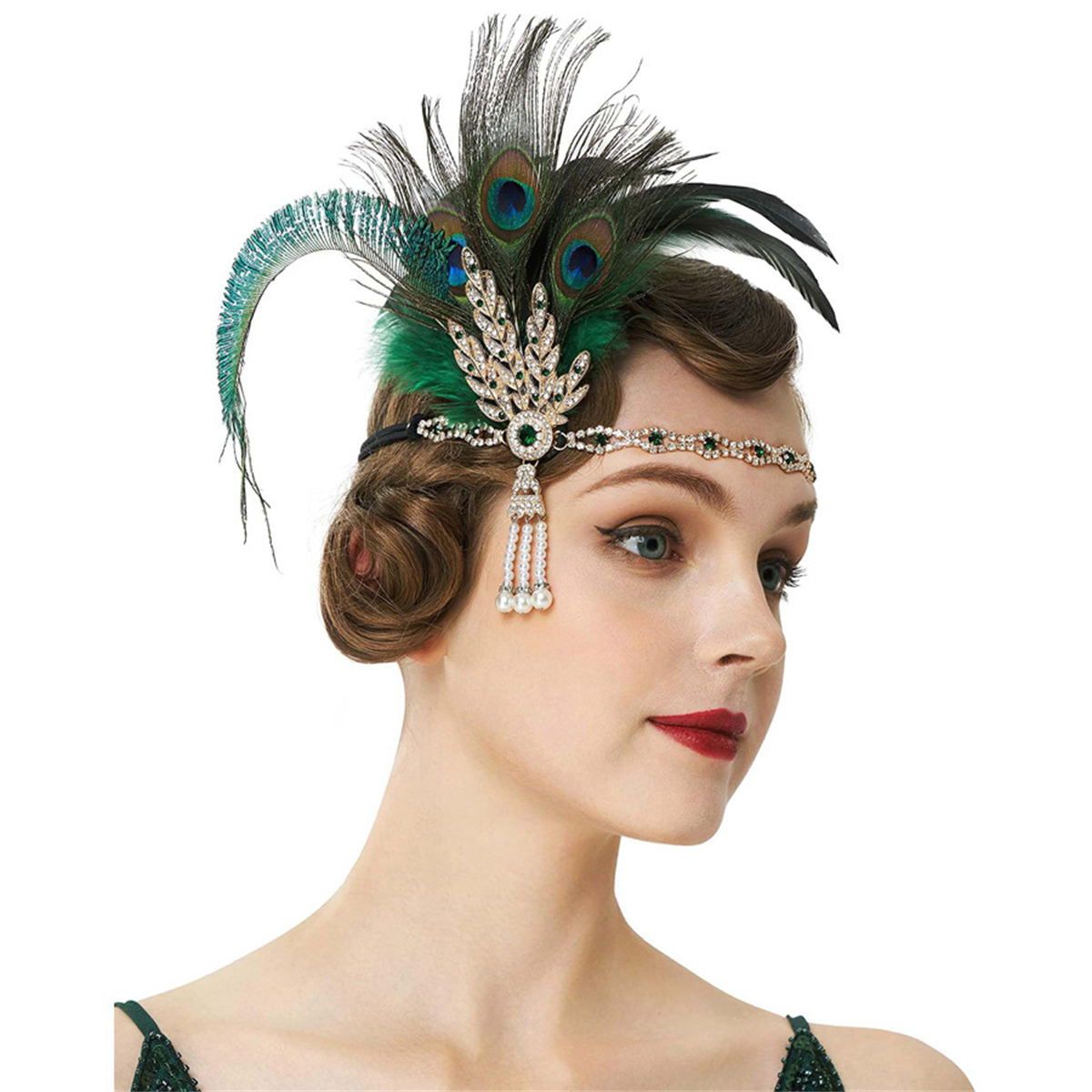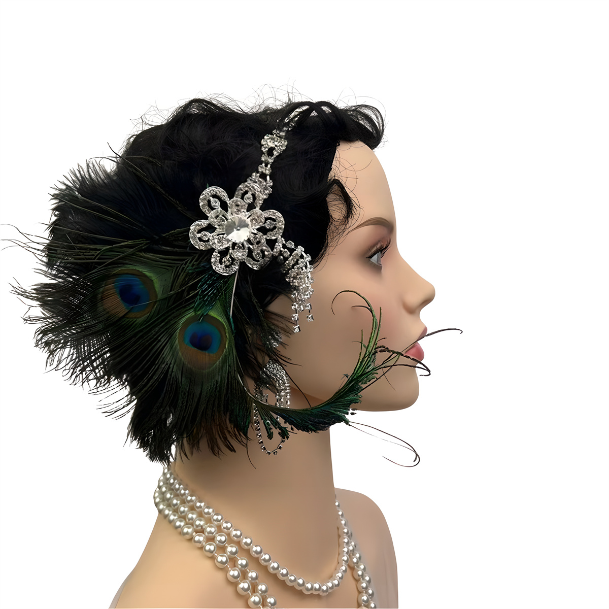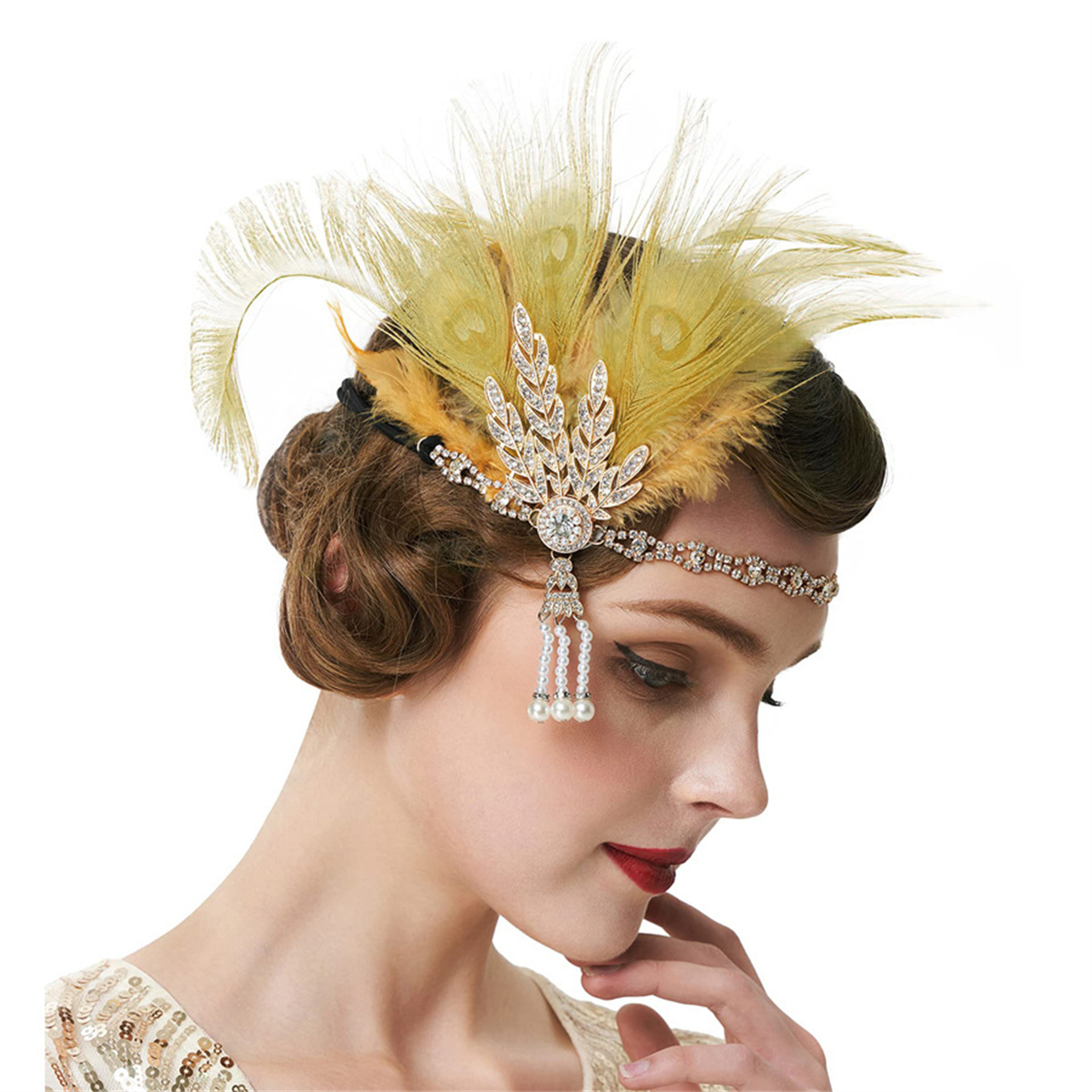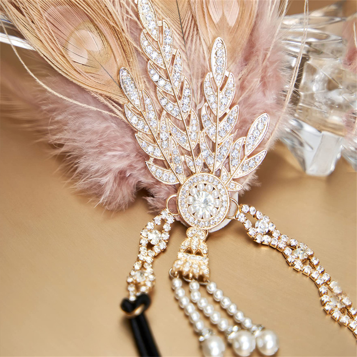 Women Flapper Headband Feather 1920s Costume Rhinestone Headpiece Headdress