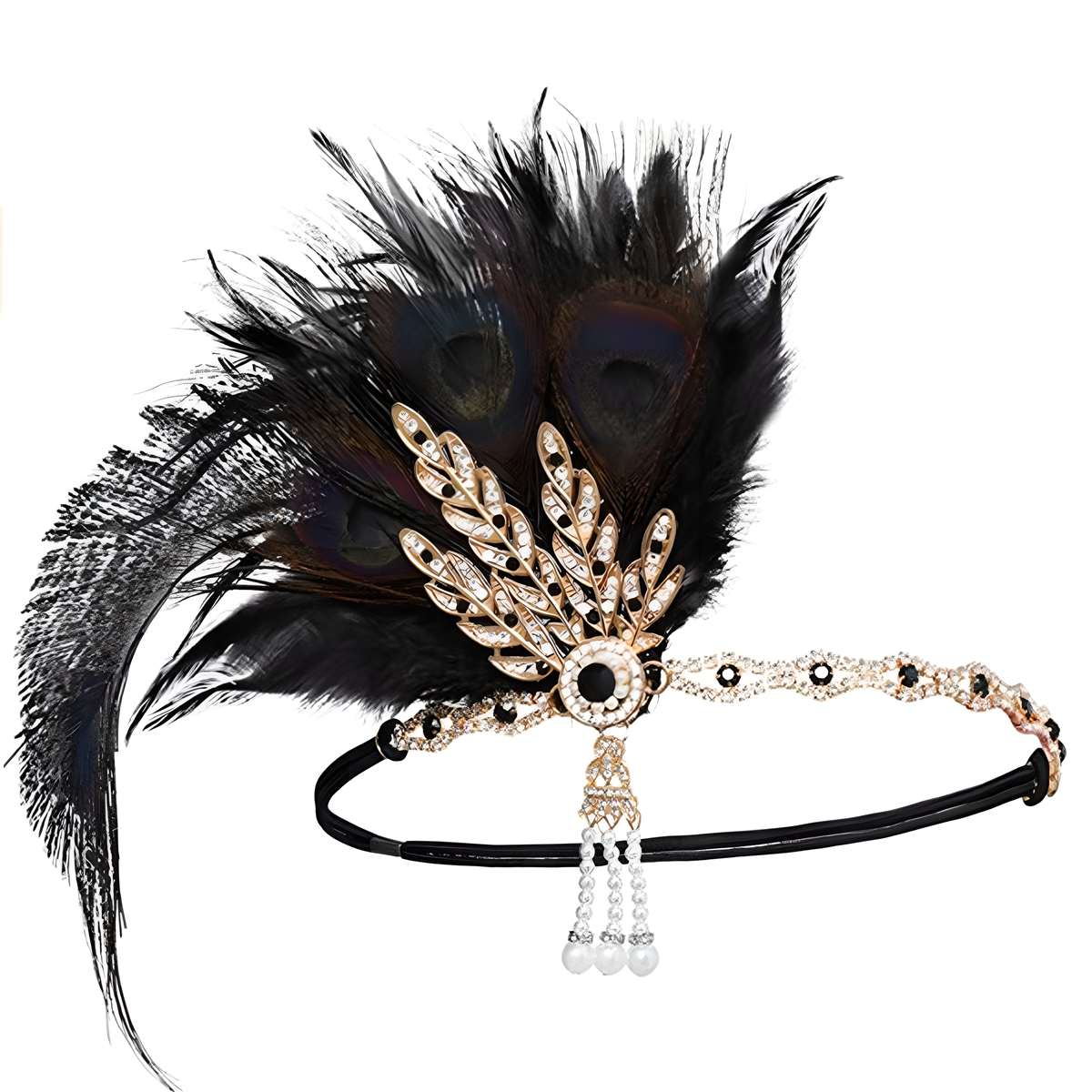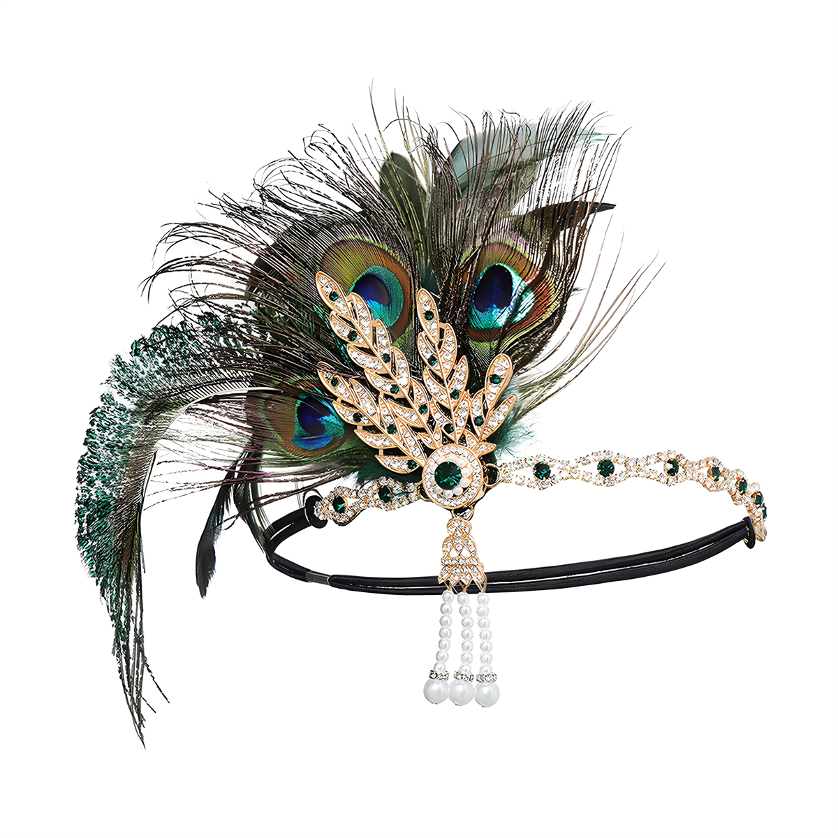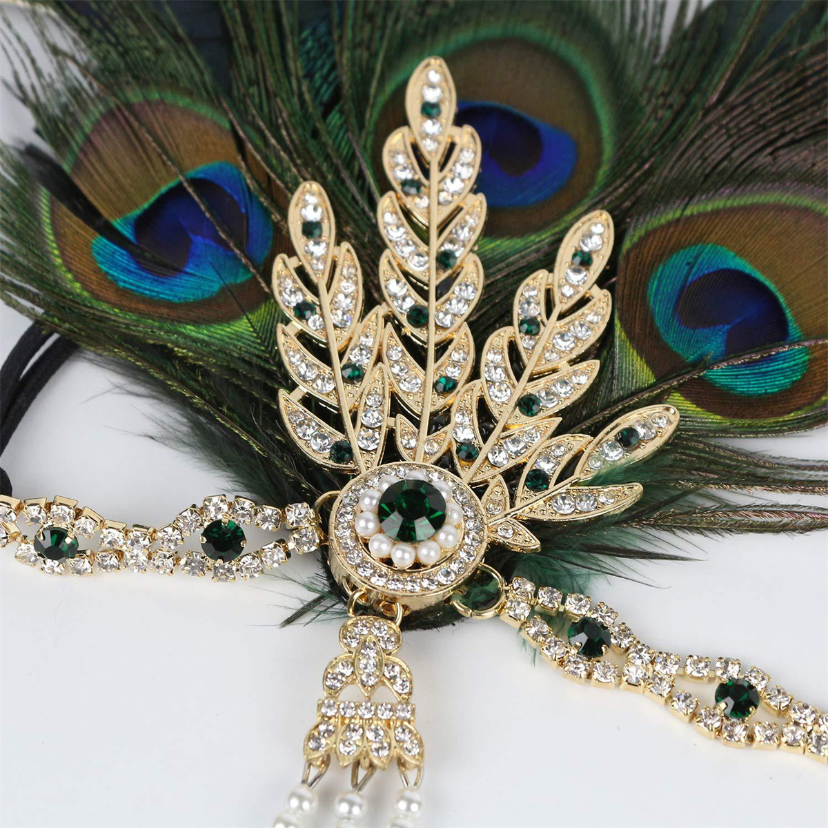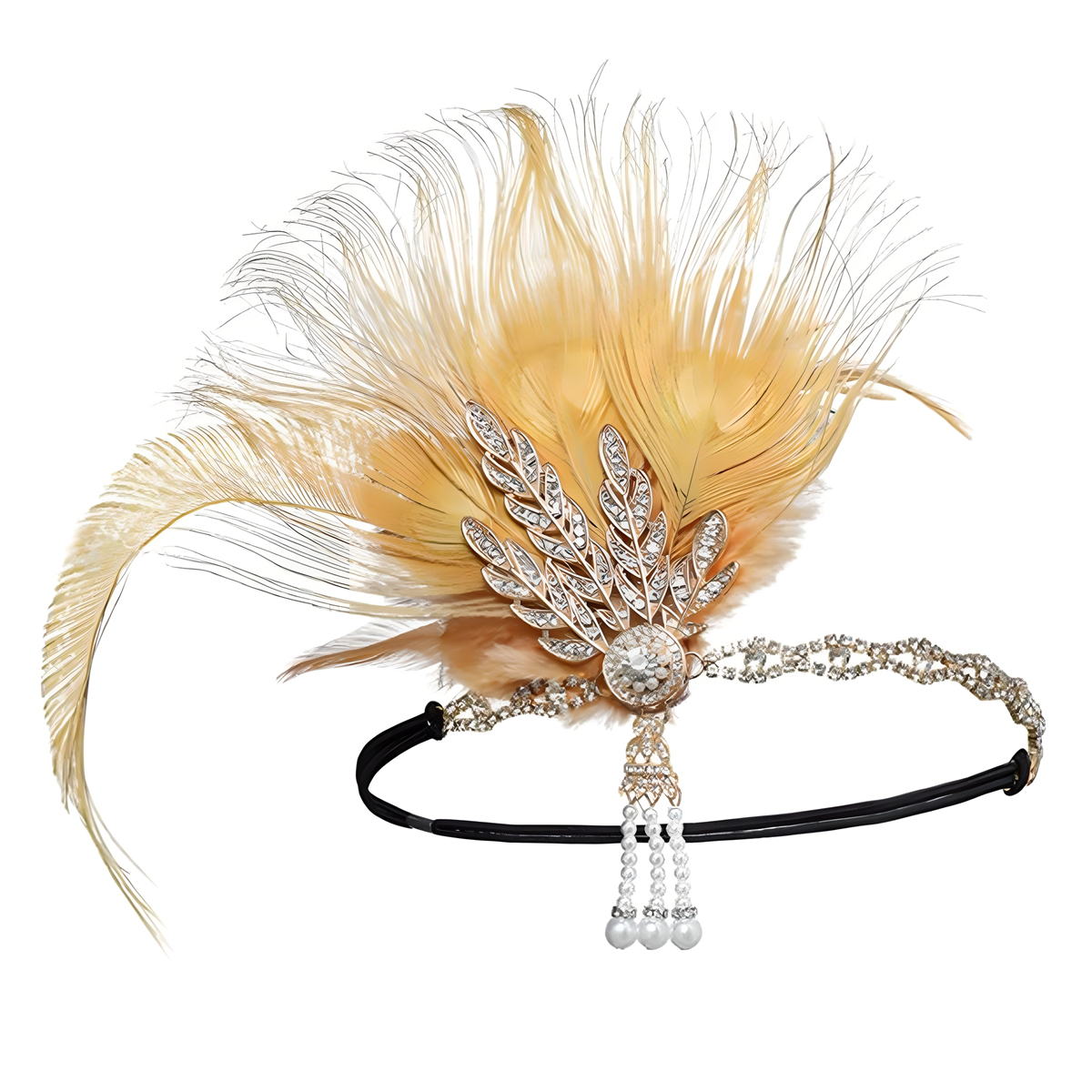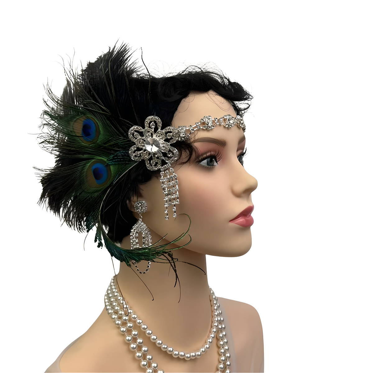 Women Flapper Headband Feather 1920s Costume Rhinestone Headpiece Headdress