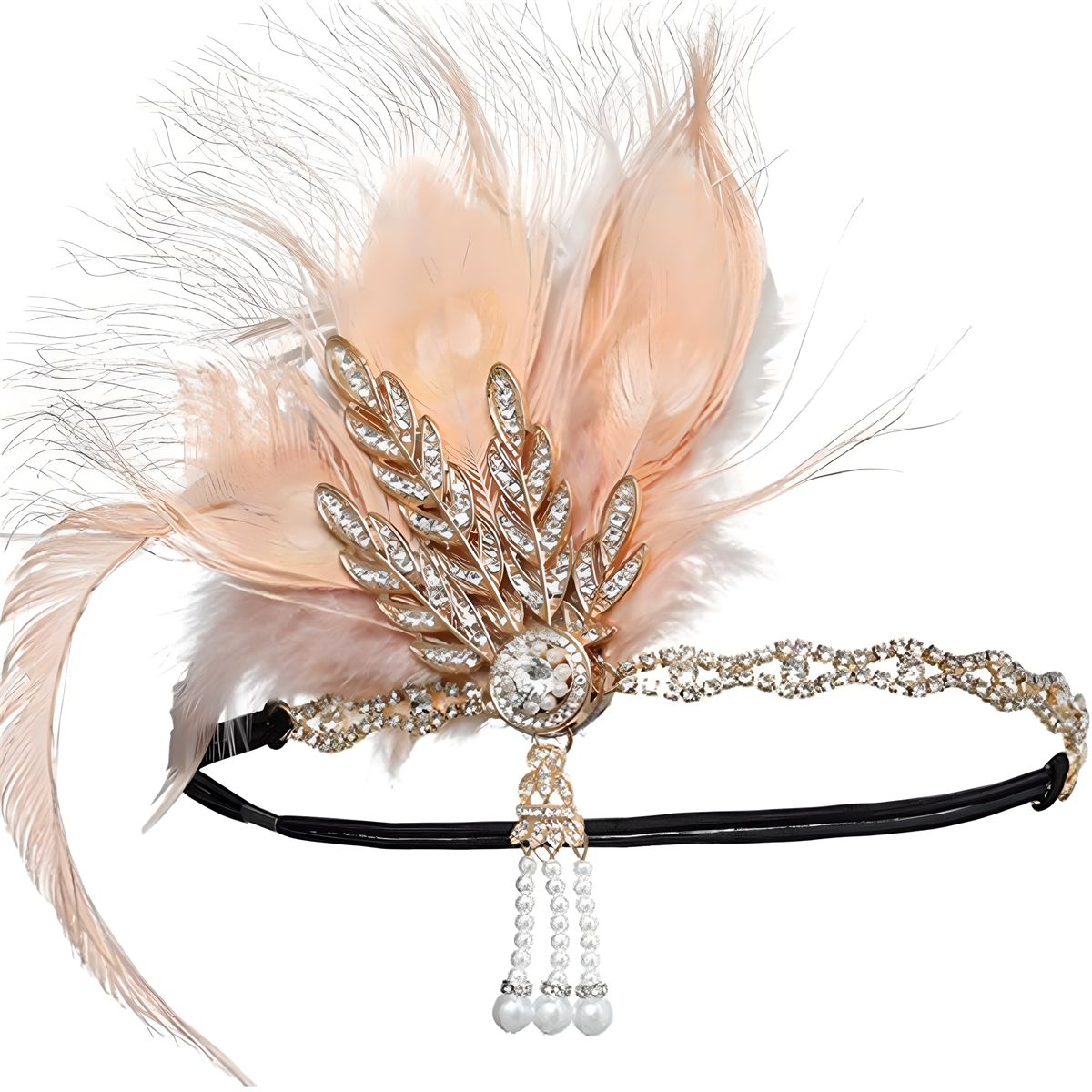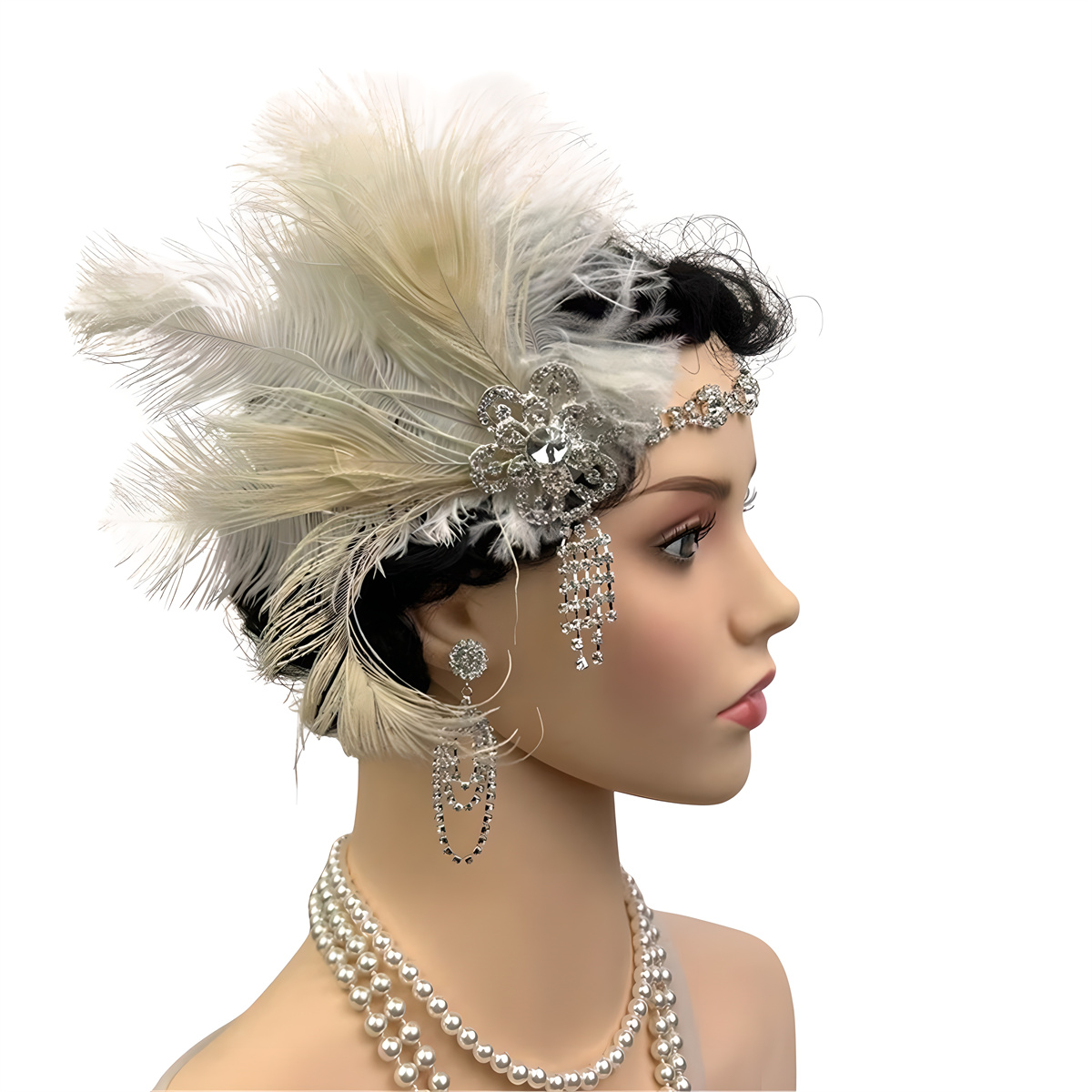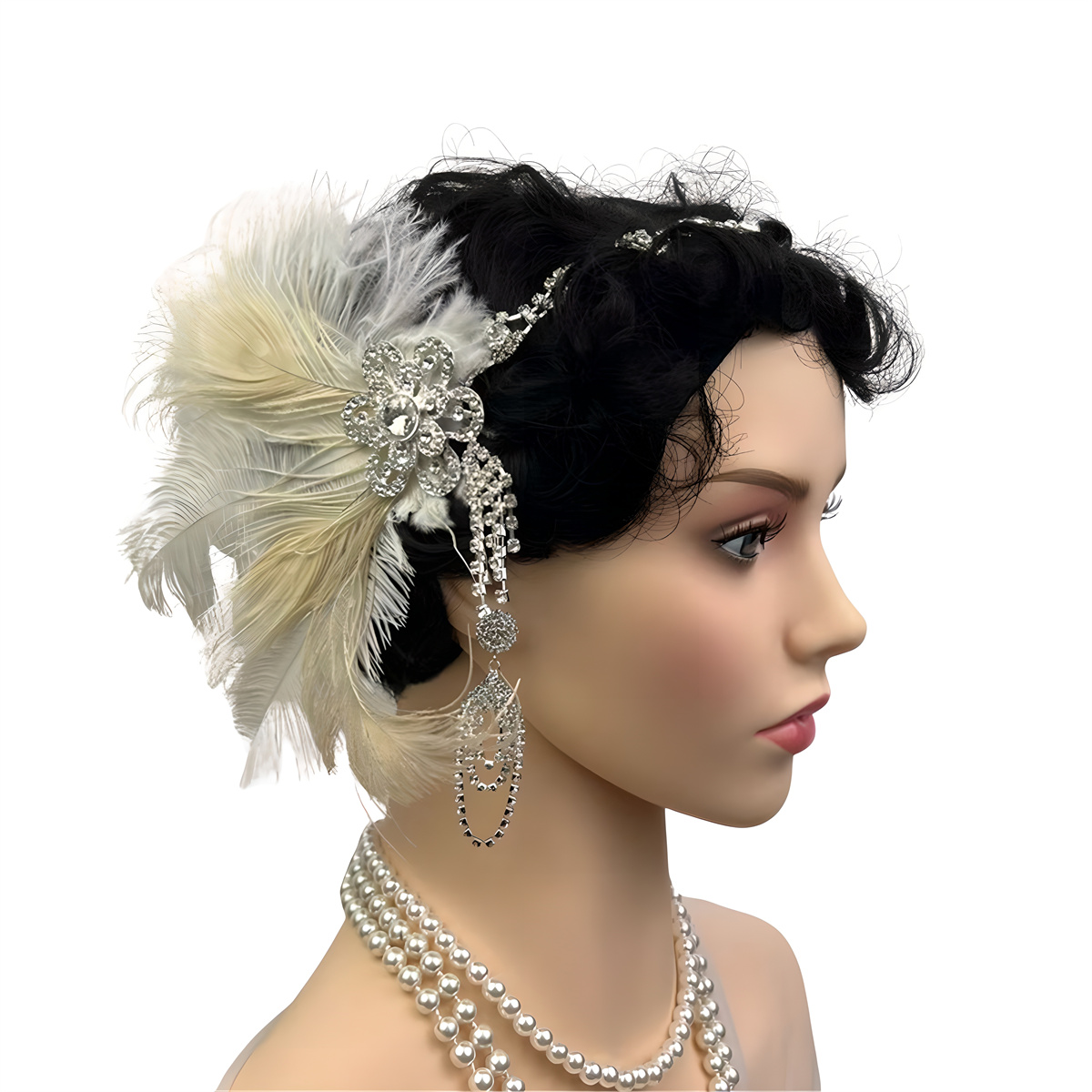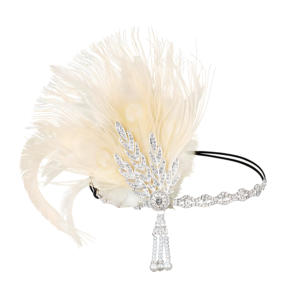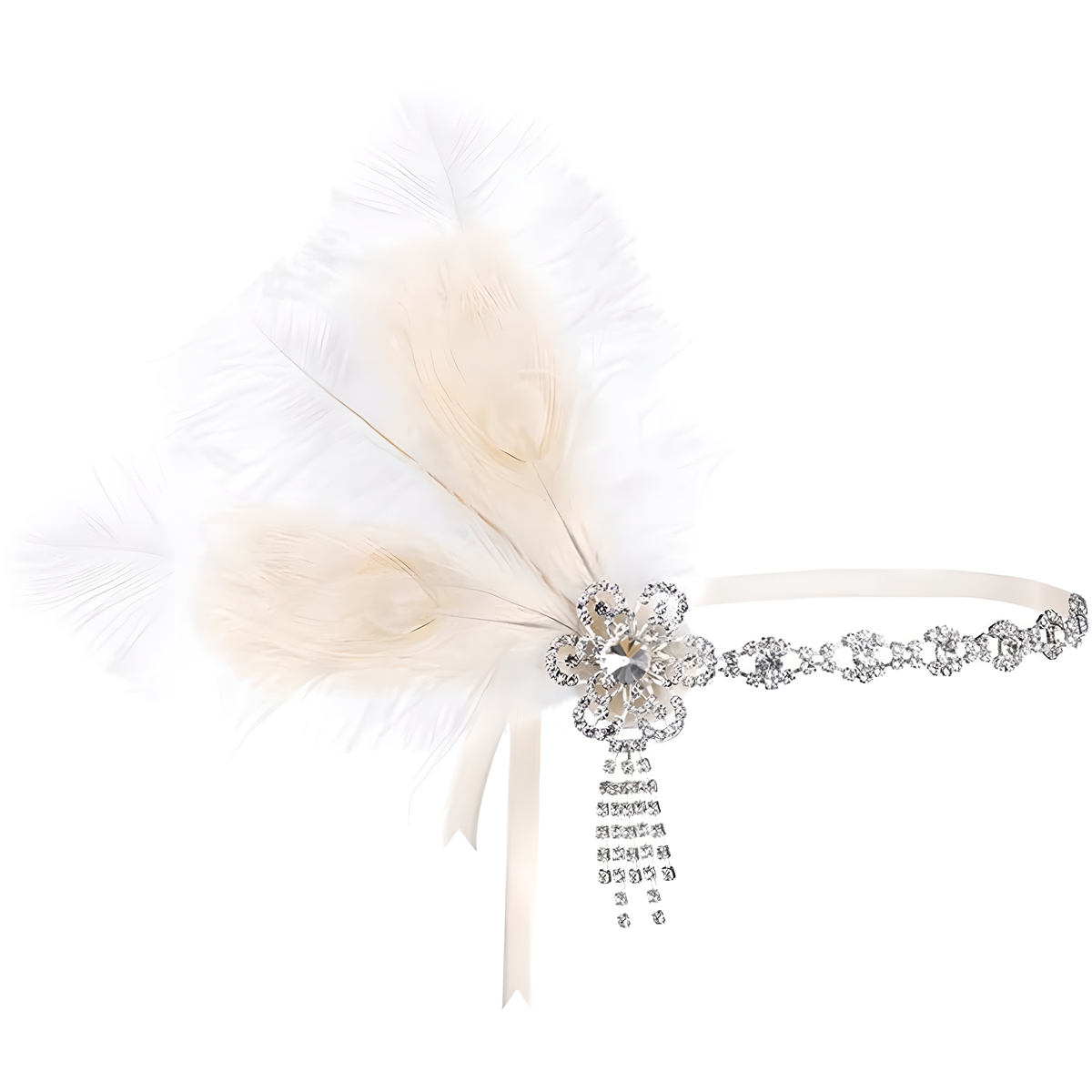 Highlight: An eye-catching accessory featuring a harmonious blend of crystal rhinestones and feathers, ideal for complementing your