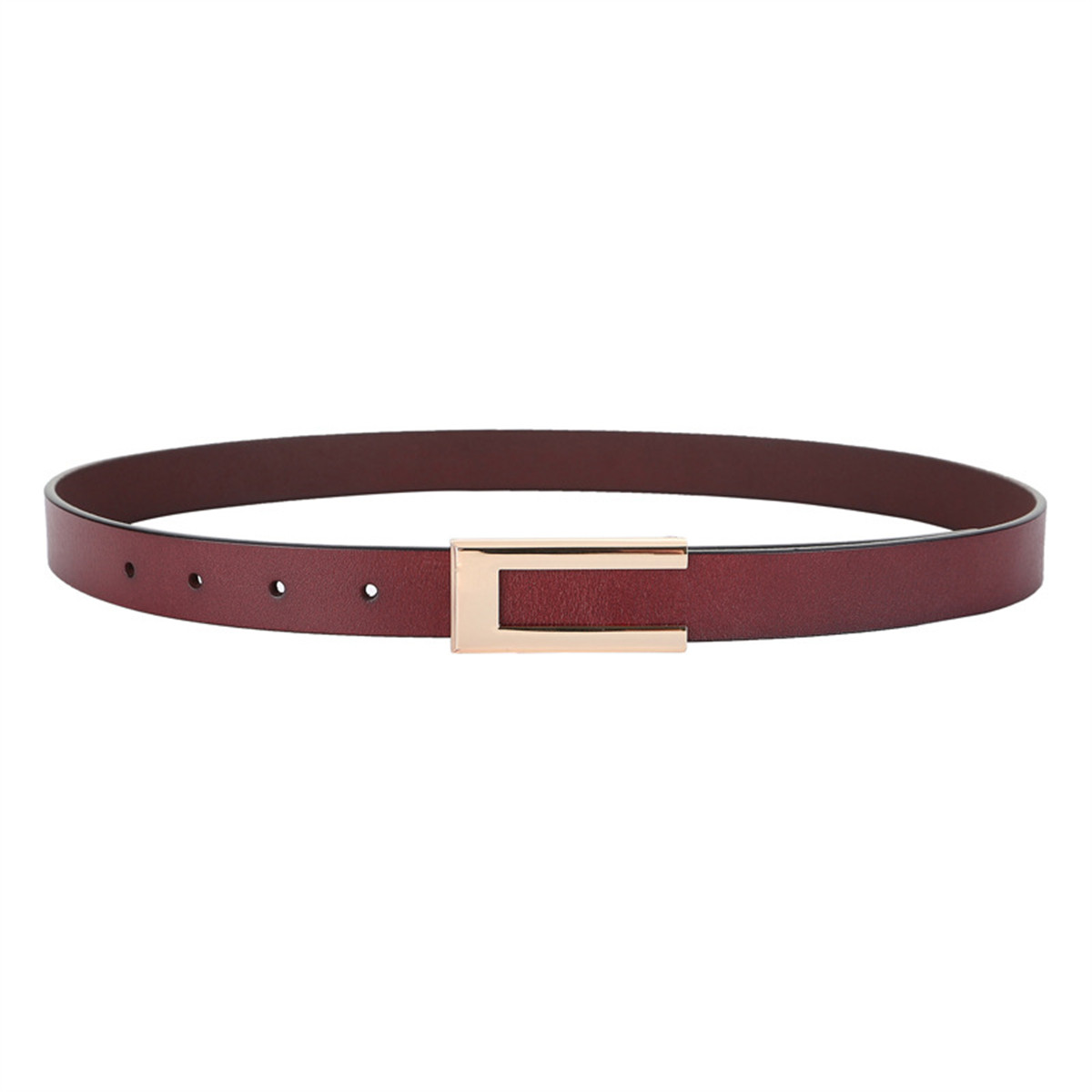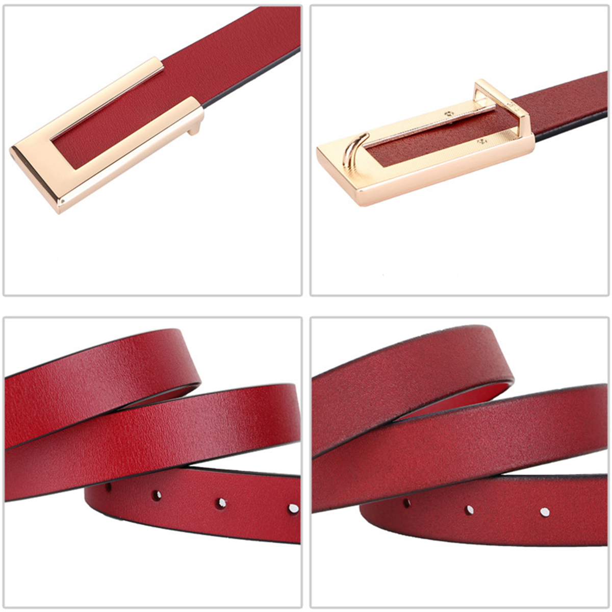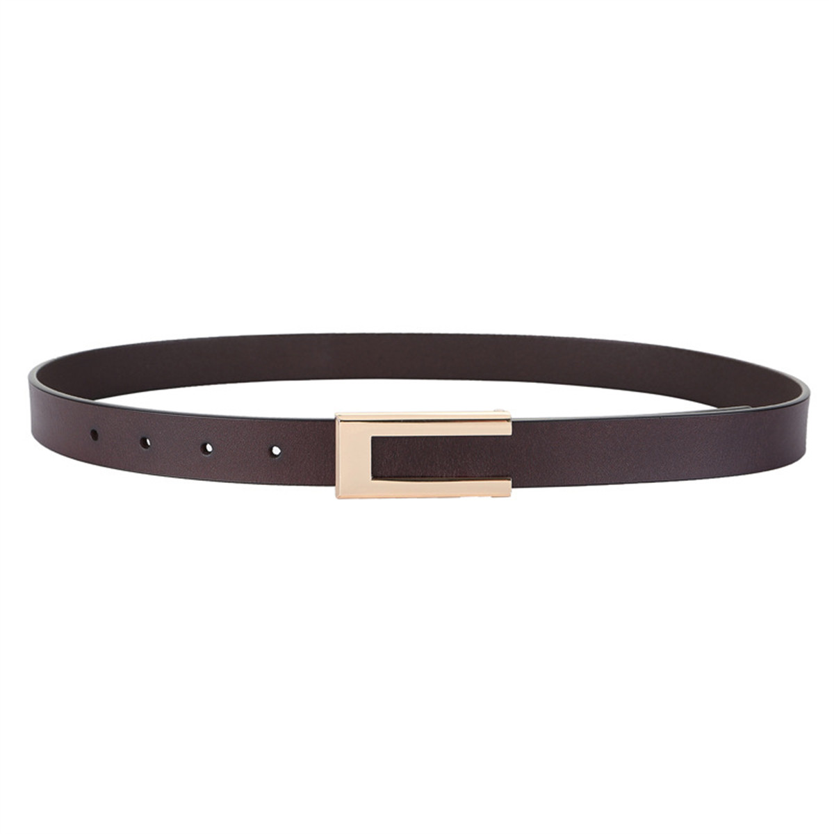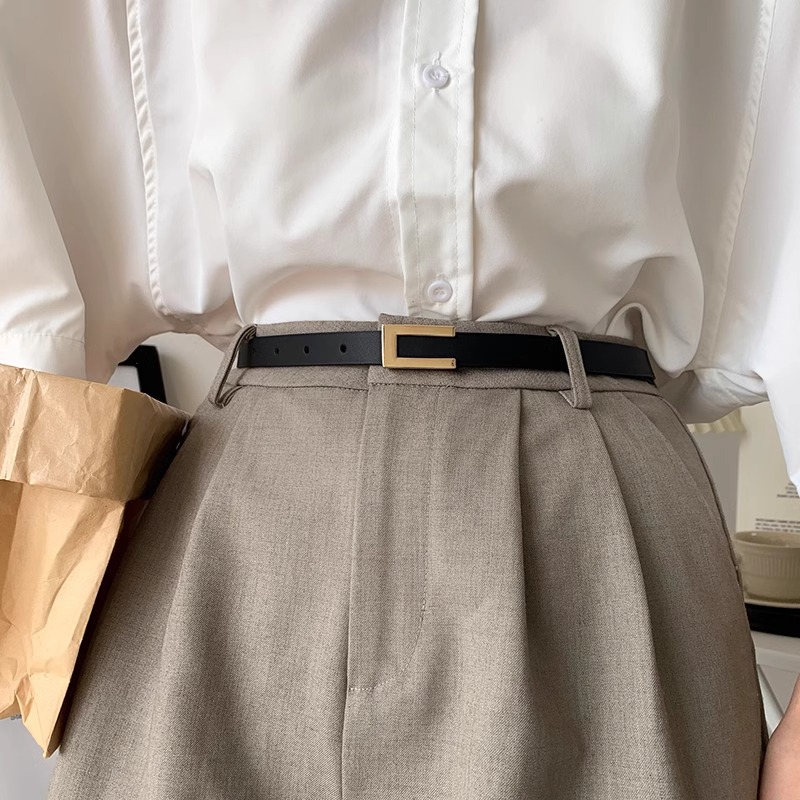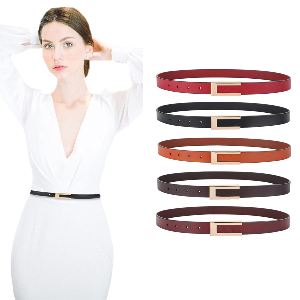 Womens Leather Belt Skinny Waist Belt for Dresses Jeans Pants with Gold Buckle