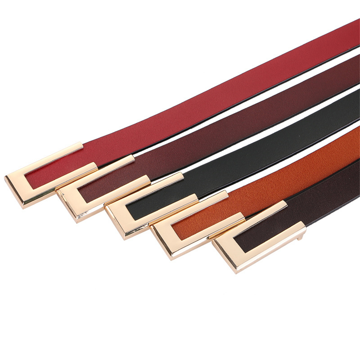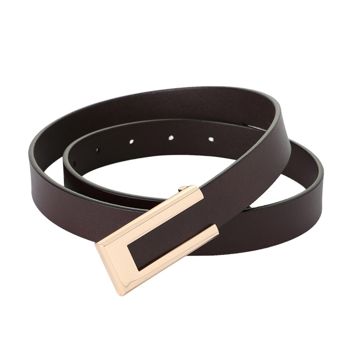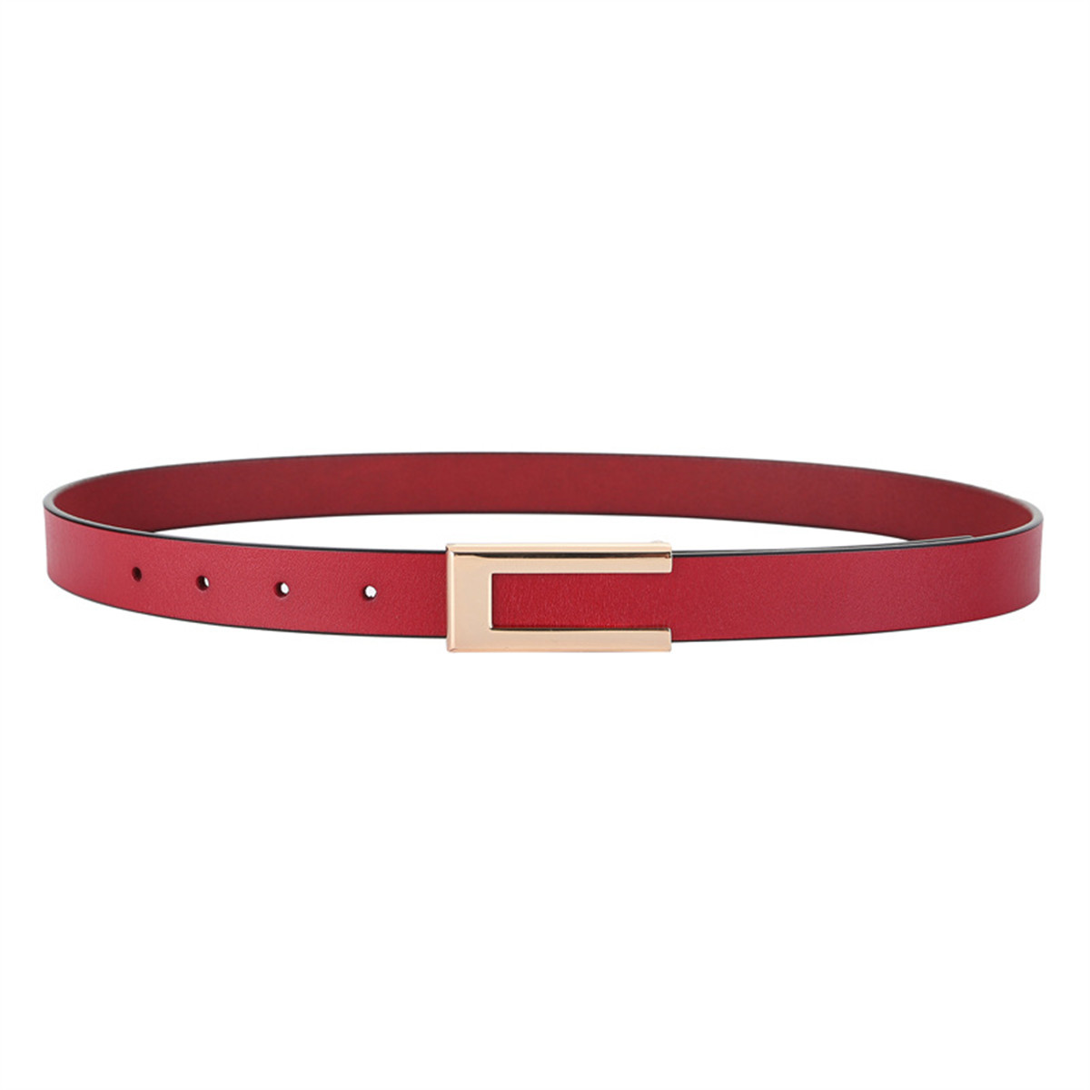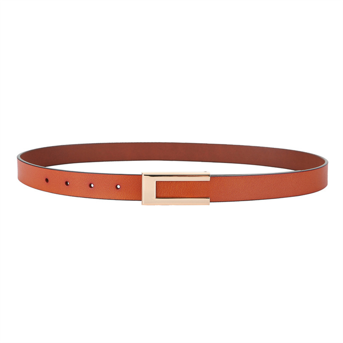 Womens Leather Belt Skinny Waist Belt for Dresses Jeans Pants with Gold Buckle