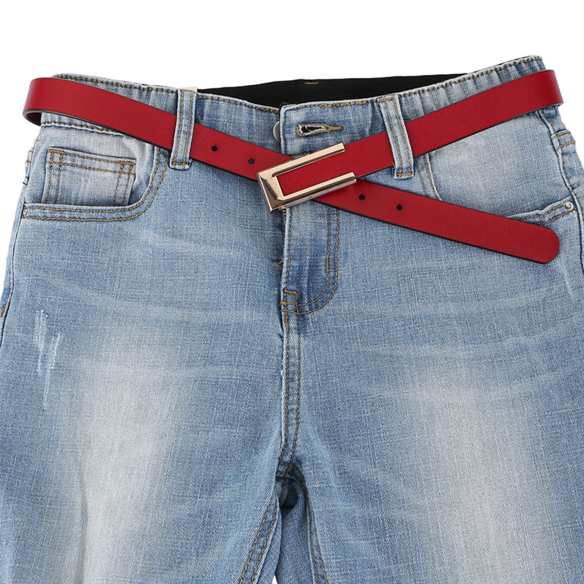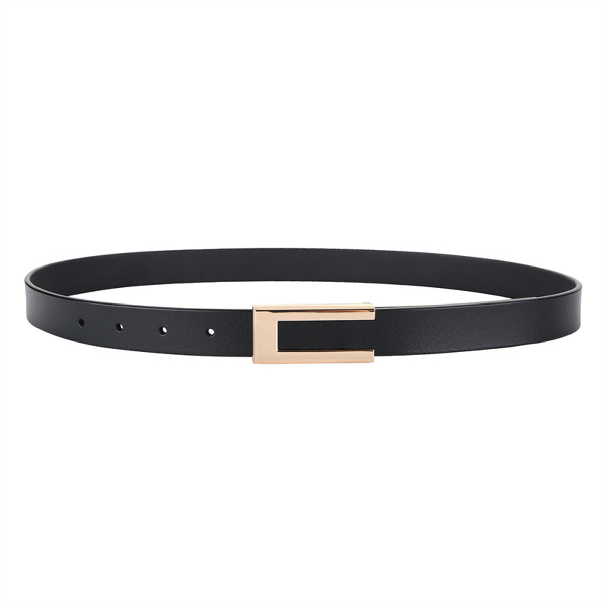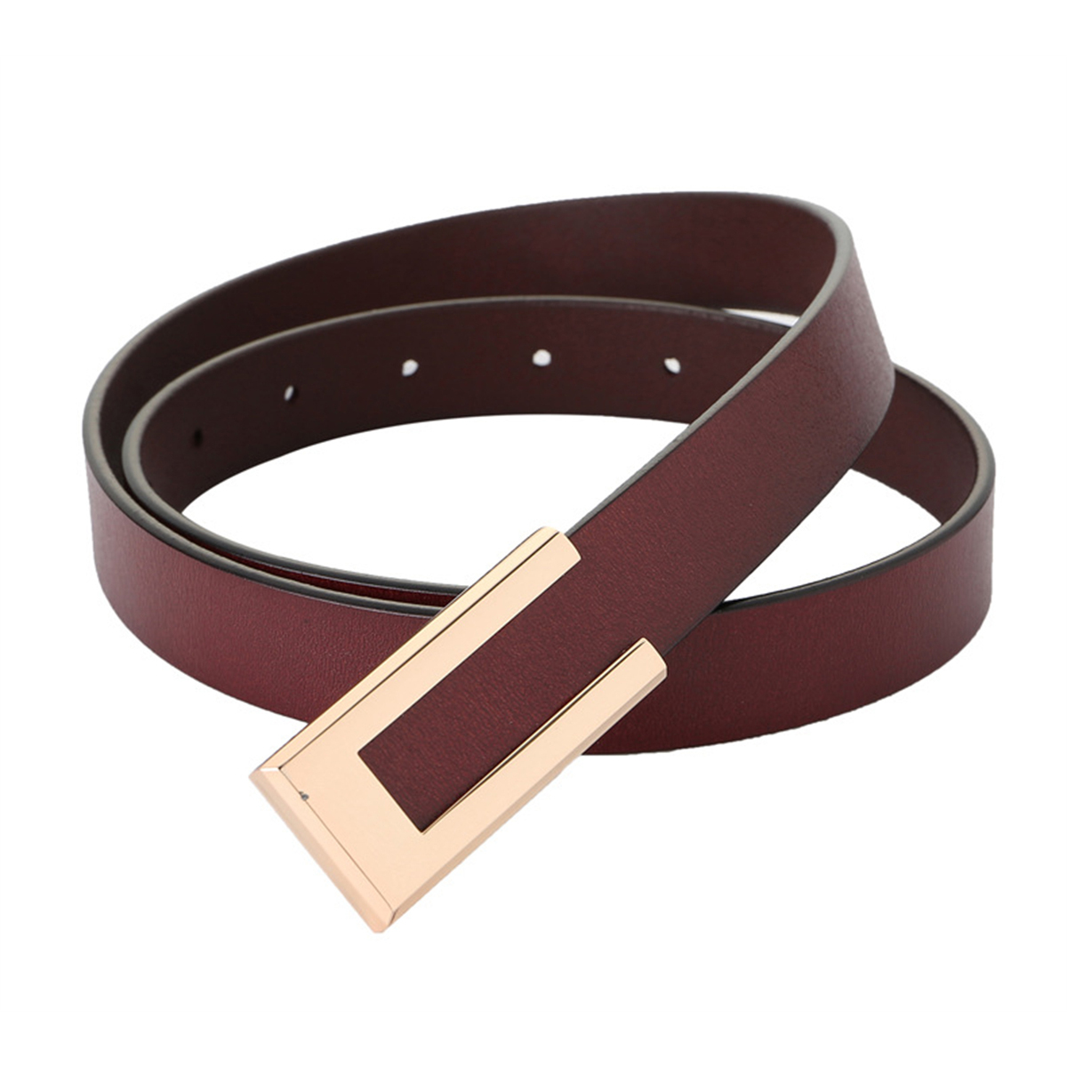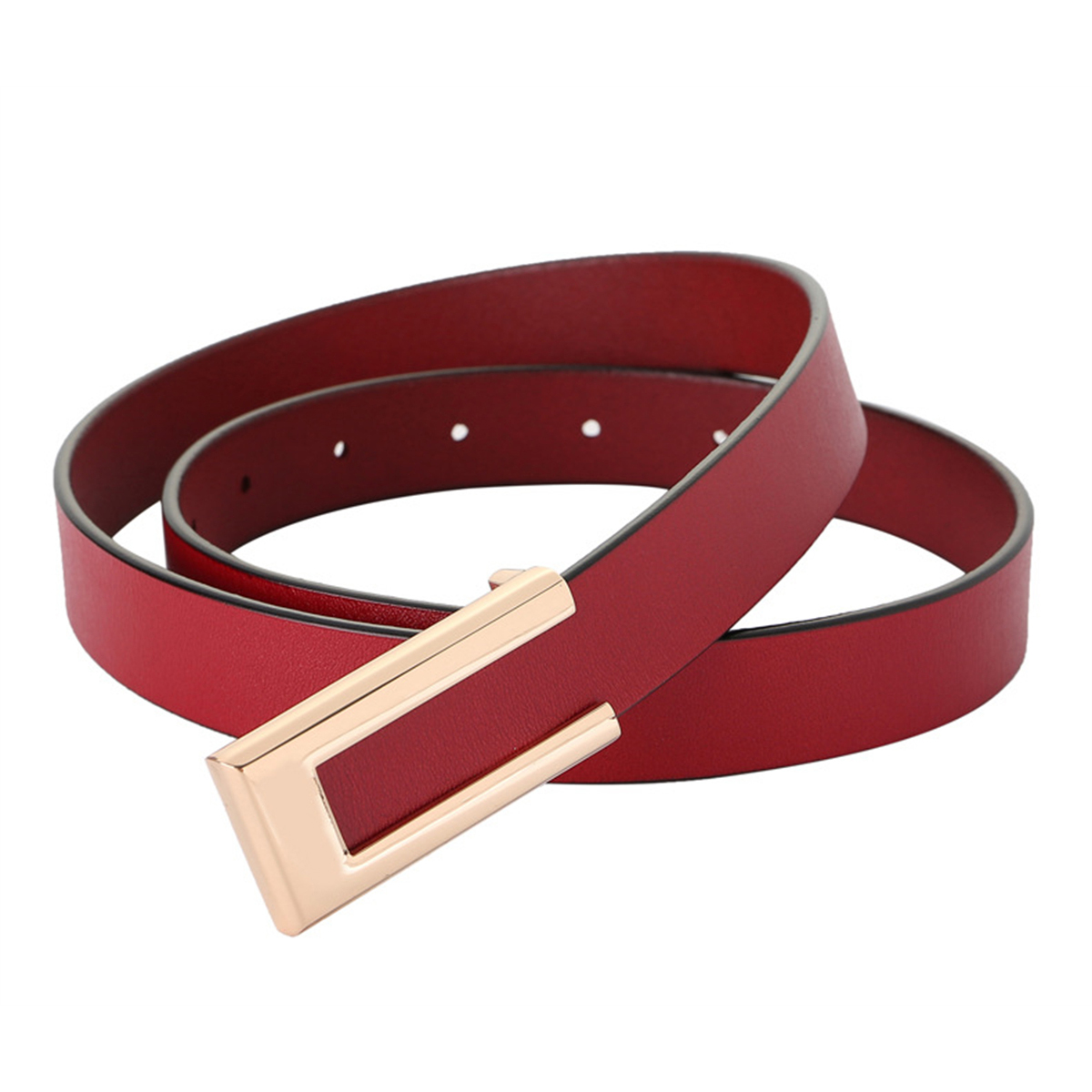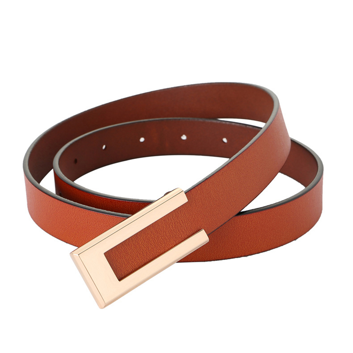 Womens Leather Belt Skinny Waist Belt for Dresses Jeans Pants with Gold Buckle
