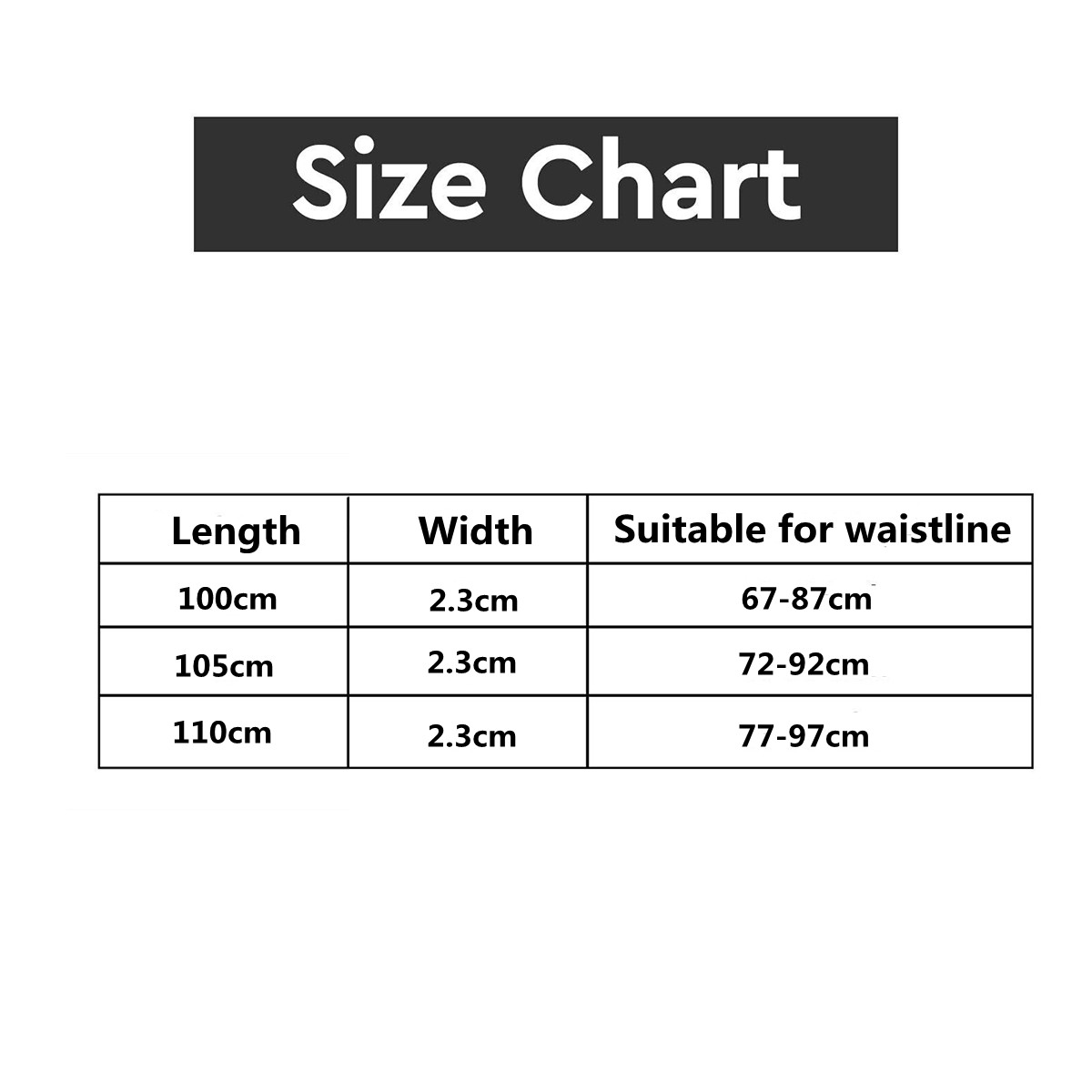 110cm (length from head to tail of leather buckle): suitable for waist circumference of 77-97cm.