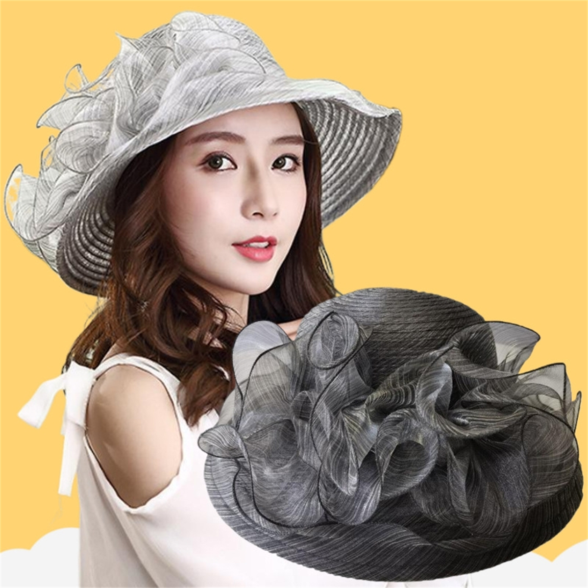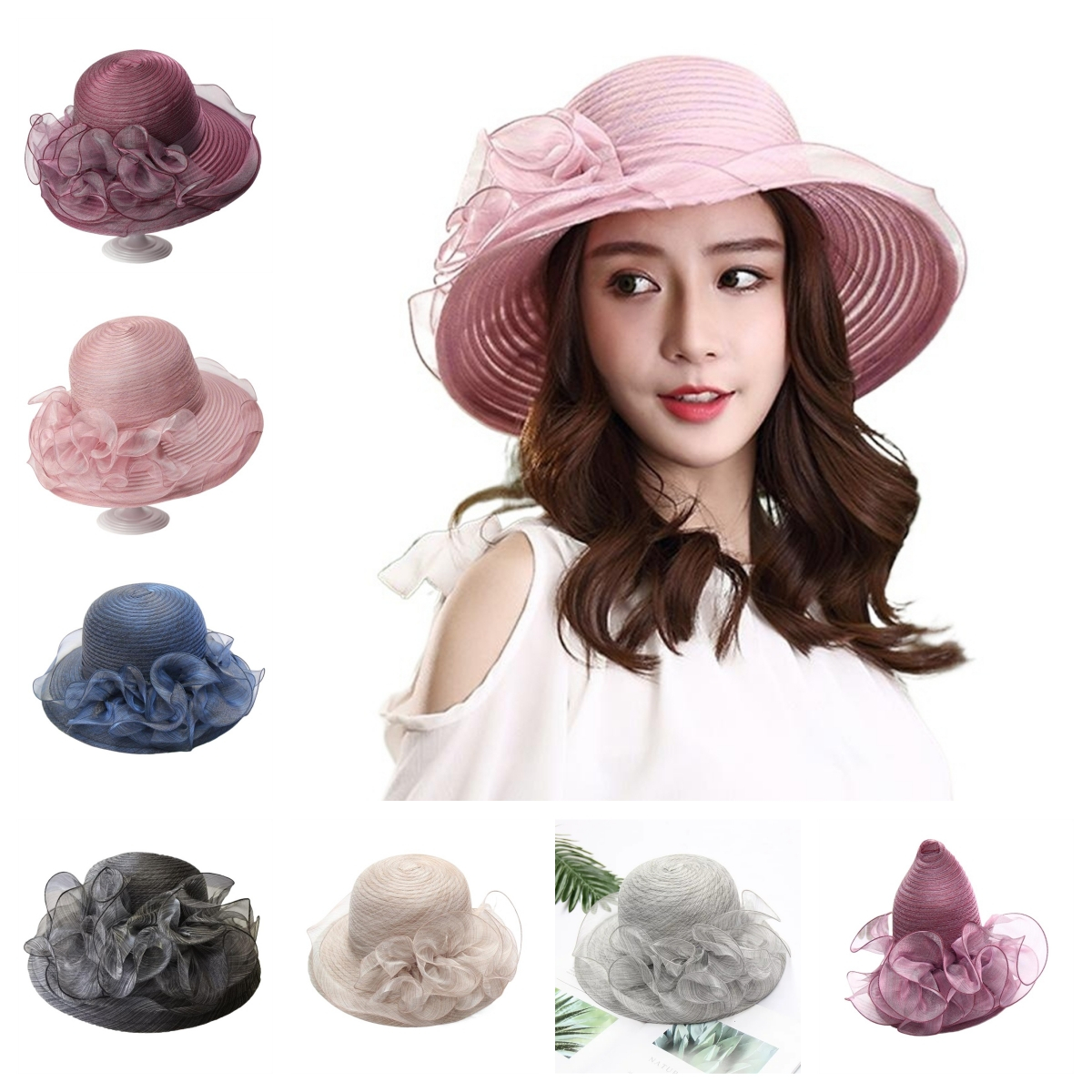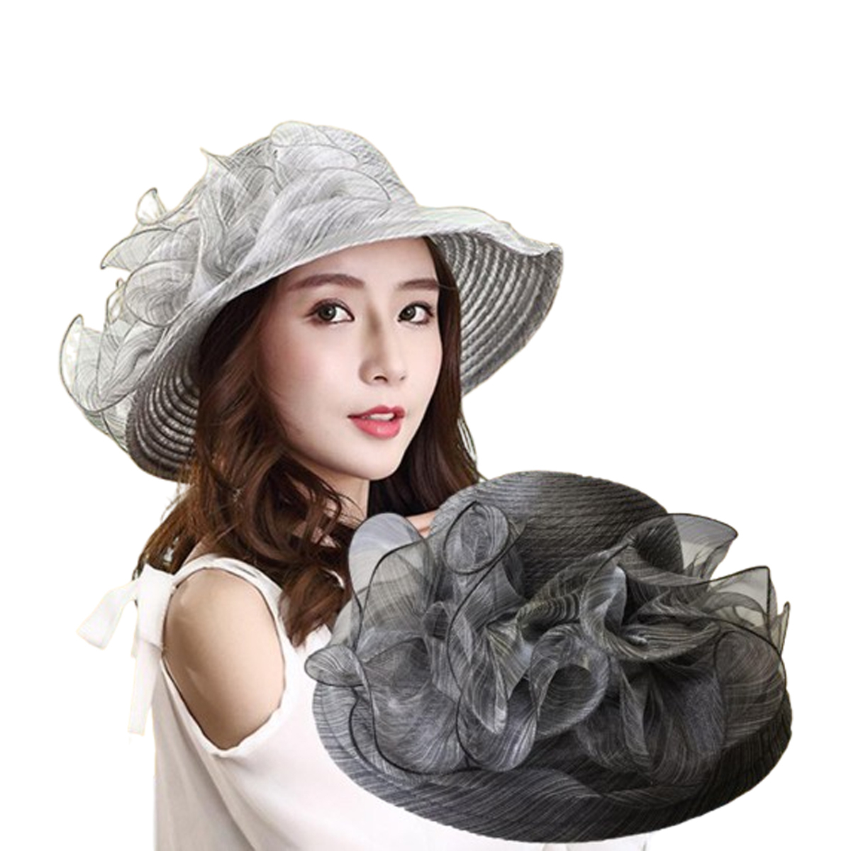 Women Kentucky Derby Church Derby Hat Fascinator Organza Tea Party Wide Brim Sun Hat