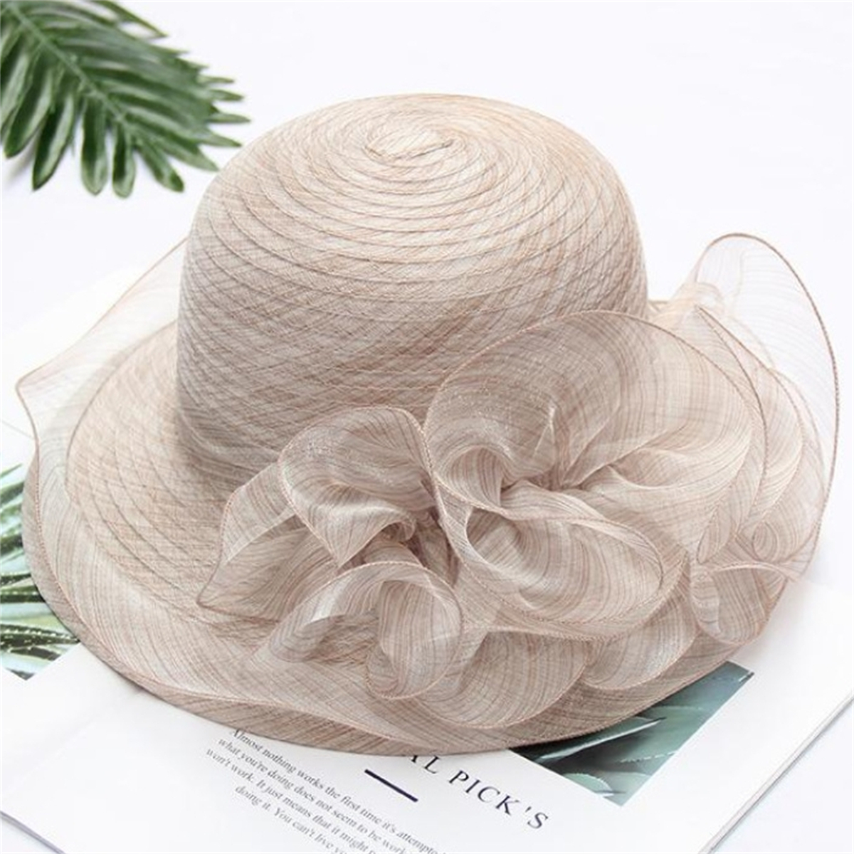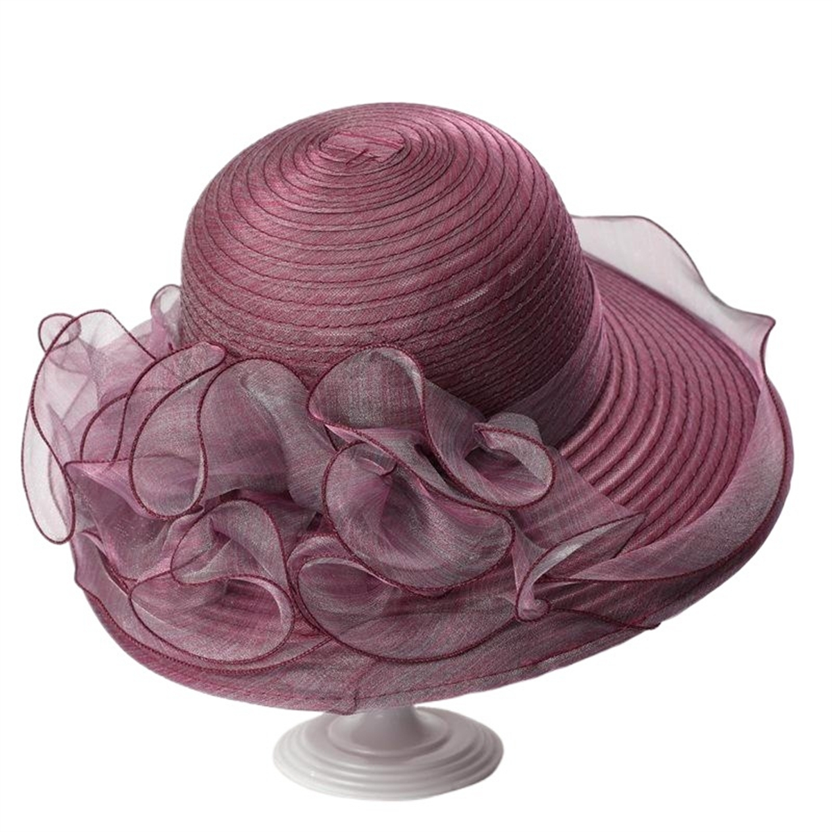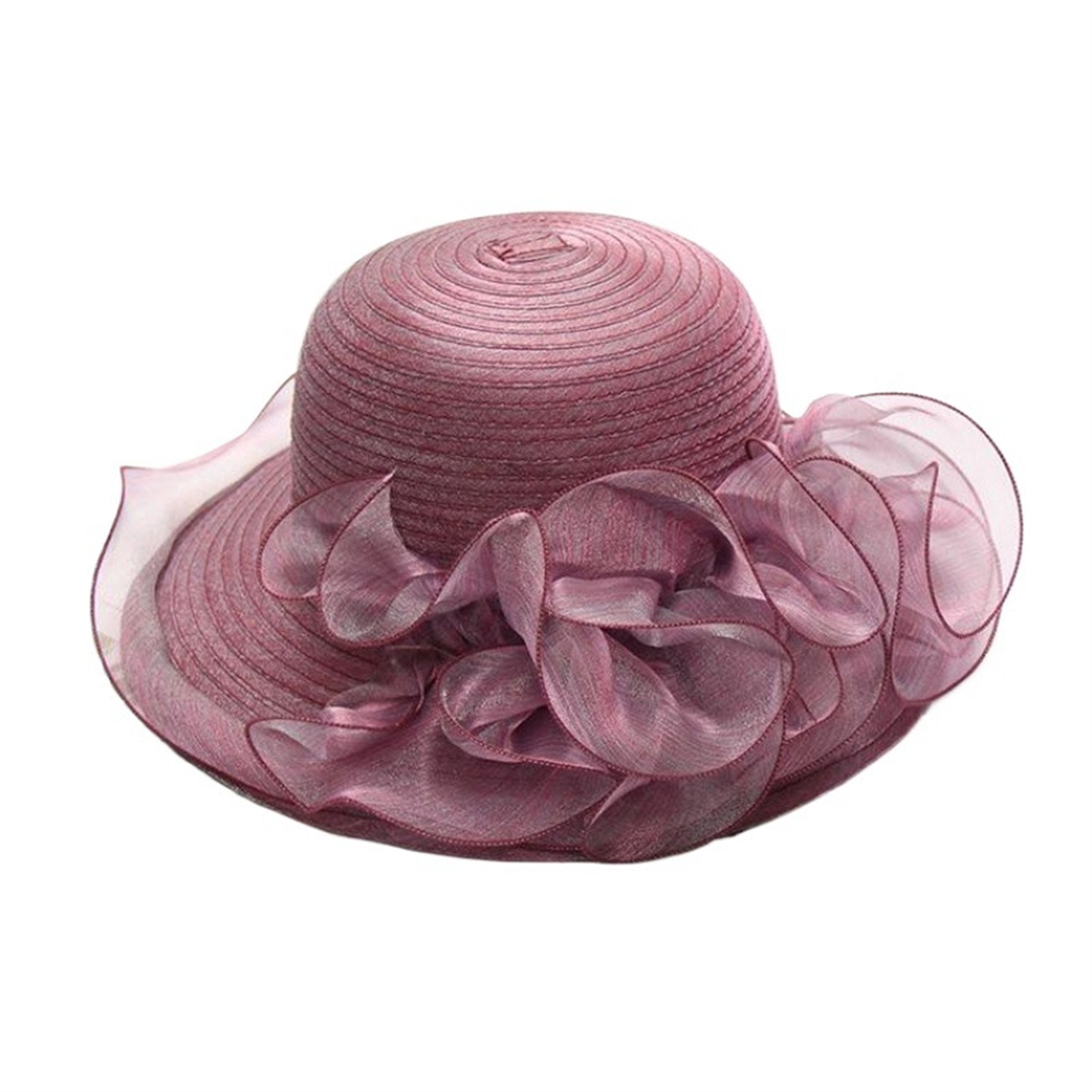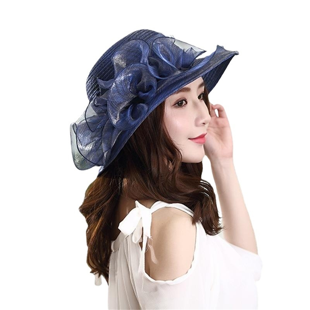 Women Kentucky Derby Church Derby Hat Fascinator Organza Tea Party Wide Brim Sun Hat