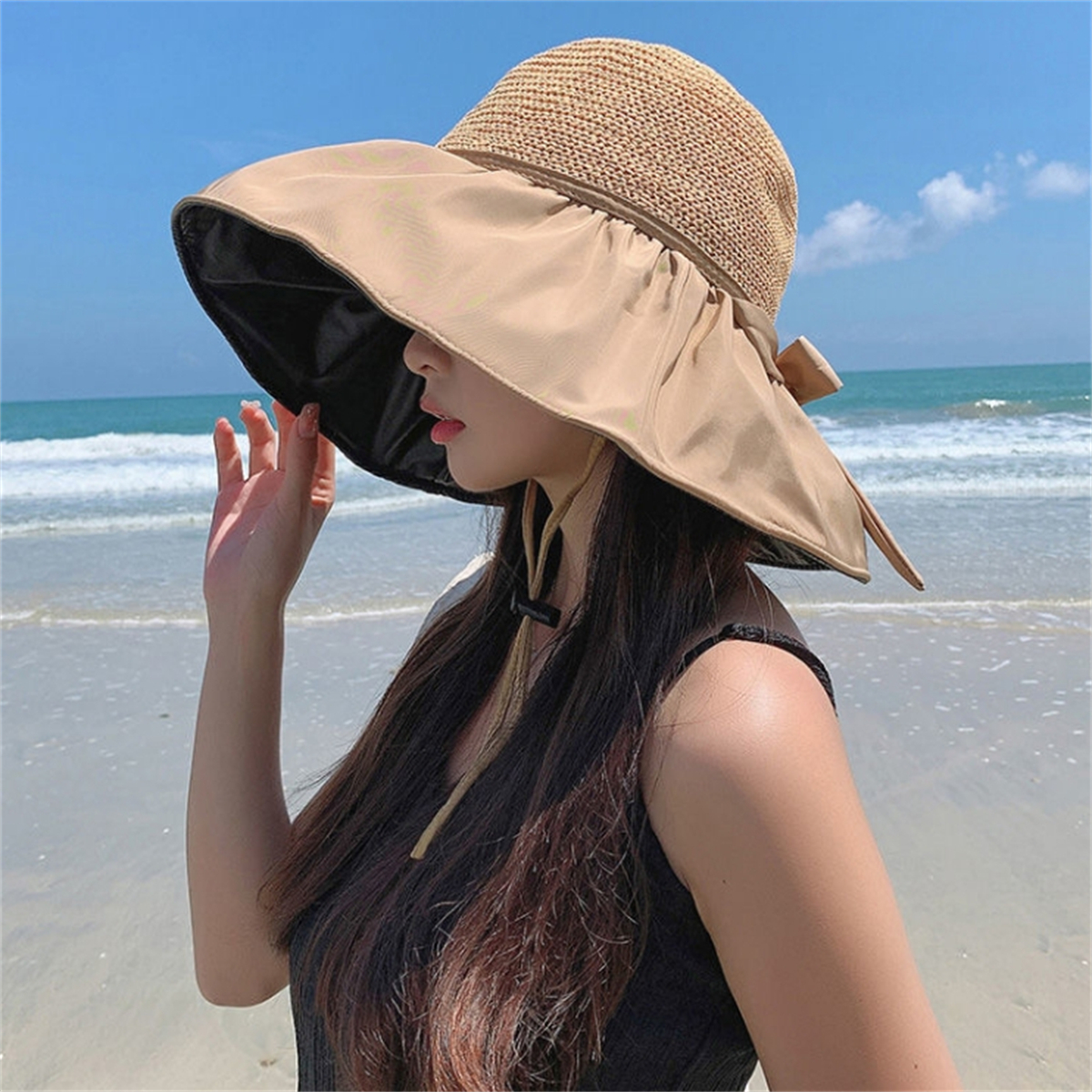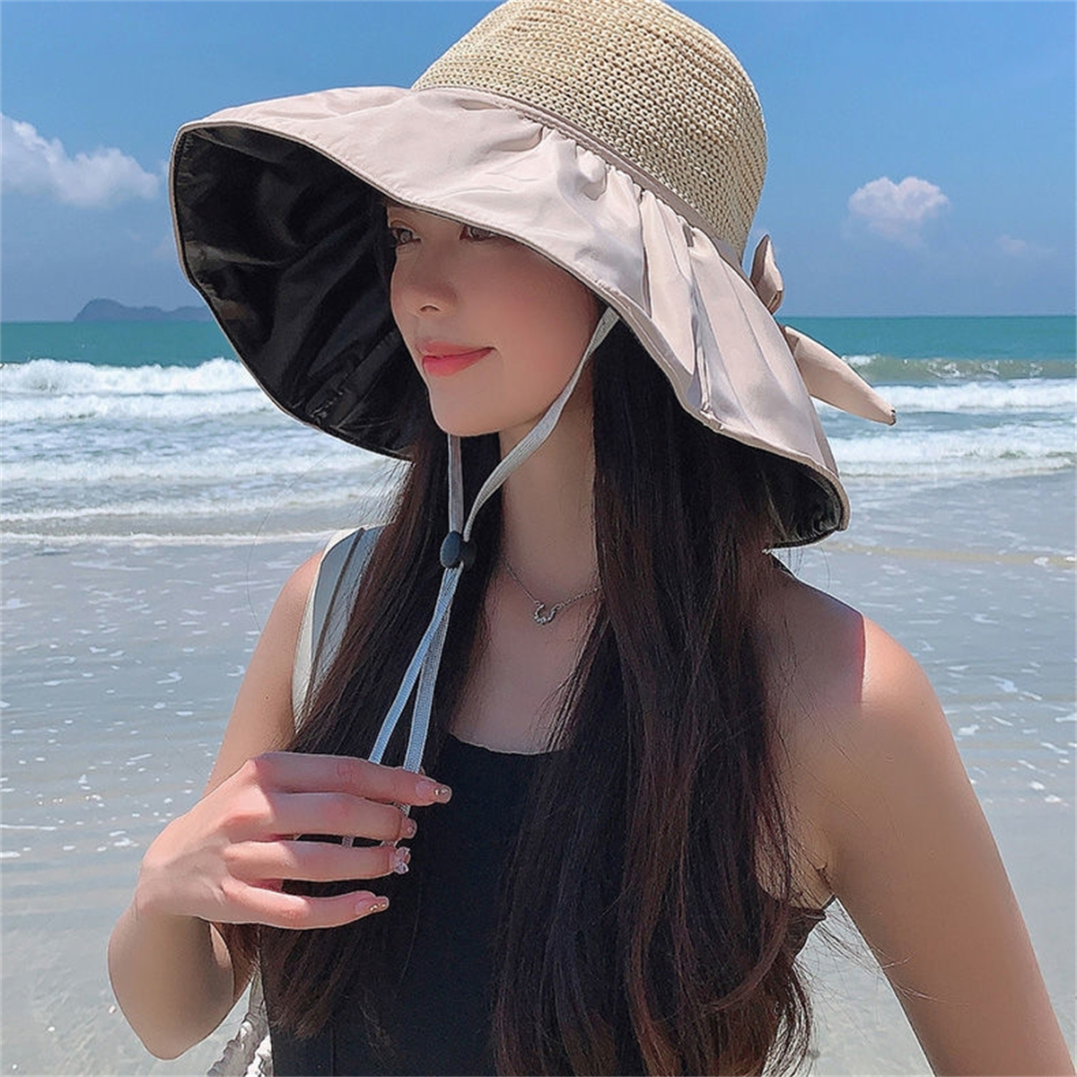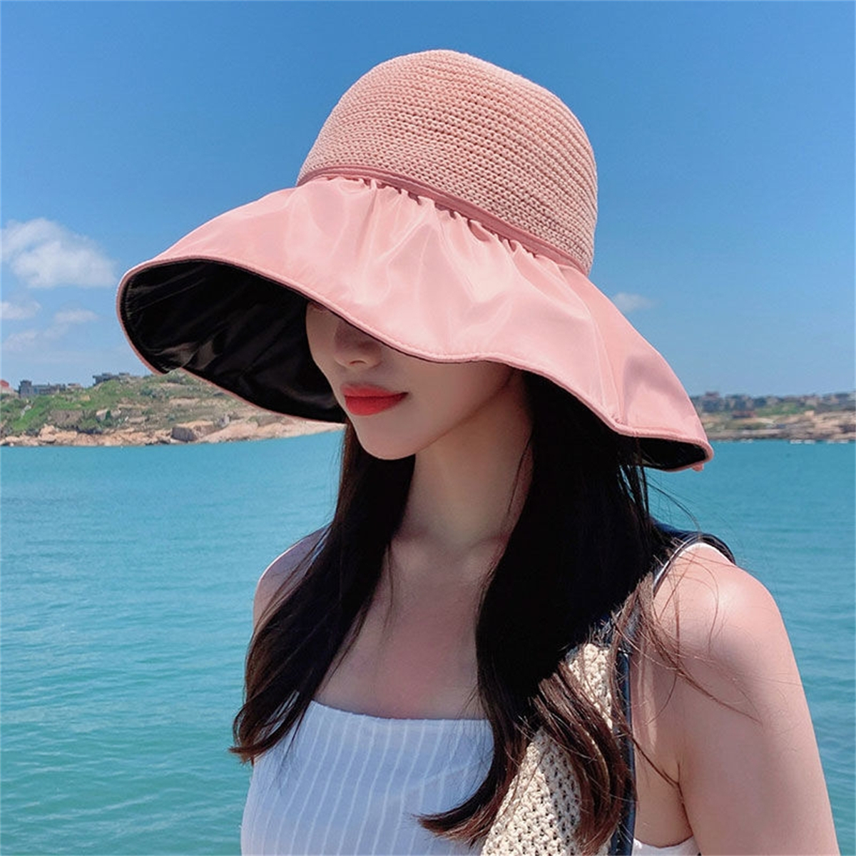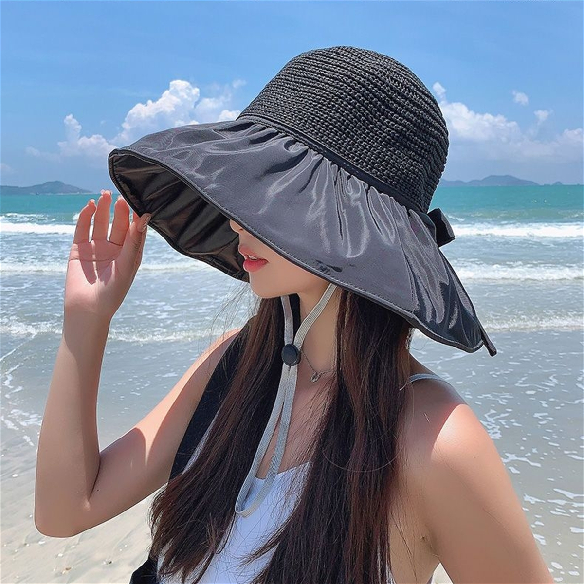 Women Bucket Hat Sunscreen Anti-UV Adjustable Fasten String Big Brim Beach Hat
