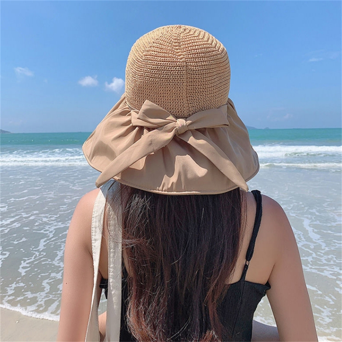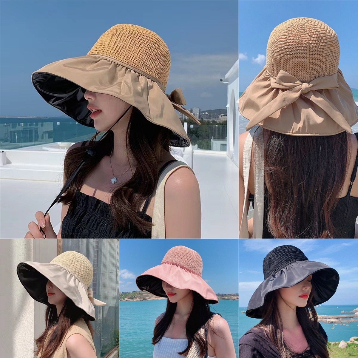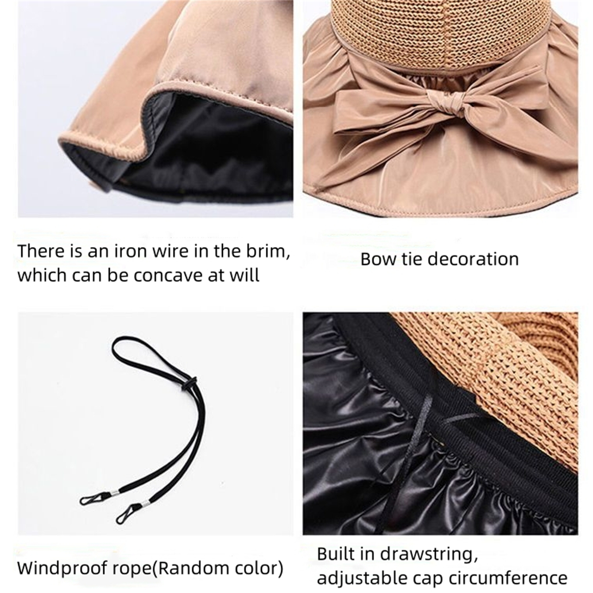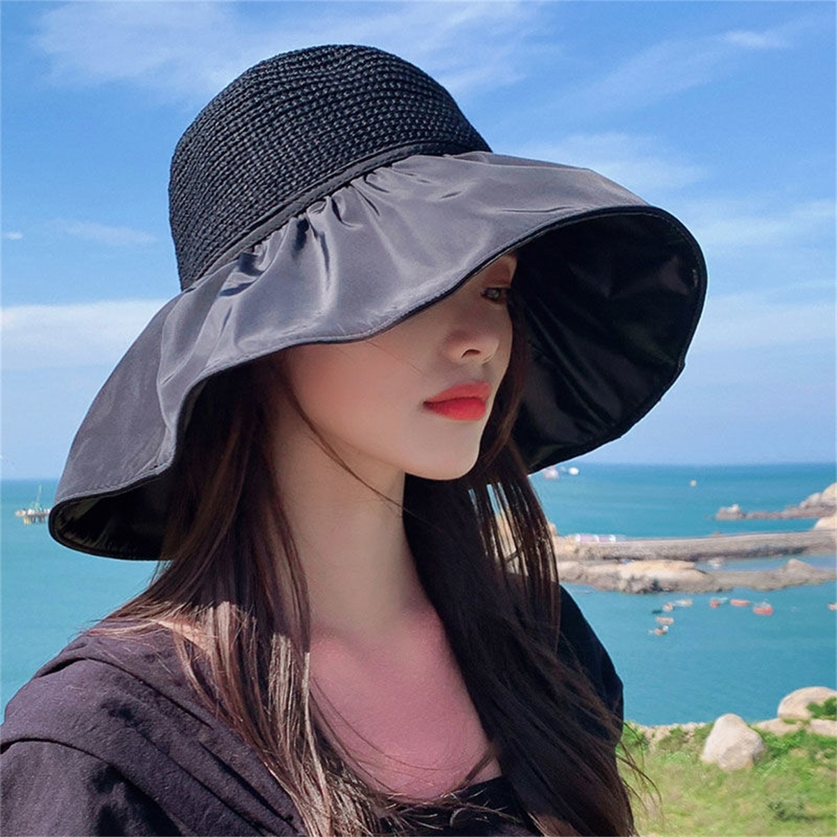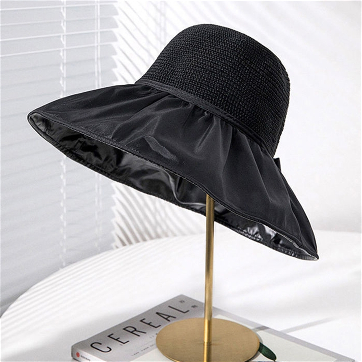 Women Bucket Hat Sunscreen Anti-UV Adjustable Fasten String Big Brim Beach Hat
