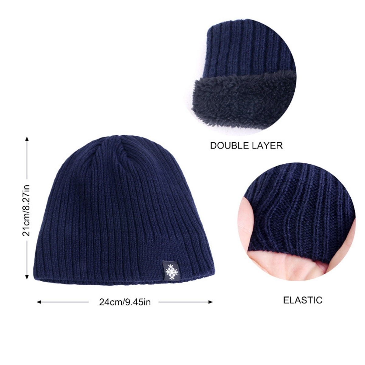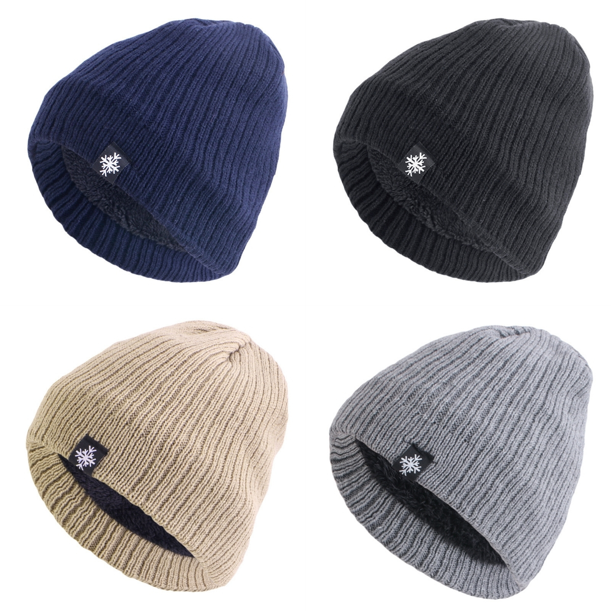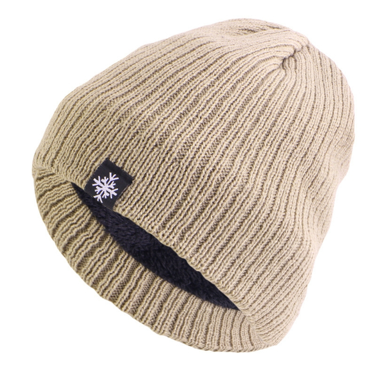 Men Knitted Hat Cap Plush Lined Warm Thick Outdoor Beanie Cap Bonnet Winter Warm