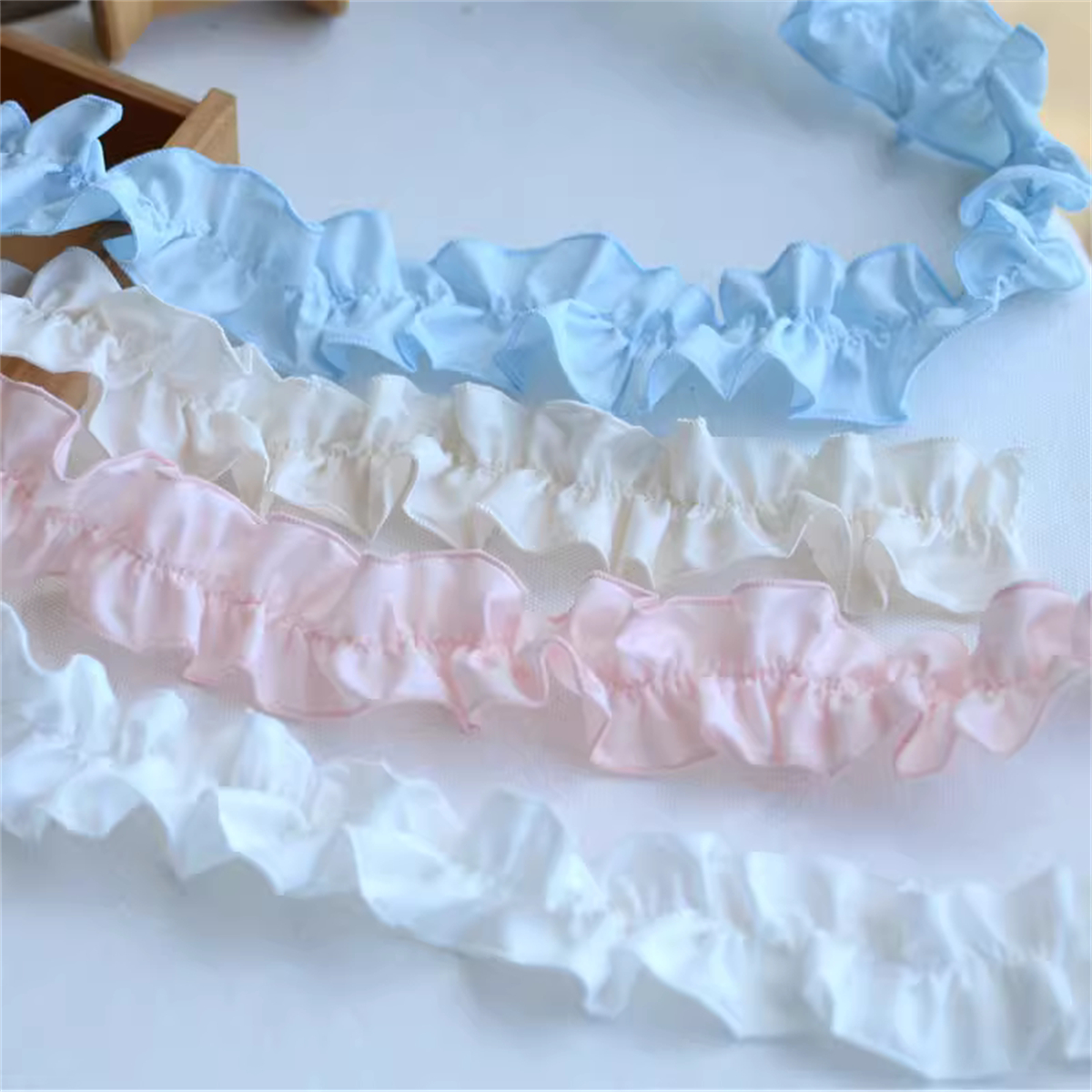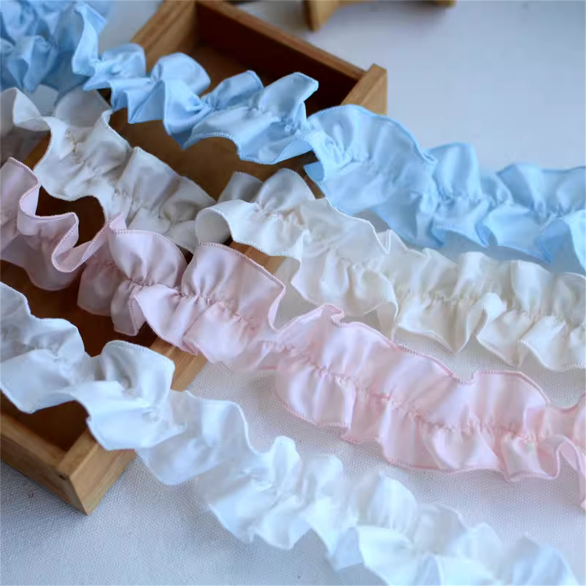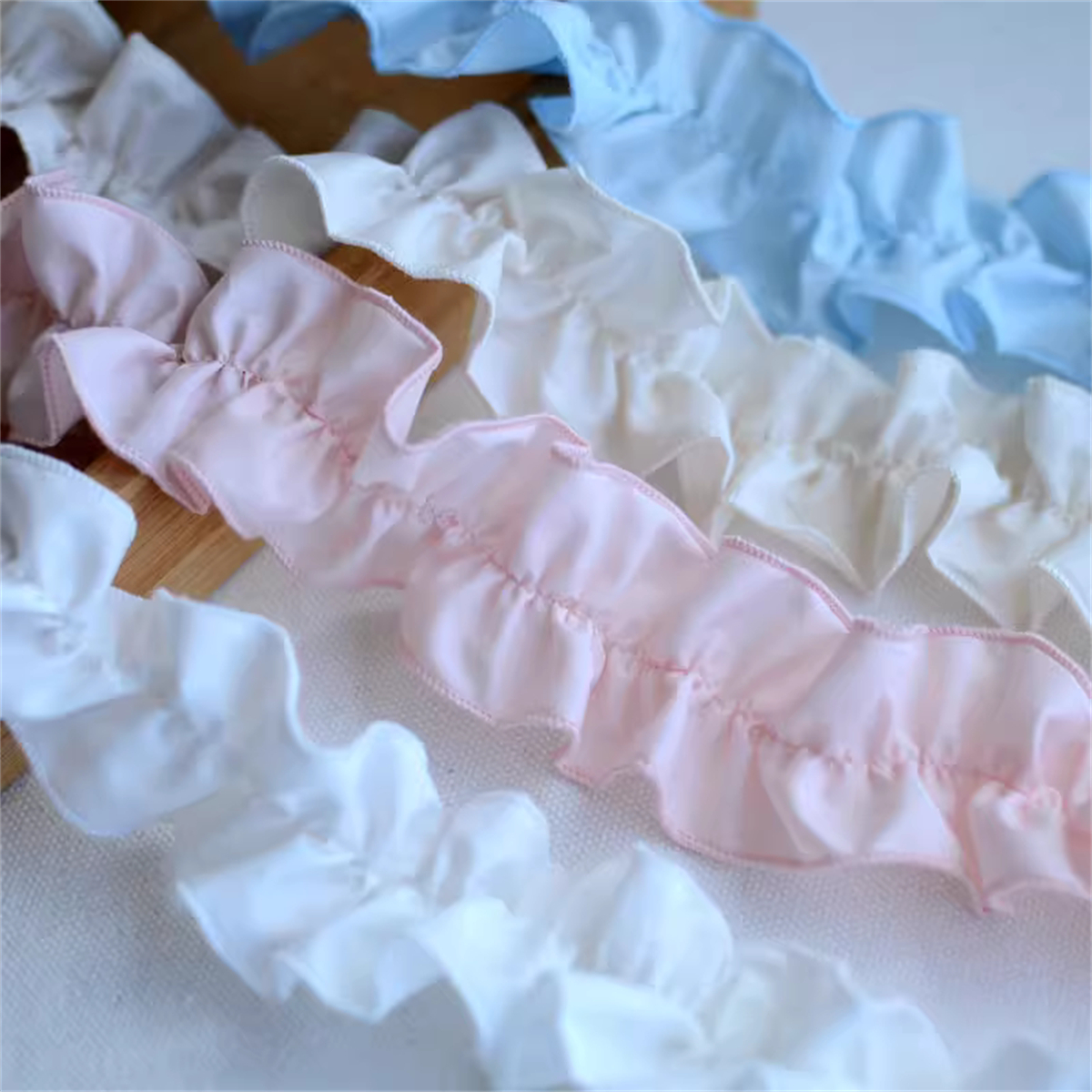 50CM Elastic Pleated Lace Ruffle Trim Cotton Fabric Ribbon DIY Collar Dresses