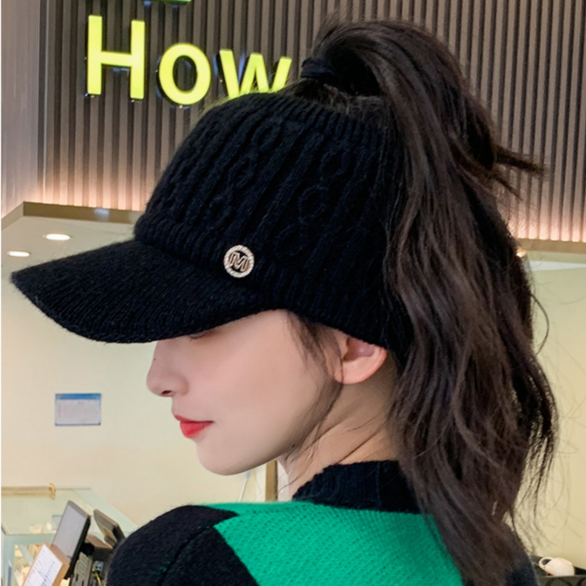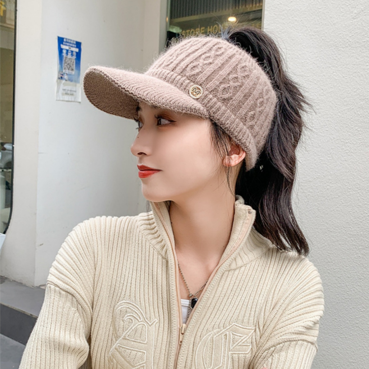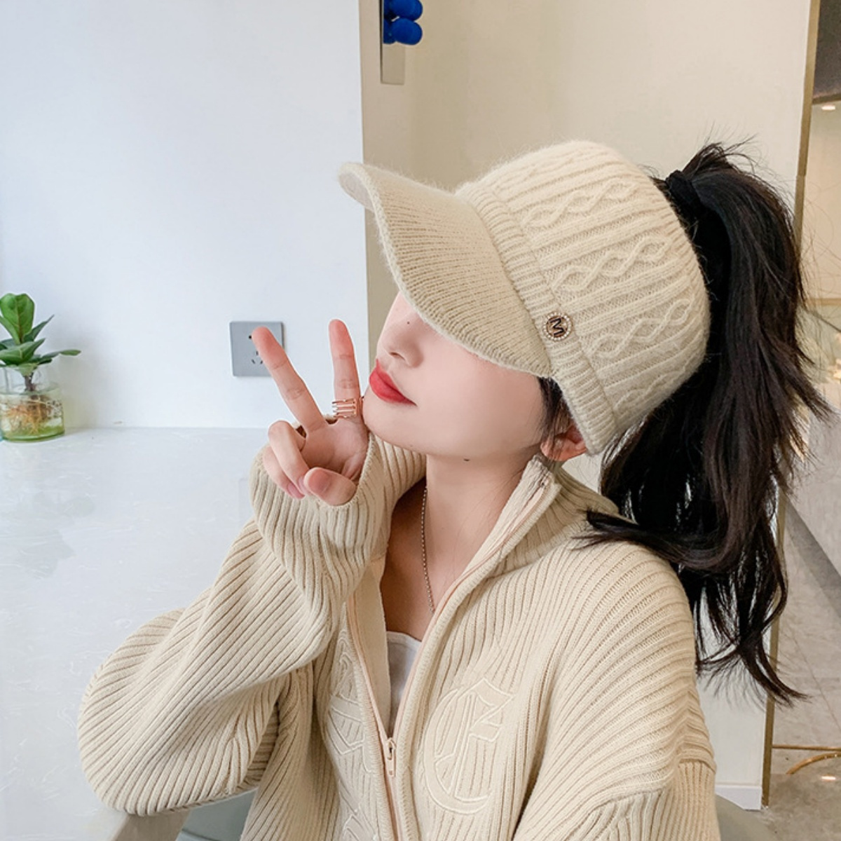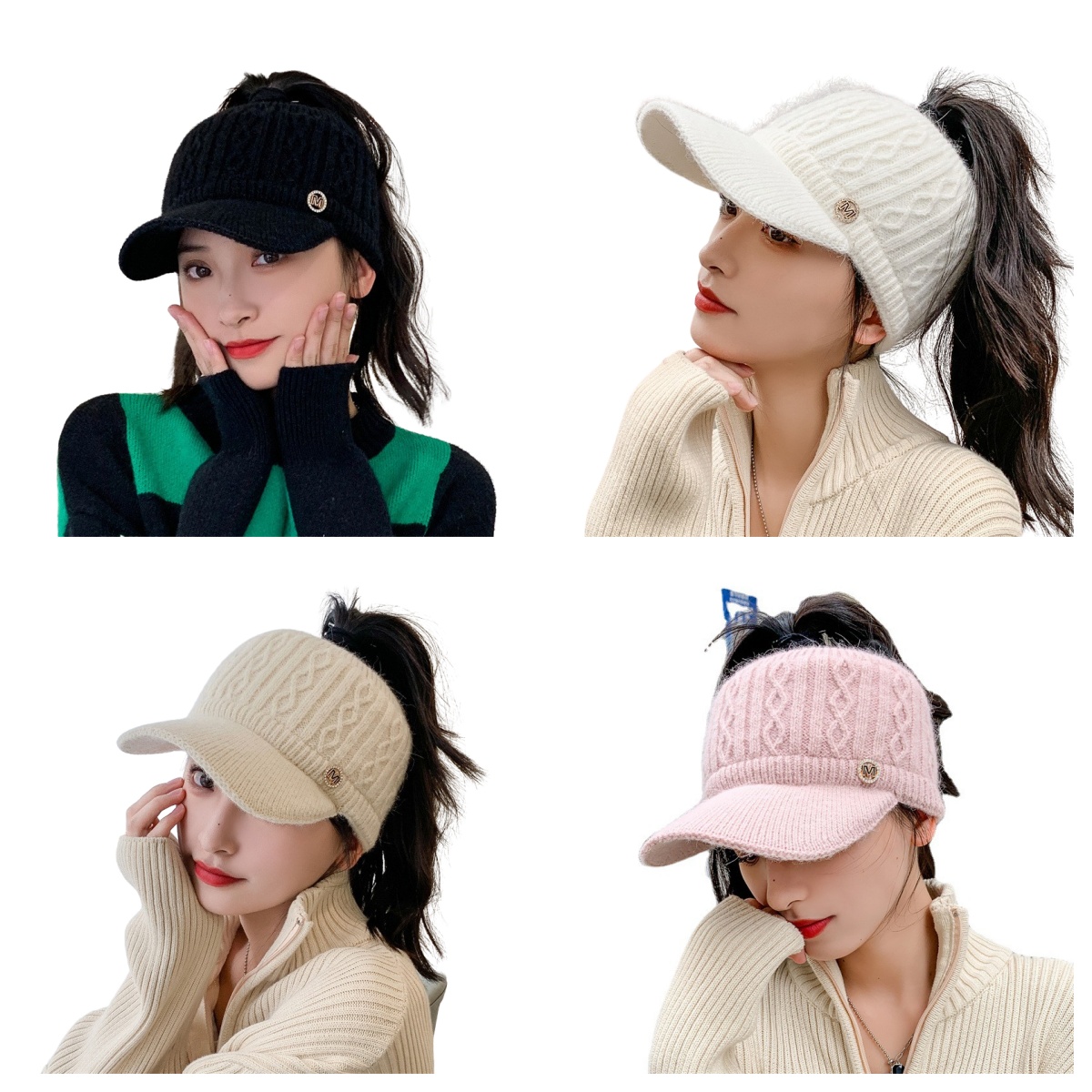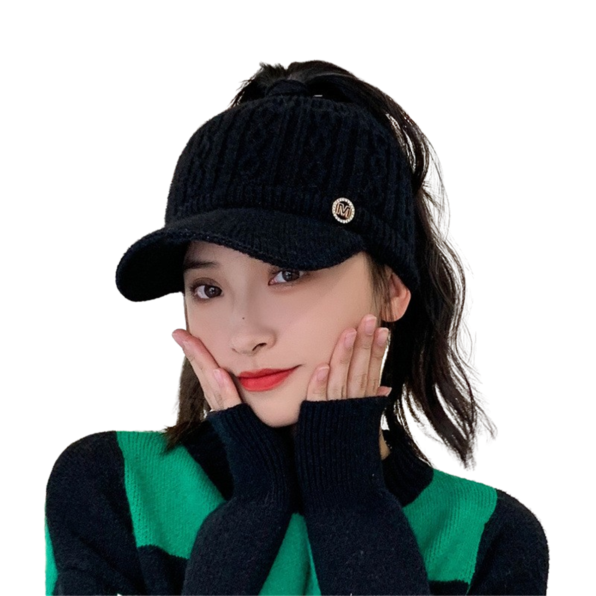Knit Beanie Hat for Womens High Ponytail Cap Winter Warm Visor Brim Crochet Hat
