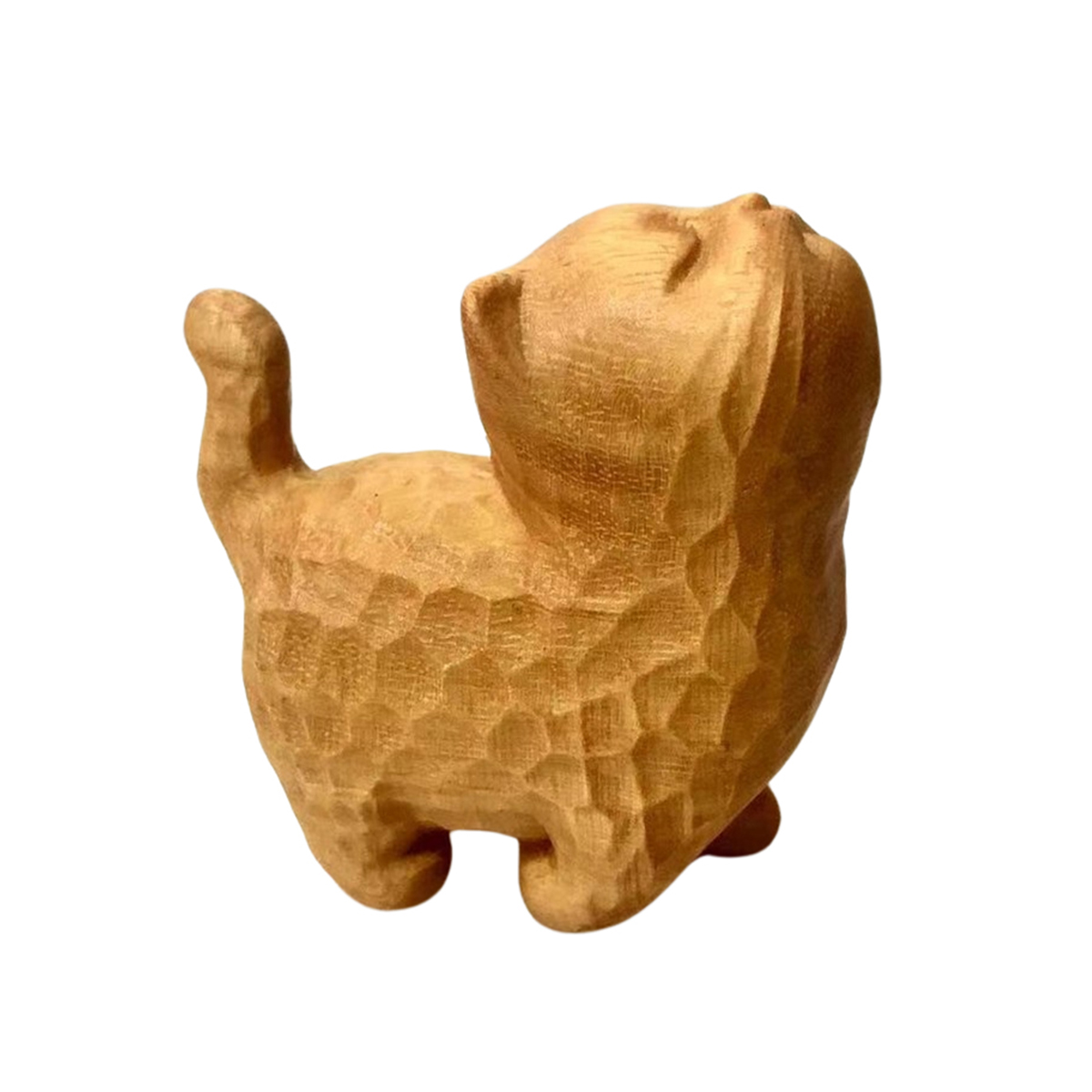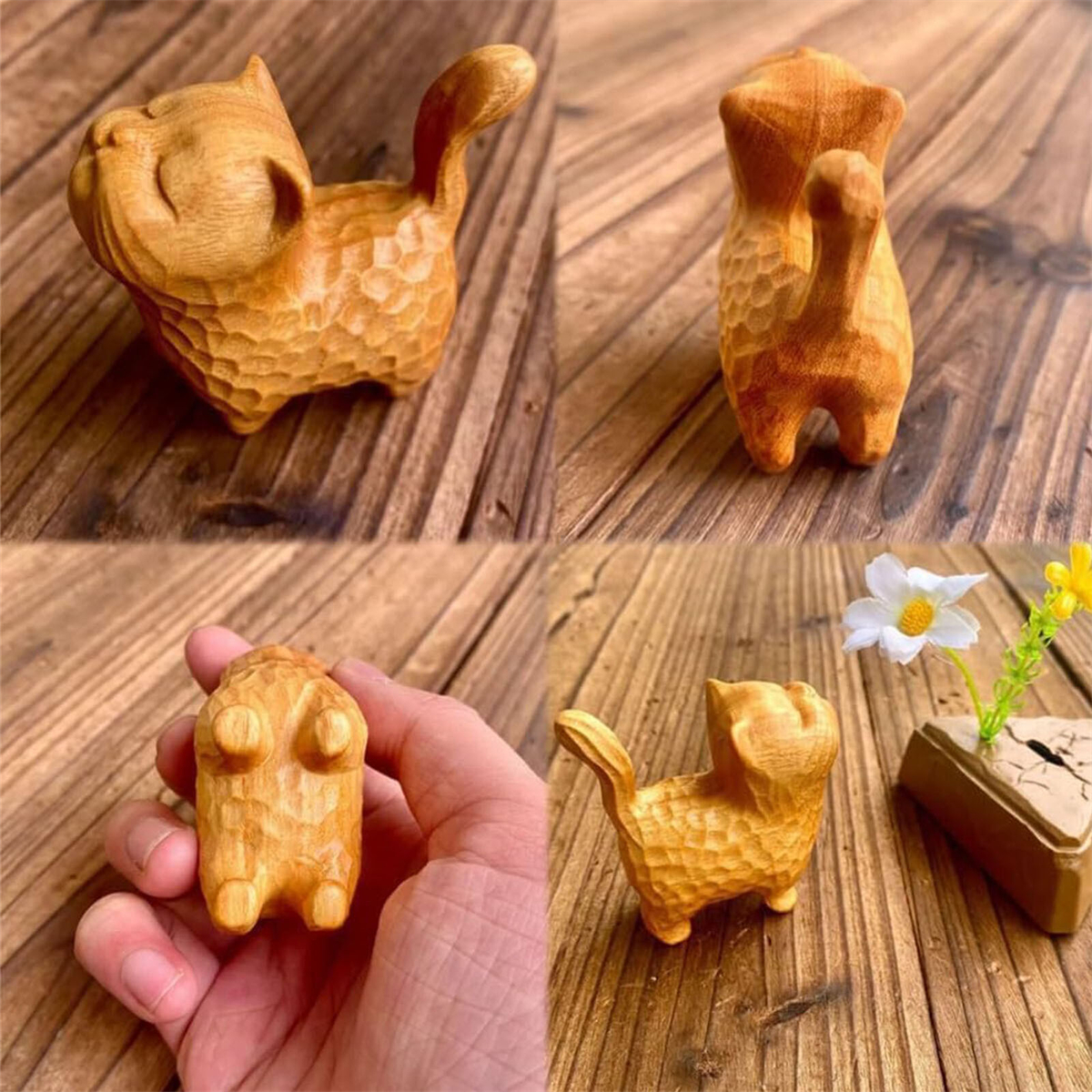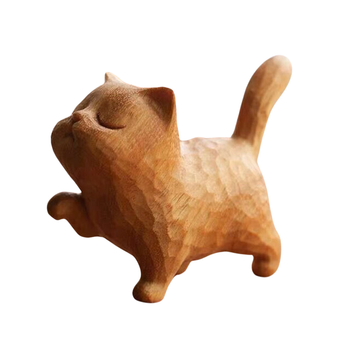 1pc A Cute cat -- Wooden Statue animal Carving Wood Figure Decor Children Gift