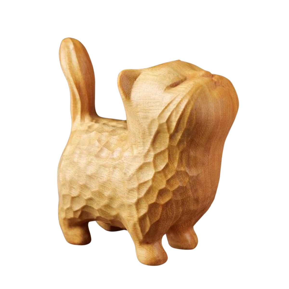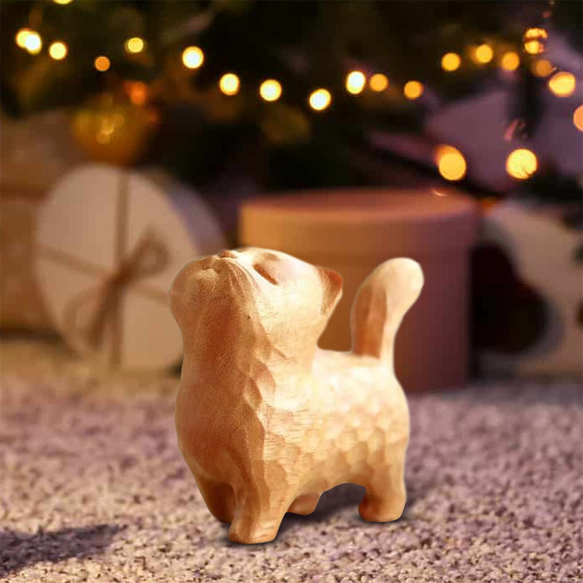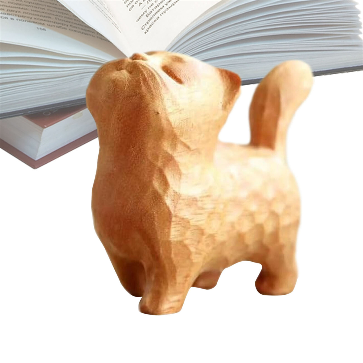 1pc A Cute cat -- Wooden Statue animal Carving Wood Figure Decor Children Gift