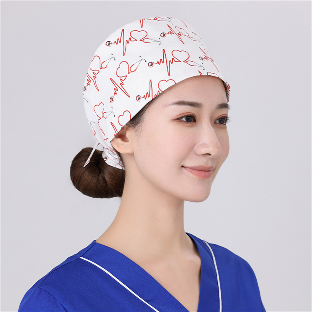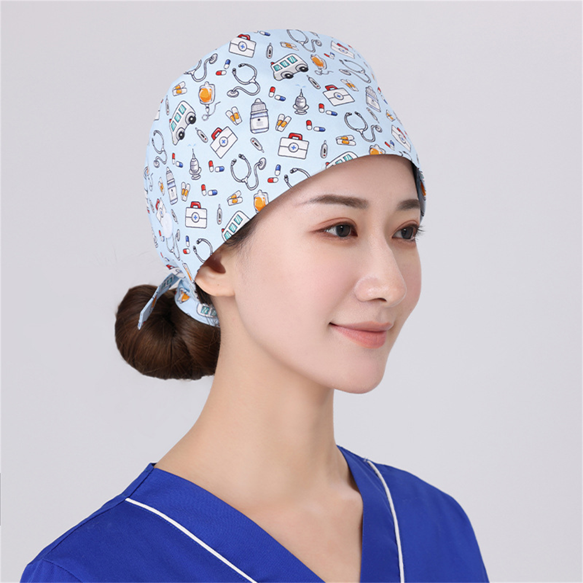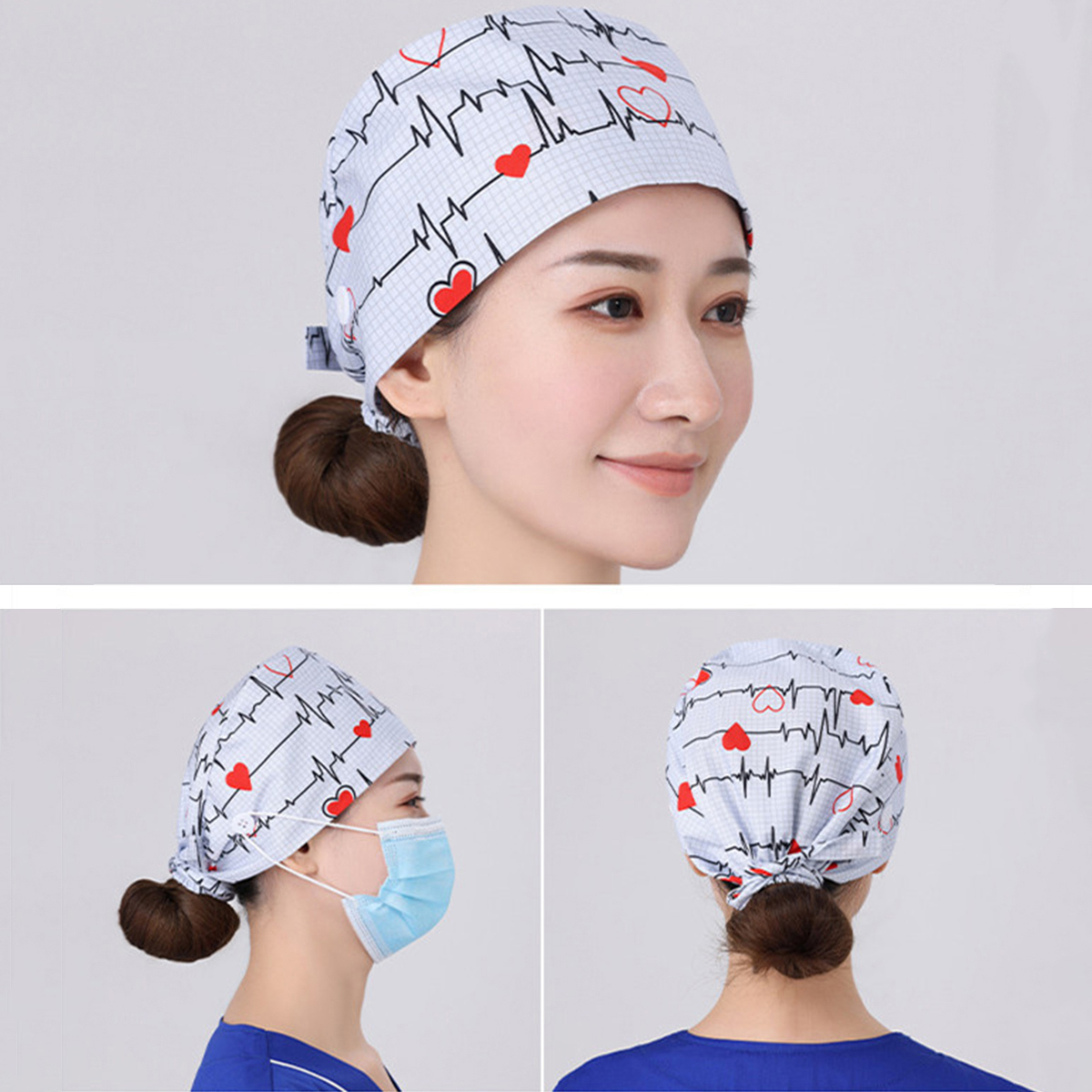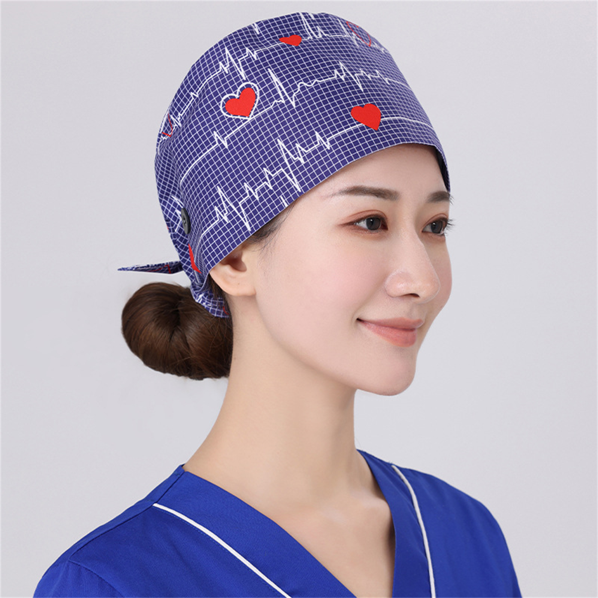 Unisex Surgical Scrub Cap Hat with Buttons Women Men Hospital Doctor Nurses