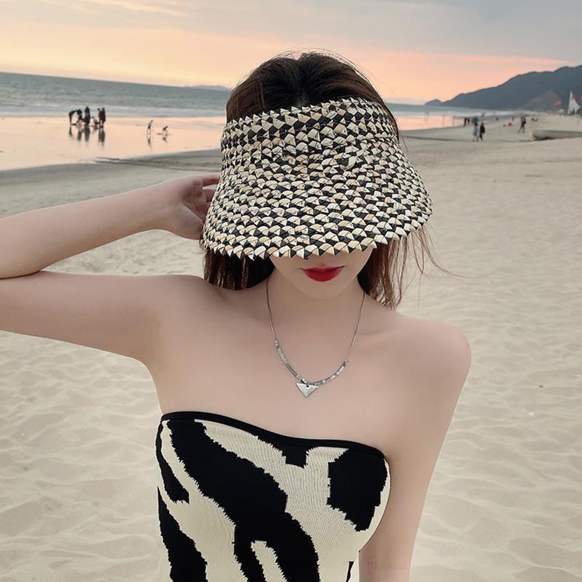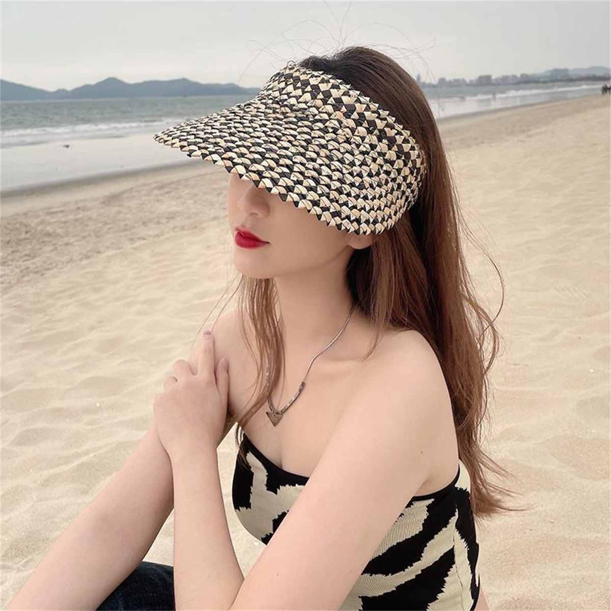 Fashion Women Summer Sun Visor Beach Straw Hat, Wide Brim Outdoor Open Top Cap