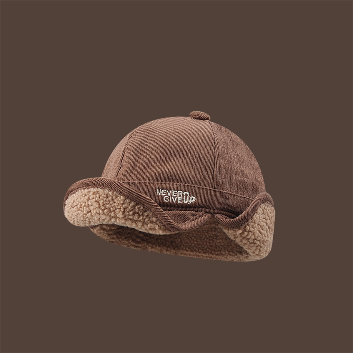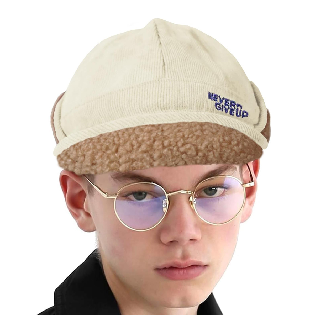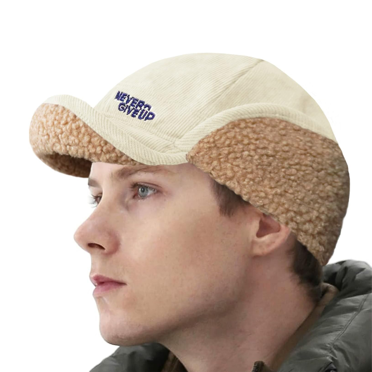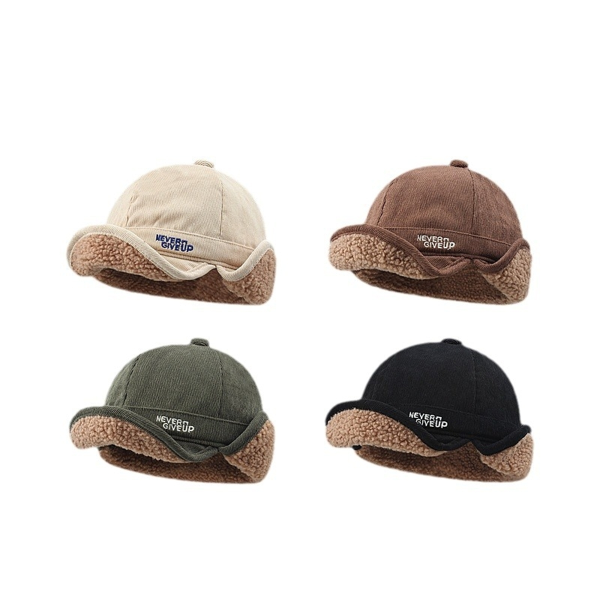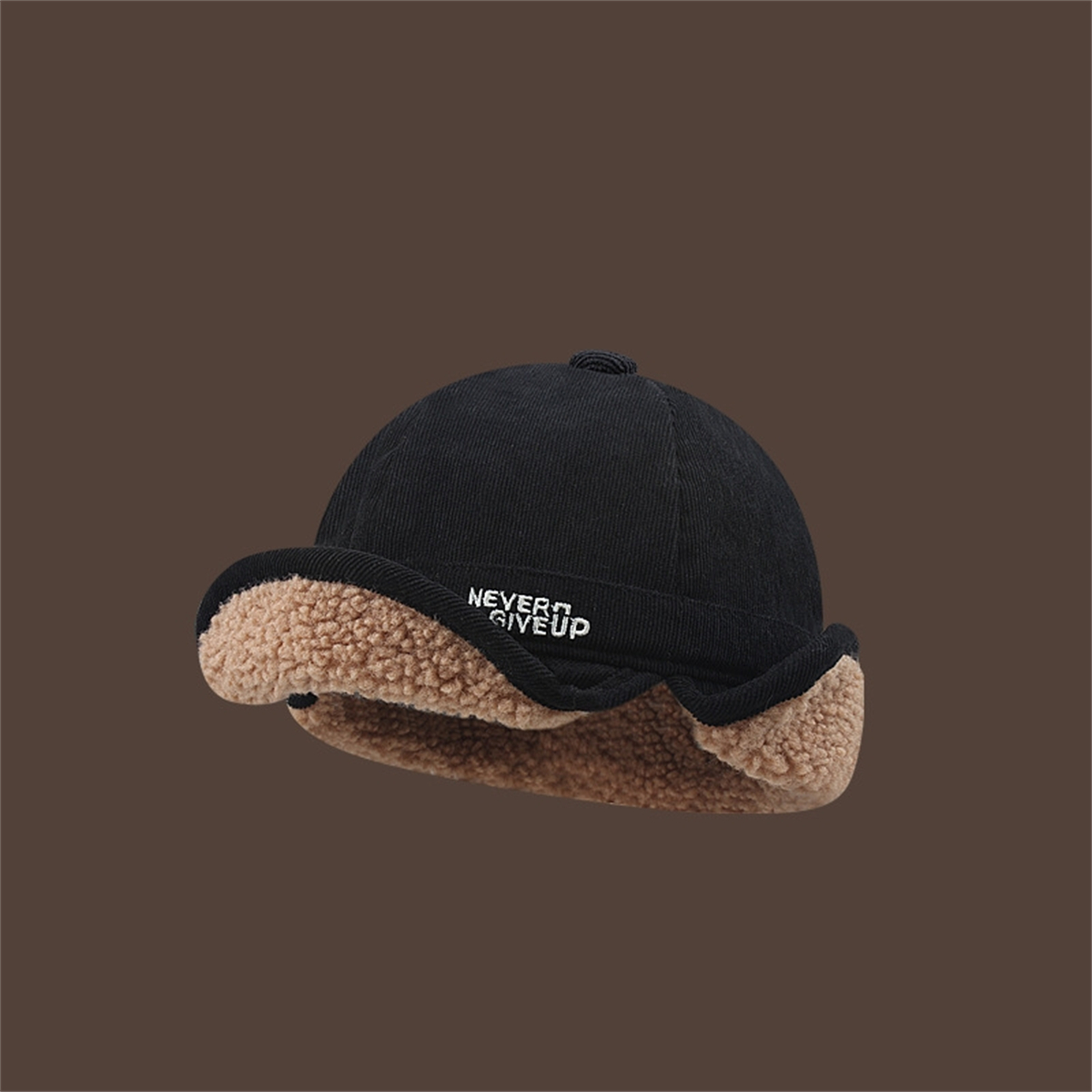Lamb Velvet Thickened Warm Hat Ear Protection Trendy Men Short Brimmed Pilot Cap