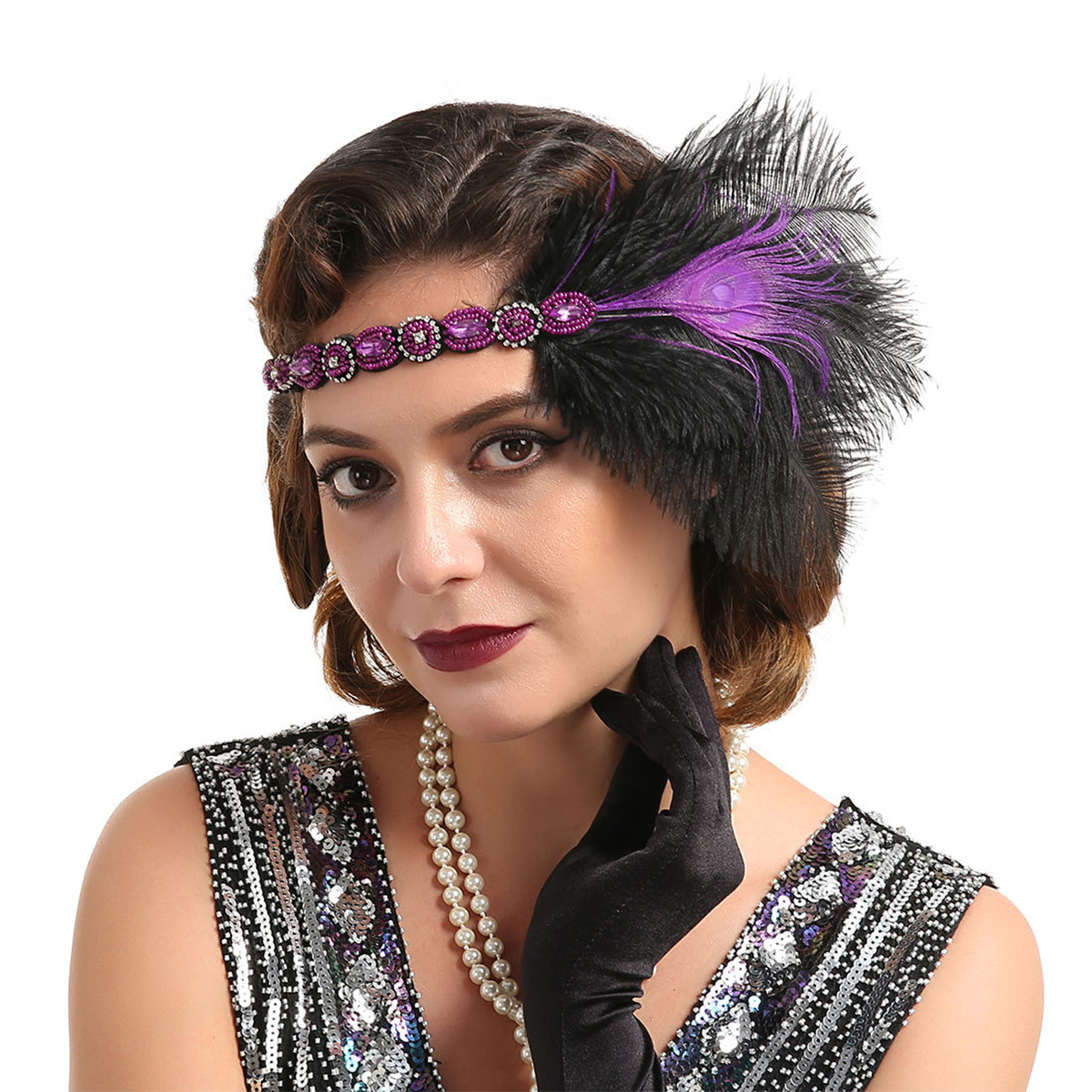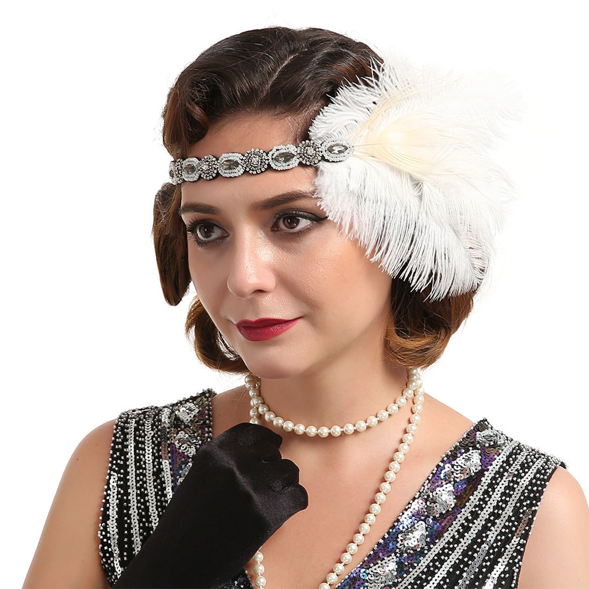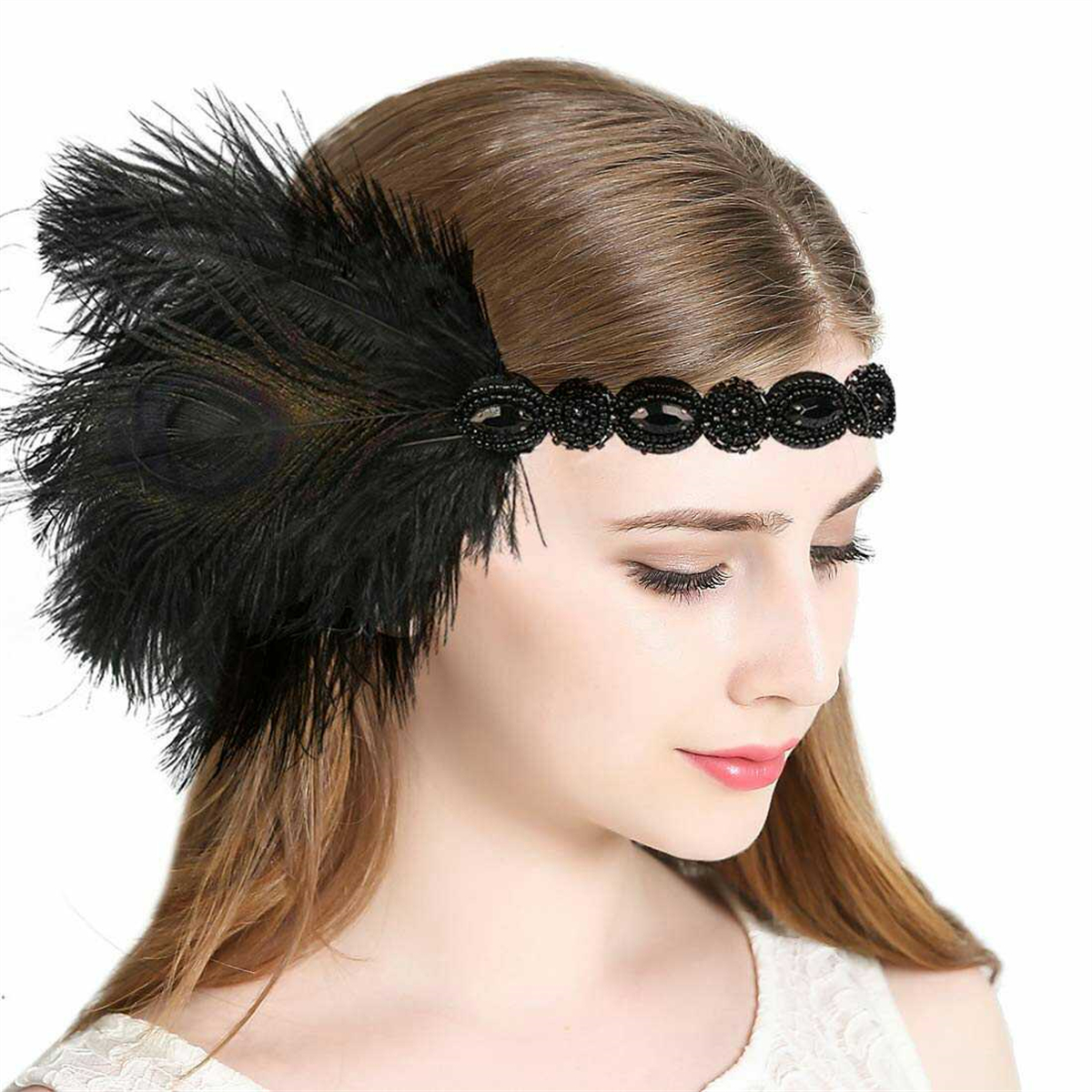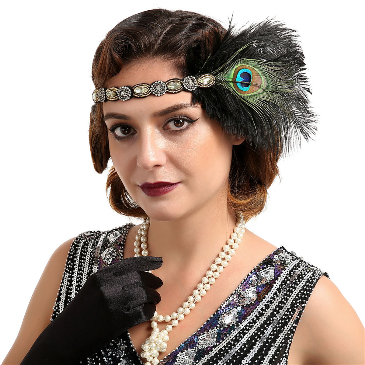 1920s Headband Beaded Peacock Feather Headpiece Flapper Great Gatsby Party Gift