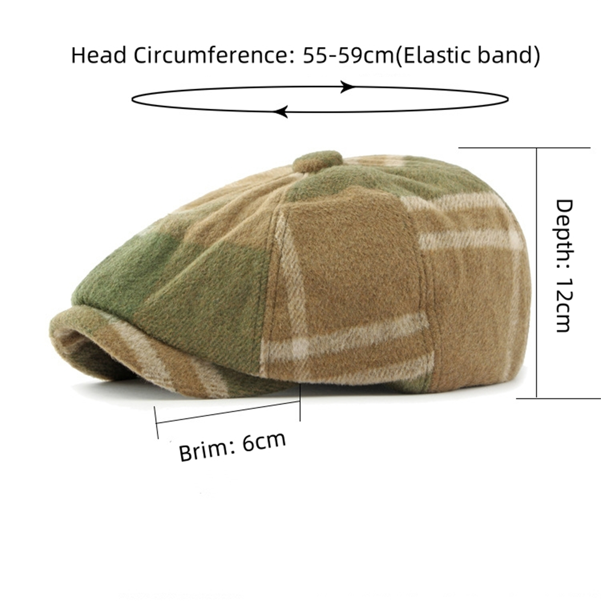 3. Grid pattern, retro, fashionable. Classic octagonal hat, unisex.