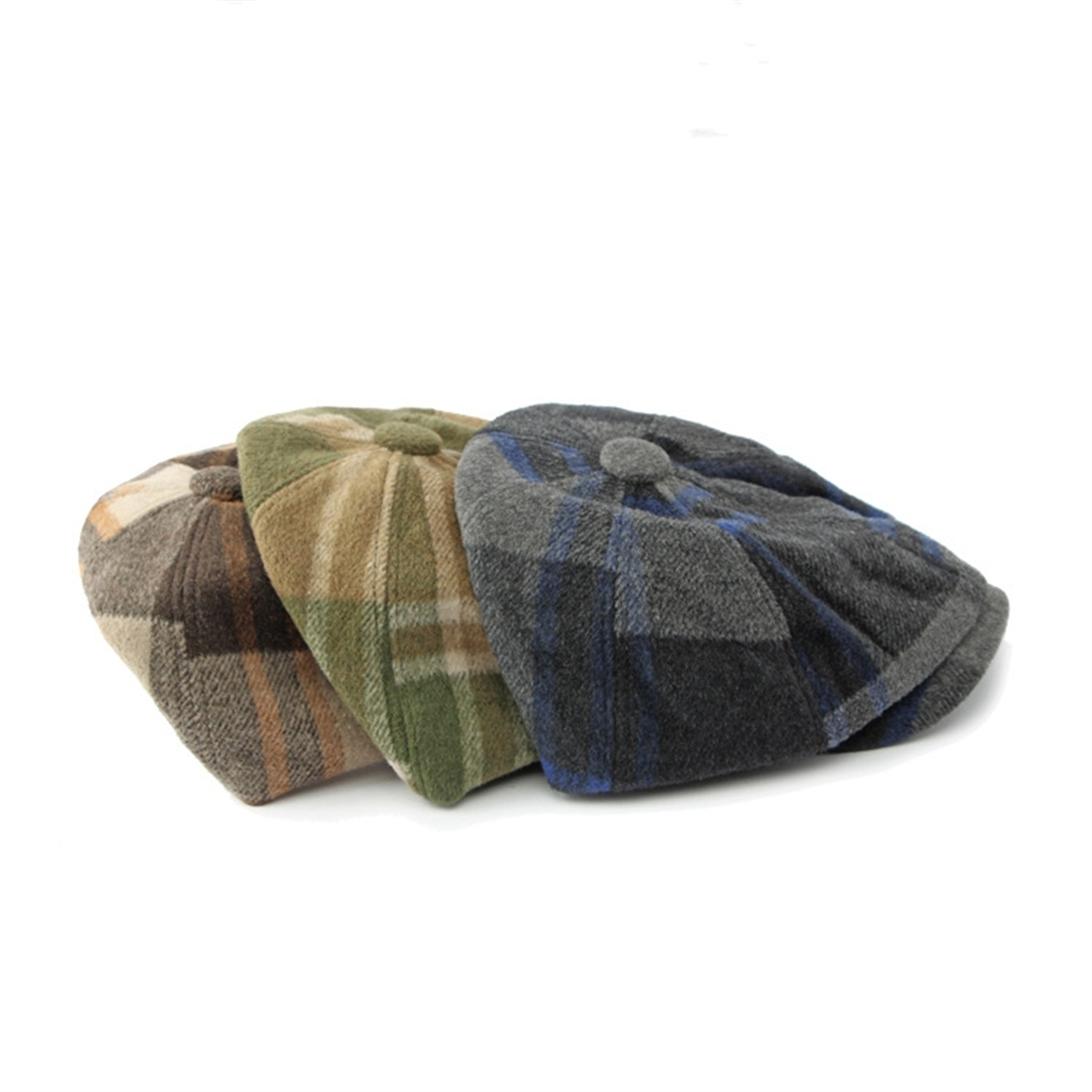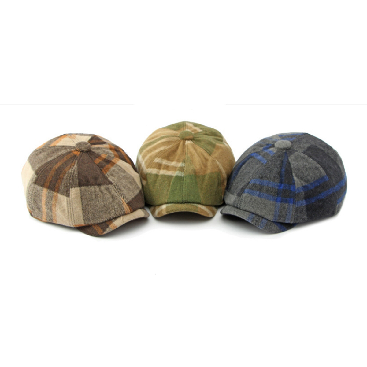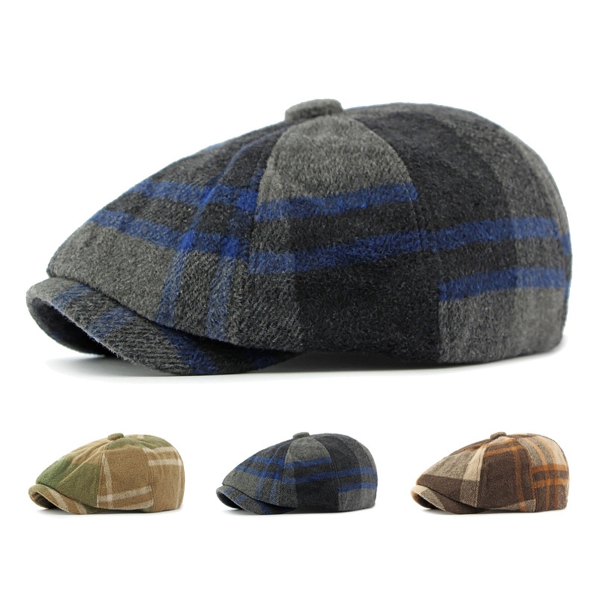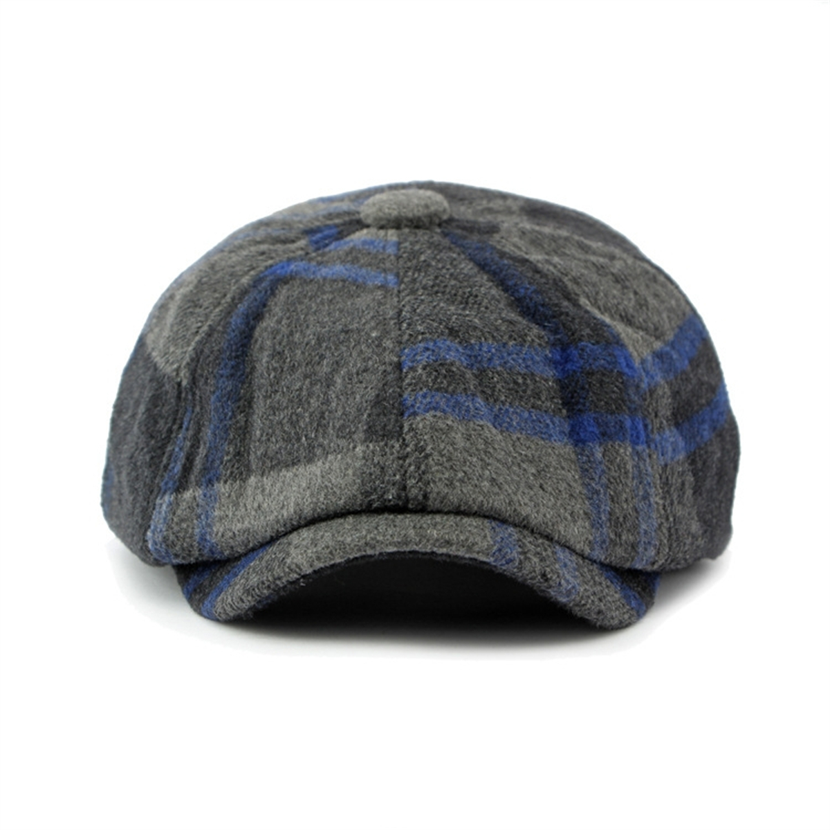 Men Warm Wool Blend Plaid Newsboy Cap Retro Cabbie Hat Painter Artist Beret Hat