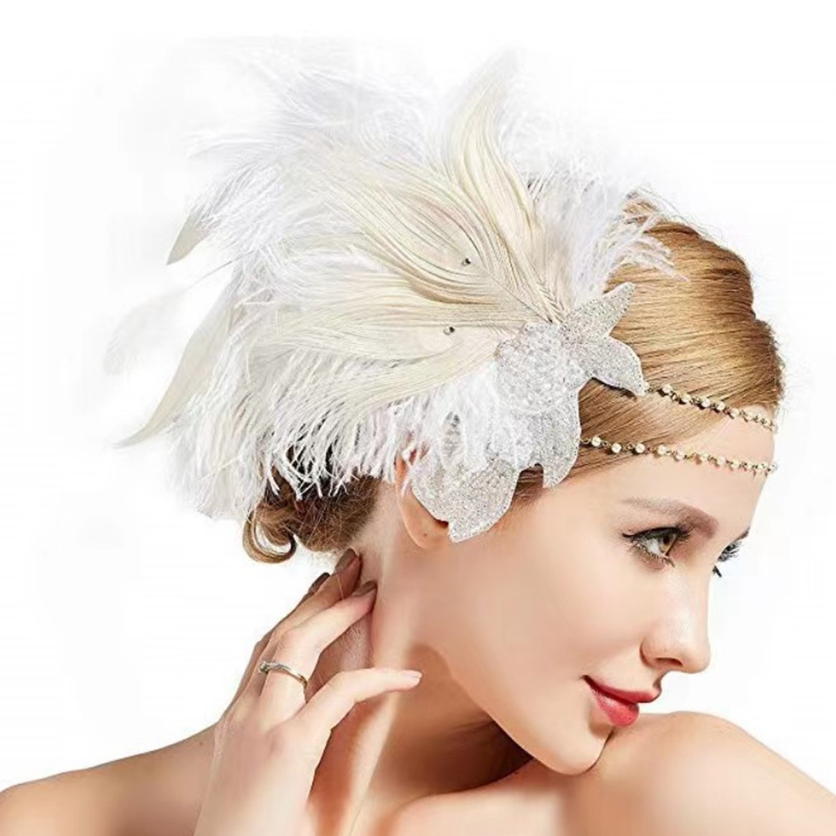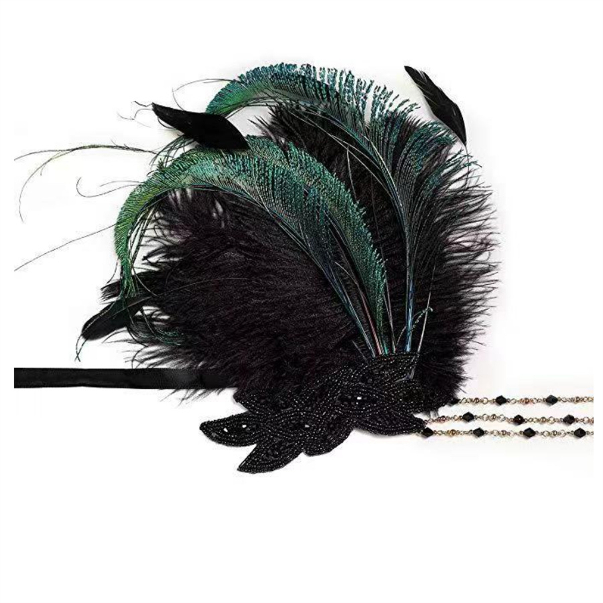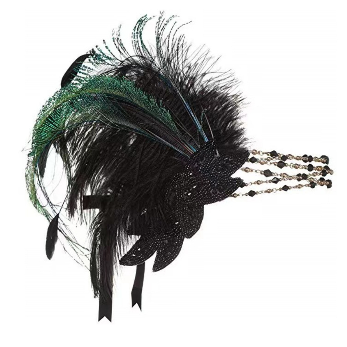 1920s Flapper Headpiece Roaring 20s Great Gatsby Feather Headband Accessories