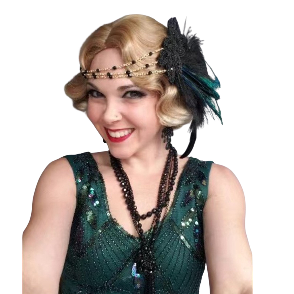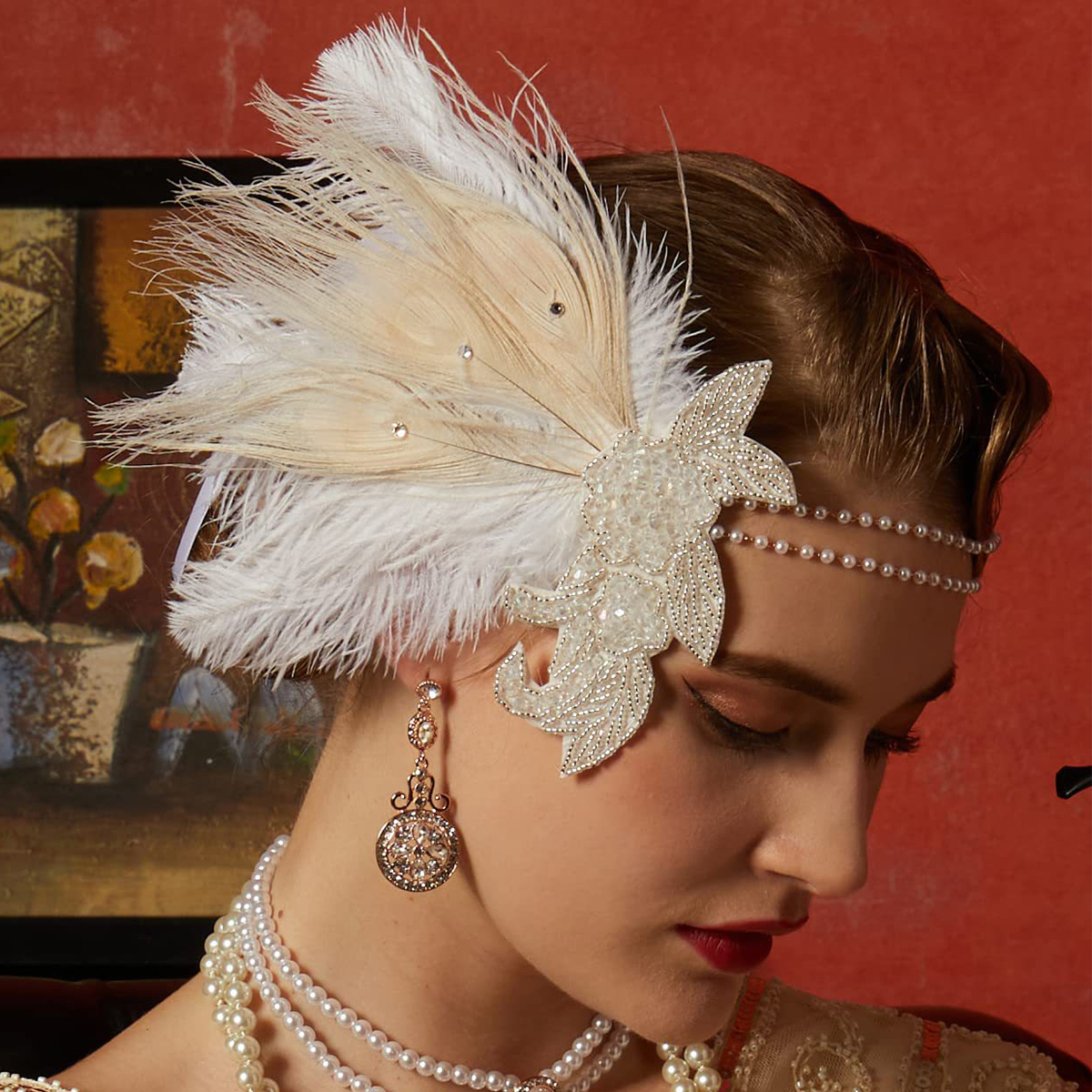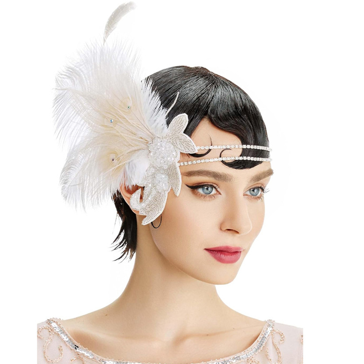 1920s Flapper Headpiece Roaring 20s Great Gatsby Feather Headband Accessories