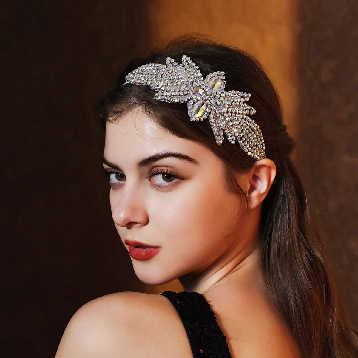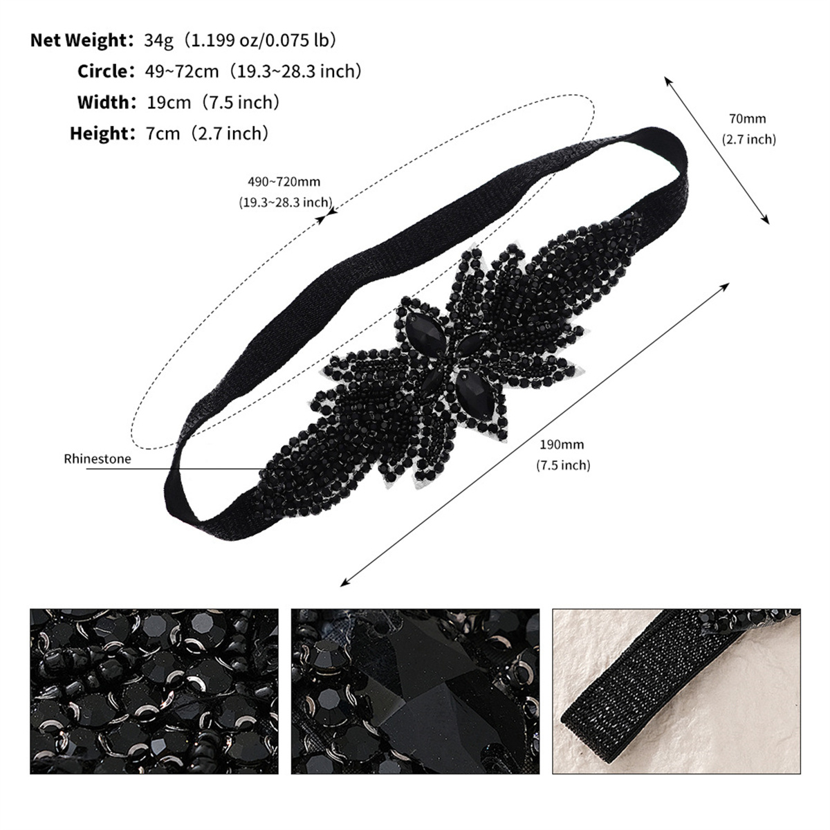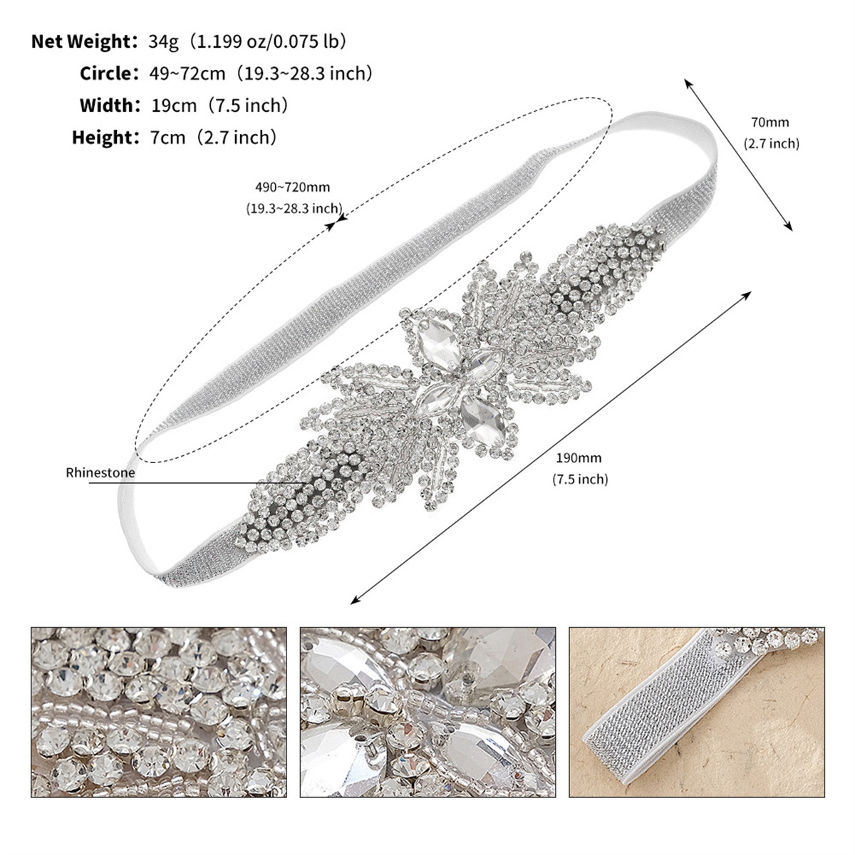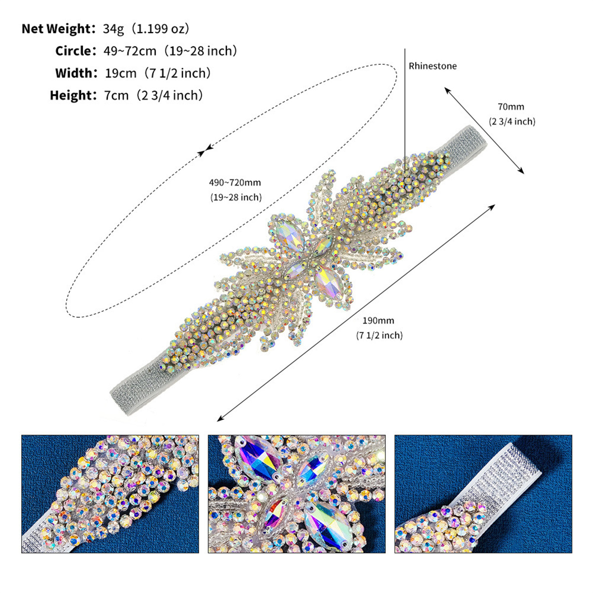 1.Material: made of crystal, Rhinestone and elastic ribbon.Wearing it can make you very fashionable and elegant.