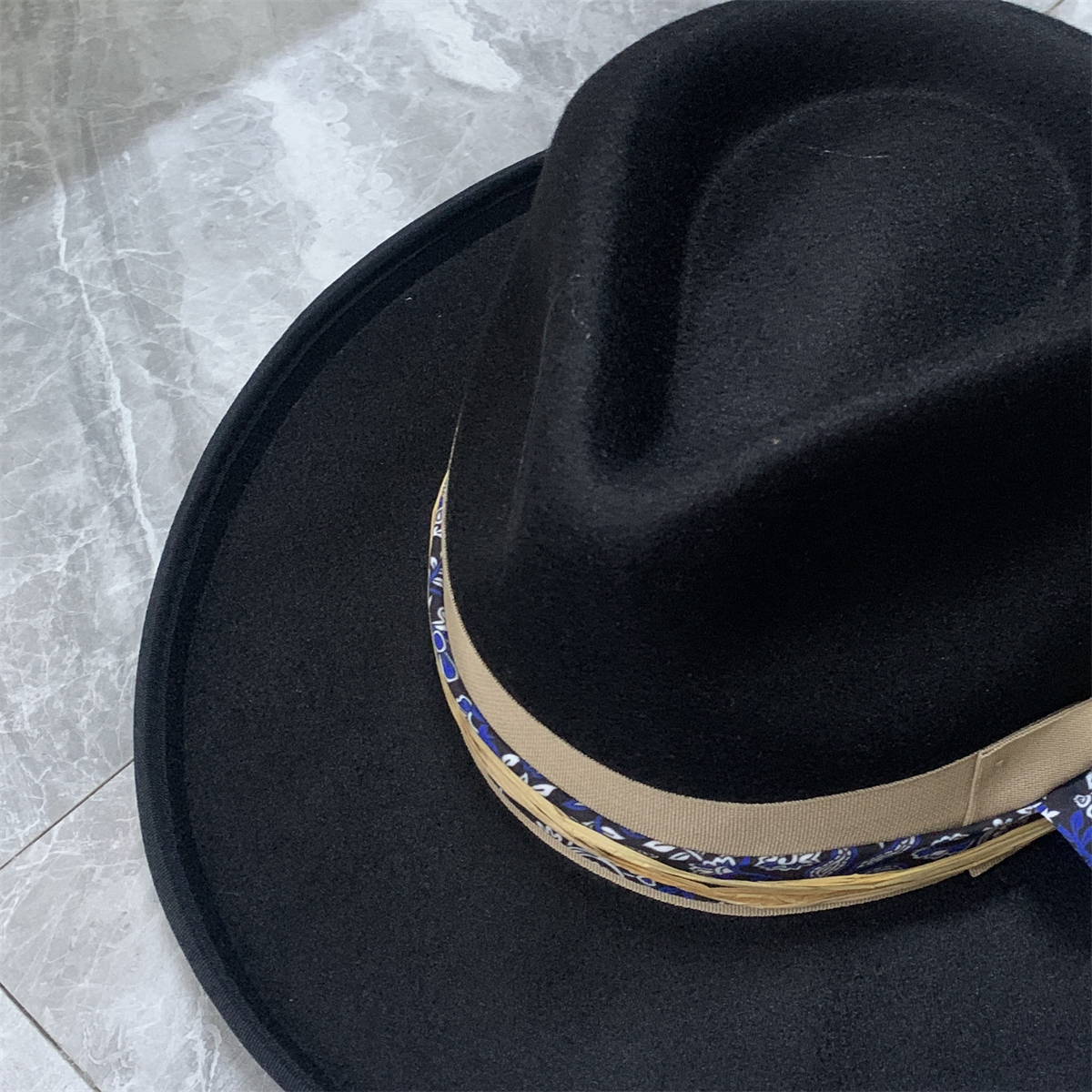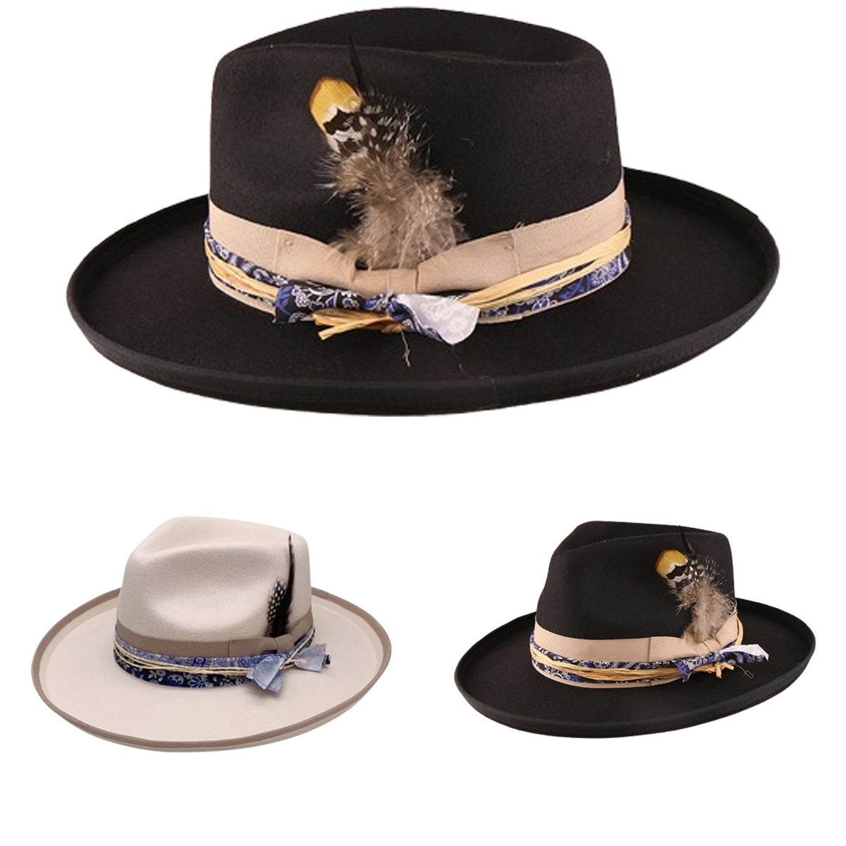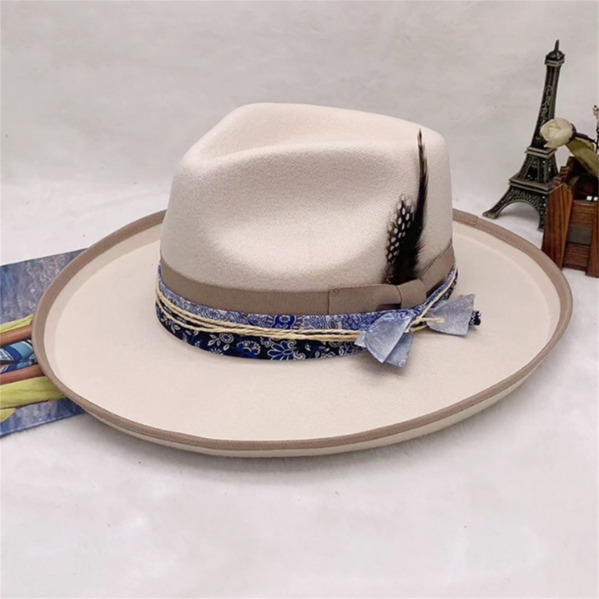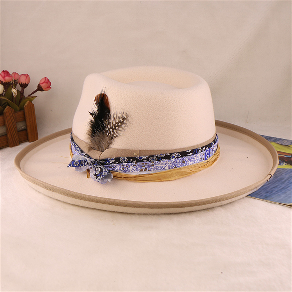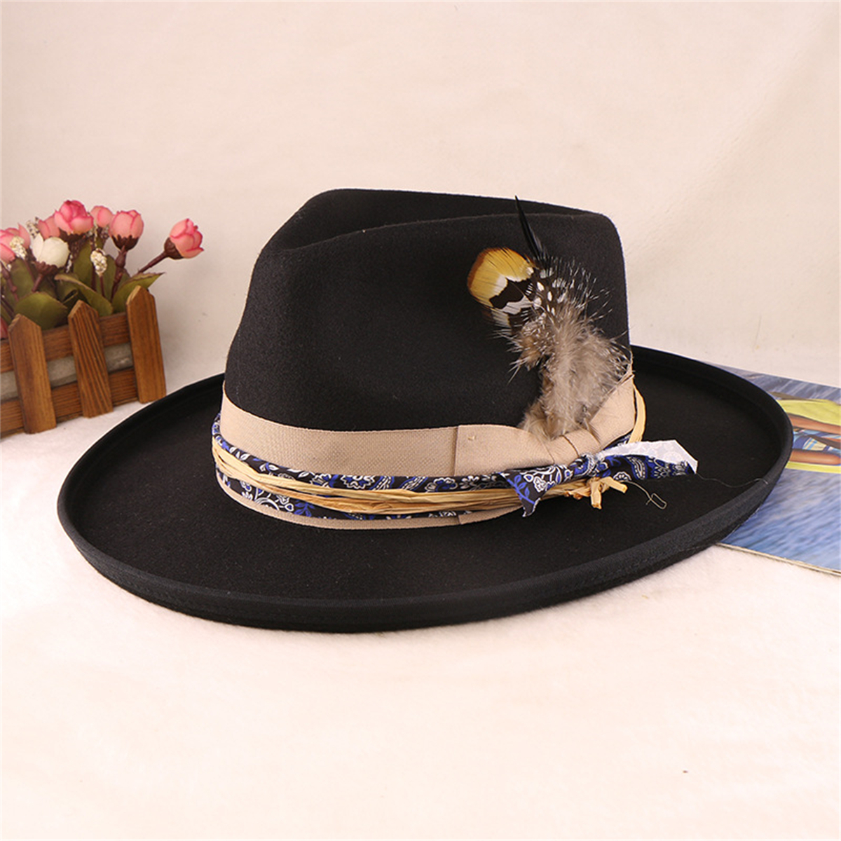 Big Wide Brim Hat for Women Men Felt Panama Hat with Band Western Cowboy hat