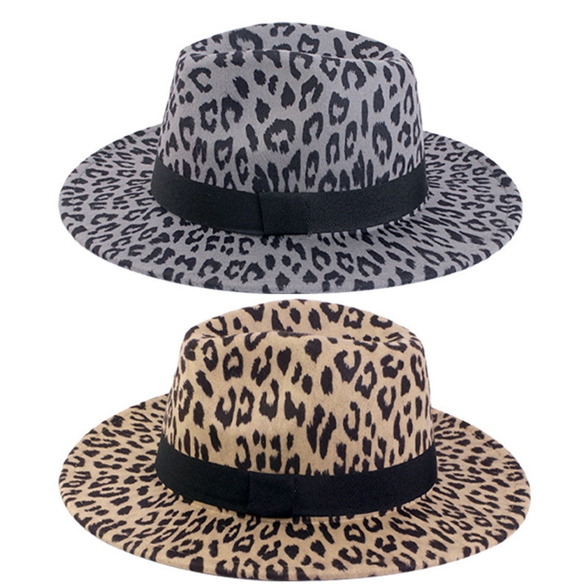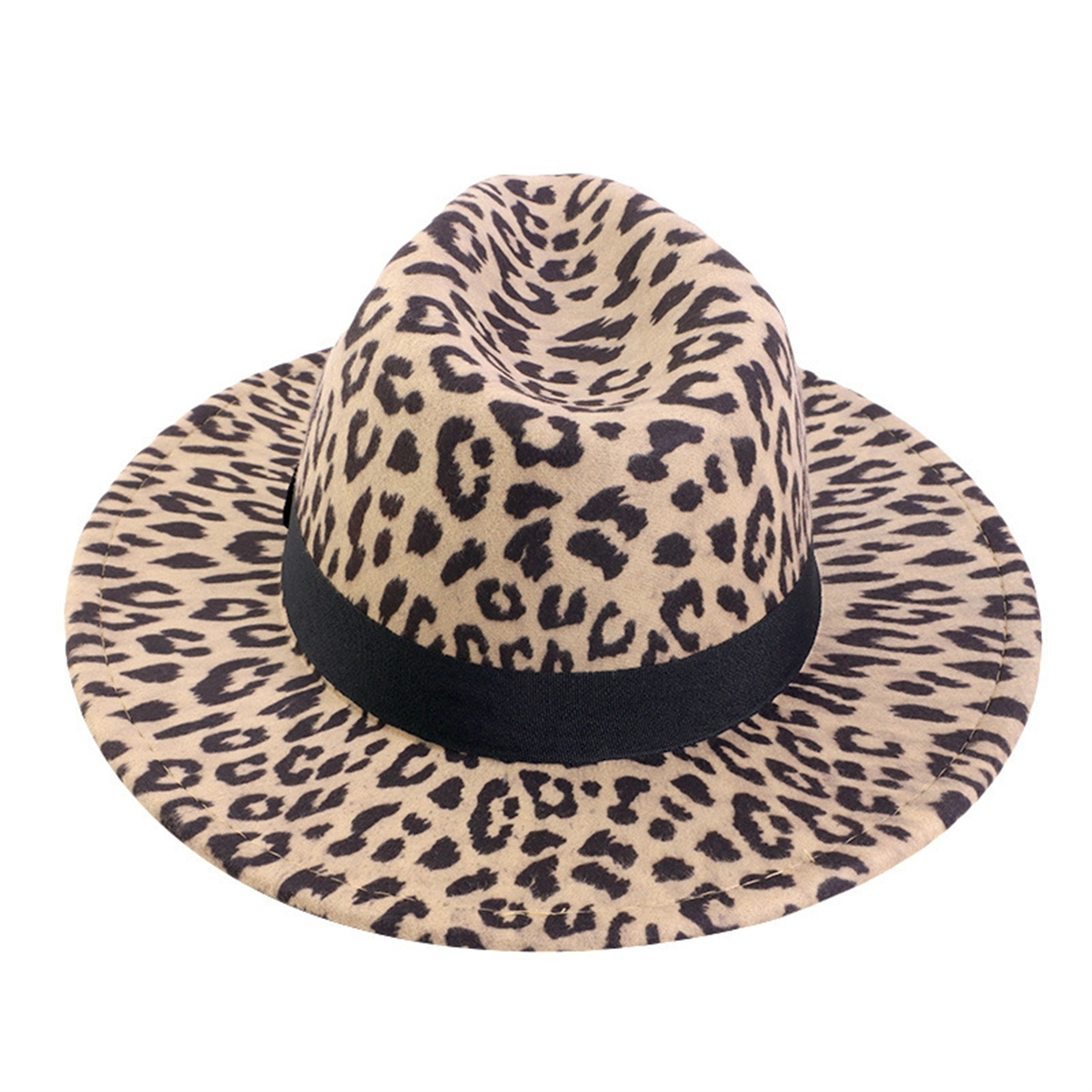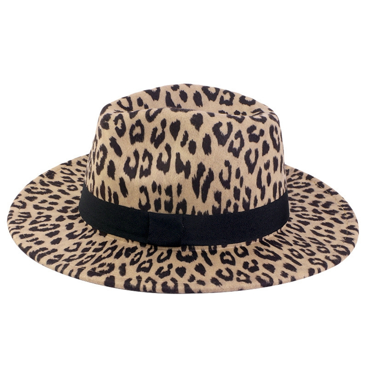Classic Wide Brim Leopard Print Floppy Felt Hat Panama Trilby Jazz Cap Men Women
