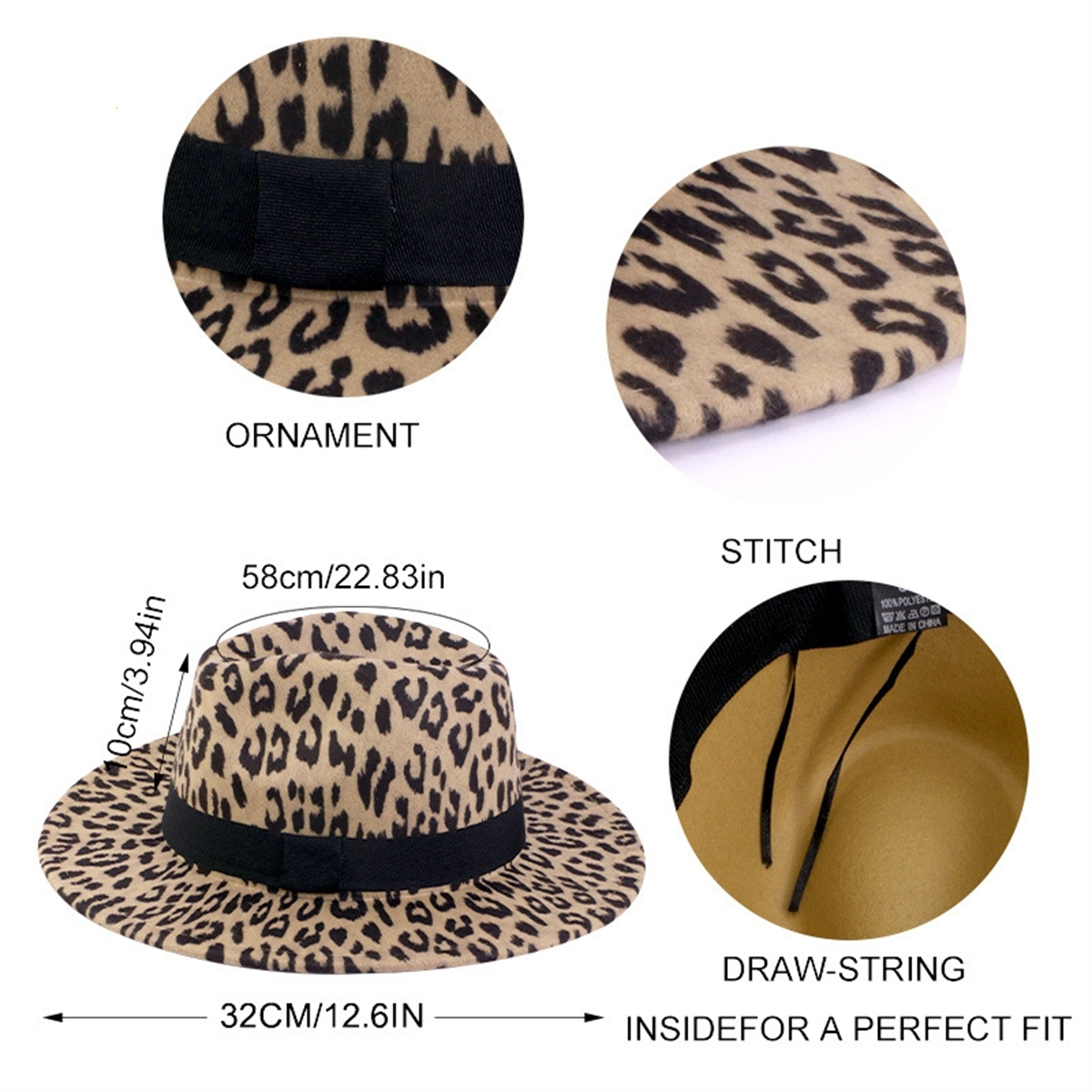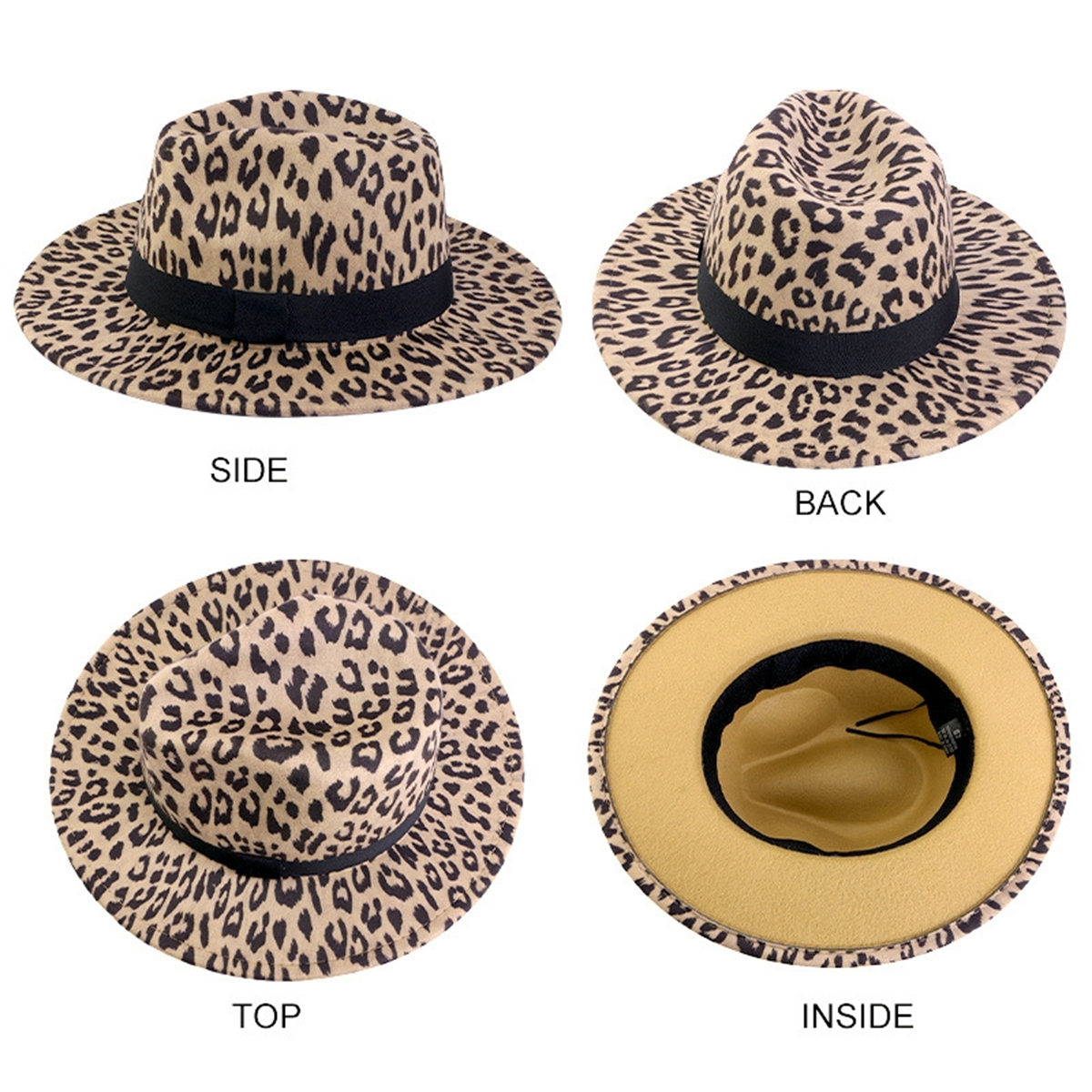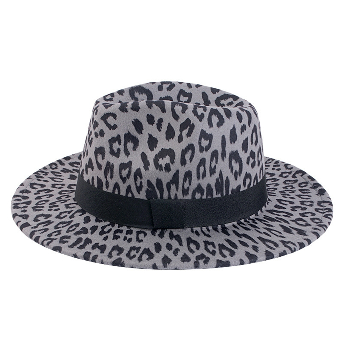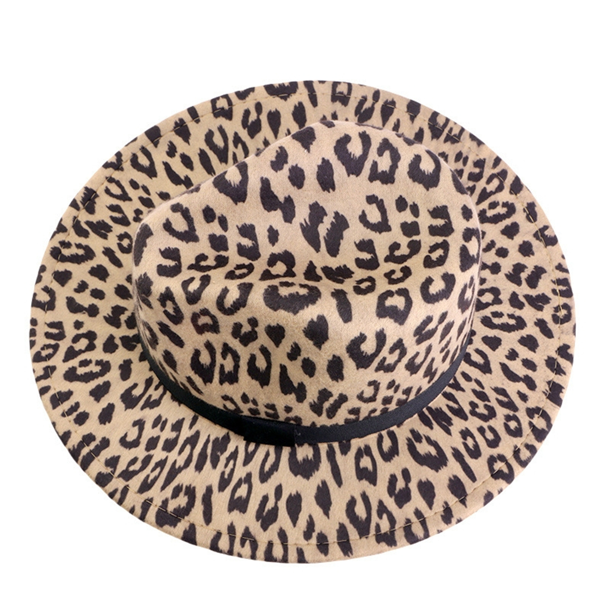 Classic Wide Brim Leopard Print Floppy Felt Hat Panama Trilby Jazz Cap Men Women