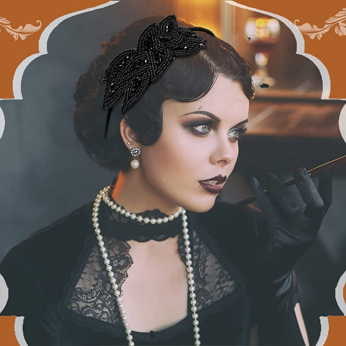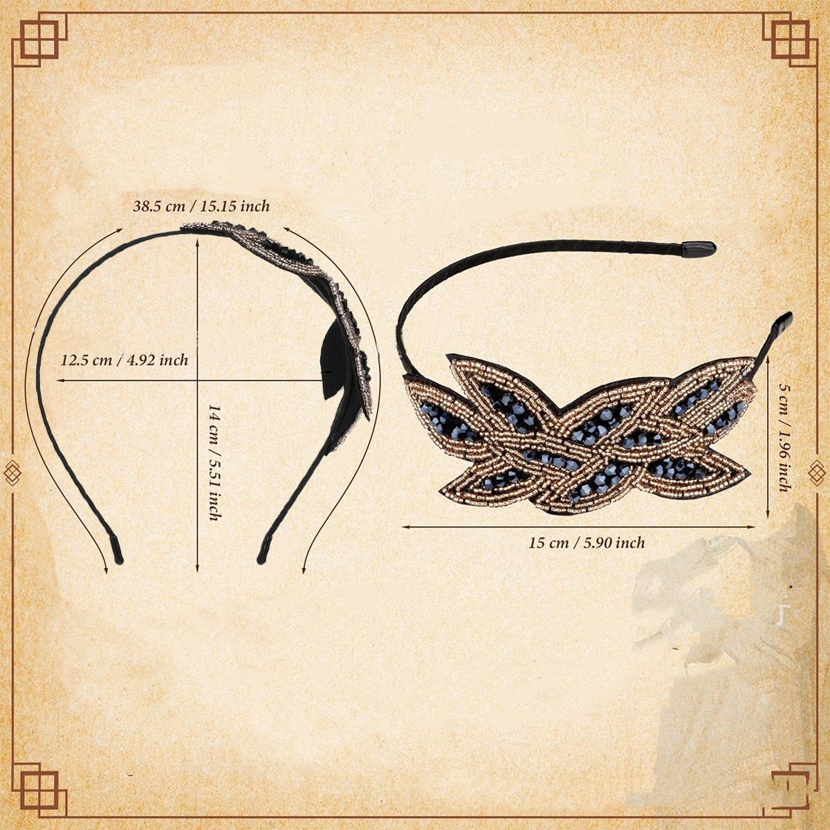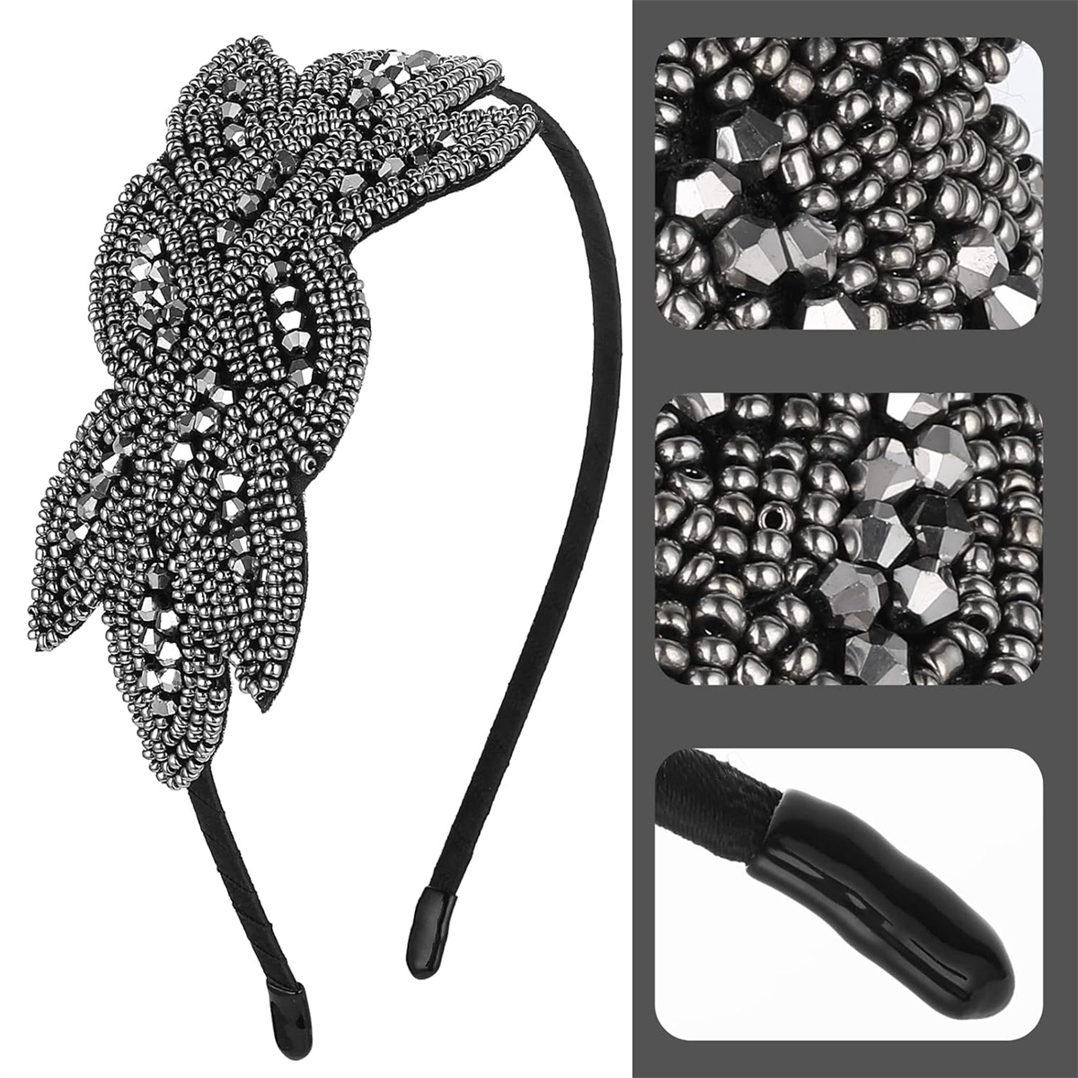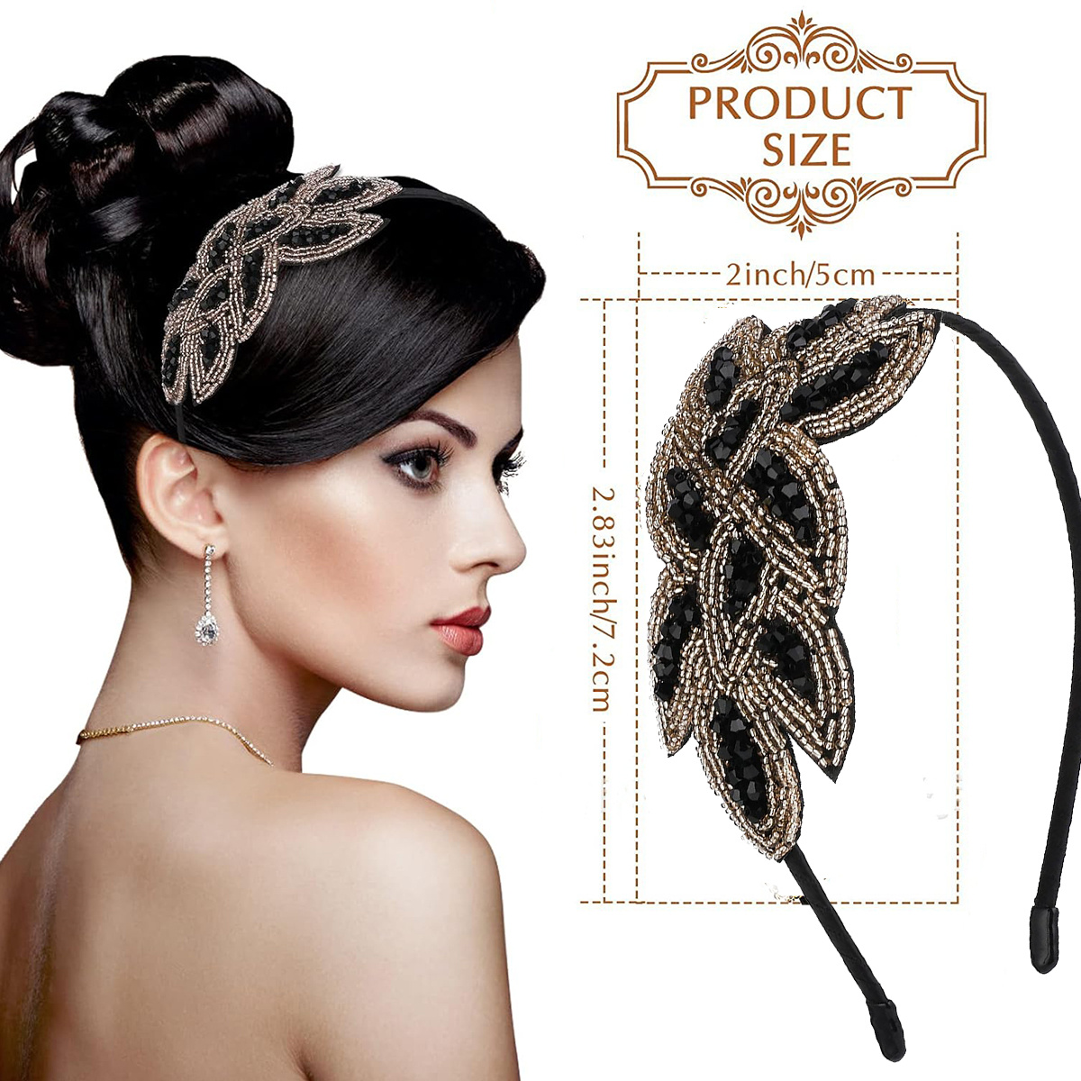 1.Retro Elegant Design:1920 vintage headbands unique leaf design, Shimmering crystal beads and a headpiece in the shape of a wide,
