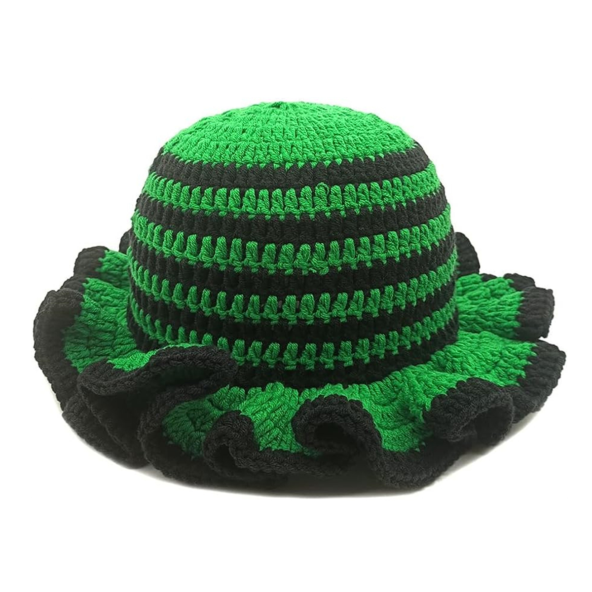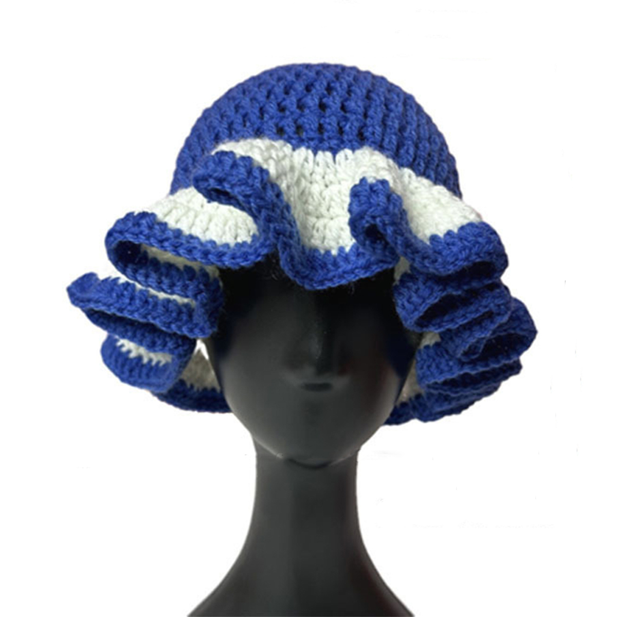 Women's Ruffle Trim Crochet Hat Soft Comfortable Handmade Knitted Bucket Hat