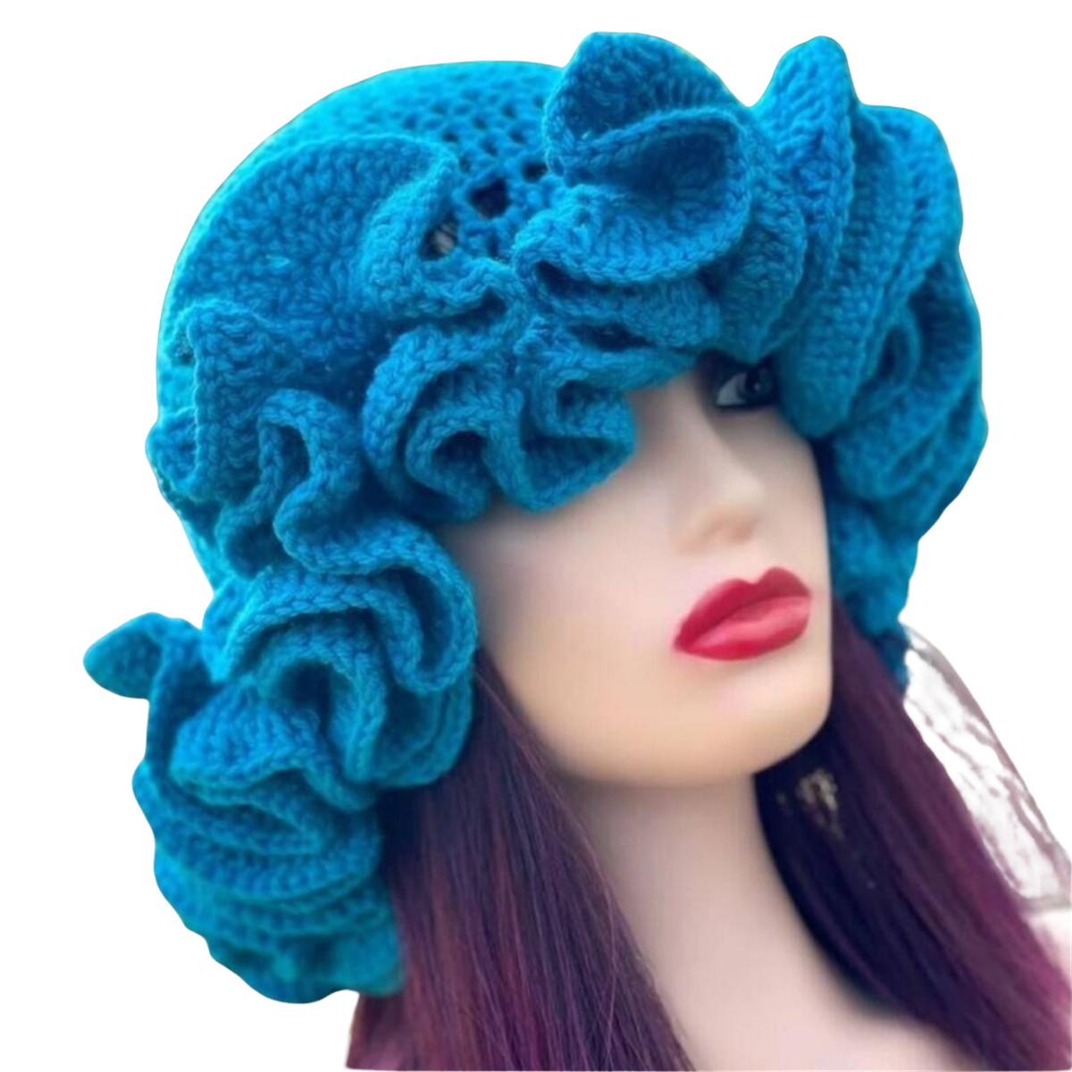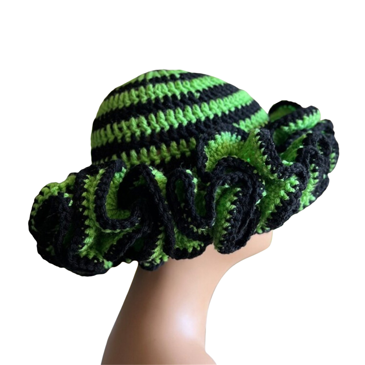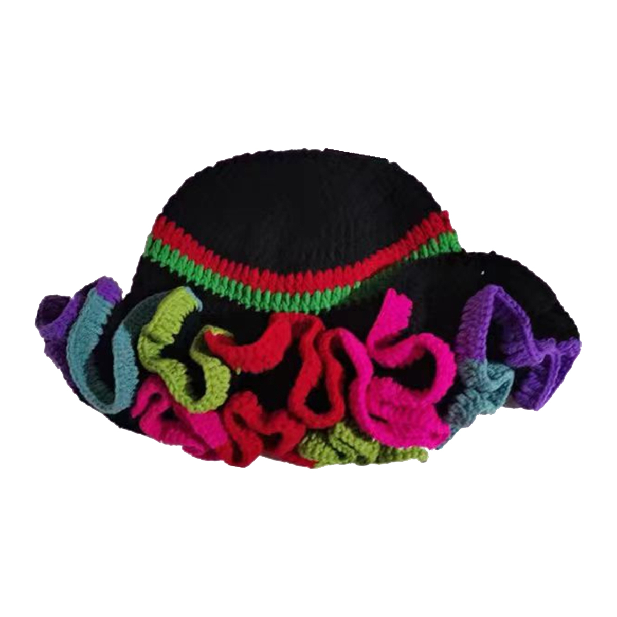 1.Stay warm and stylish this winter with a handmade knitted hat featuring a eye catching ruffled brim, perfect for carnival!