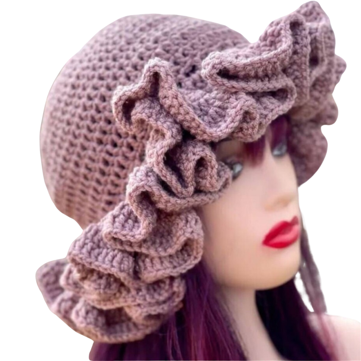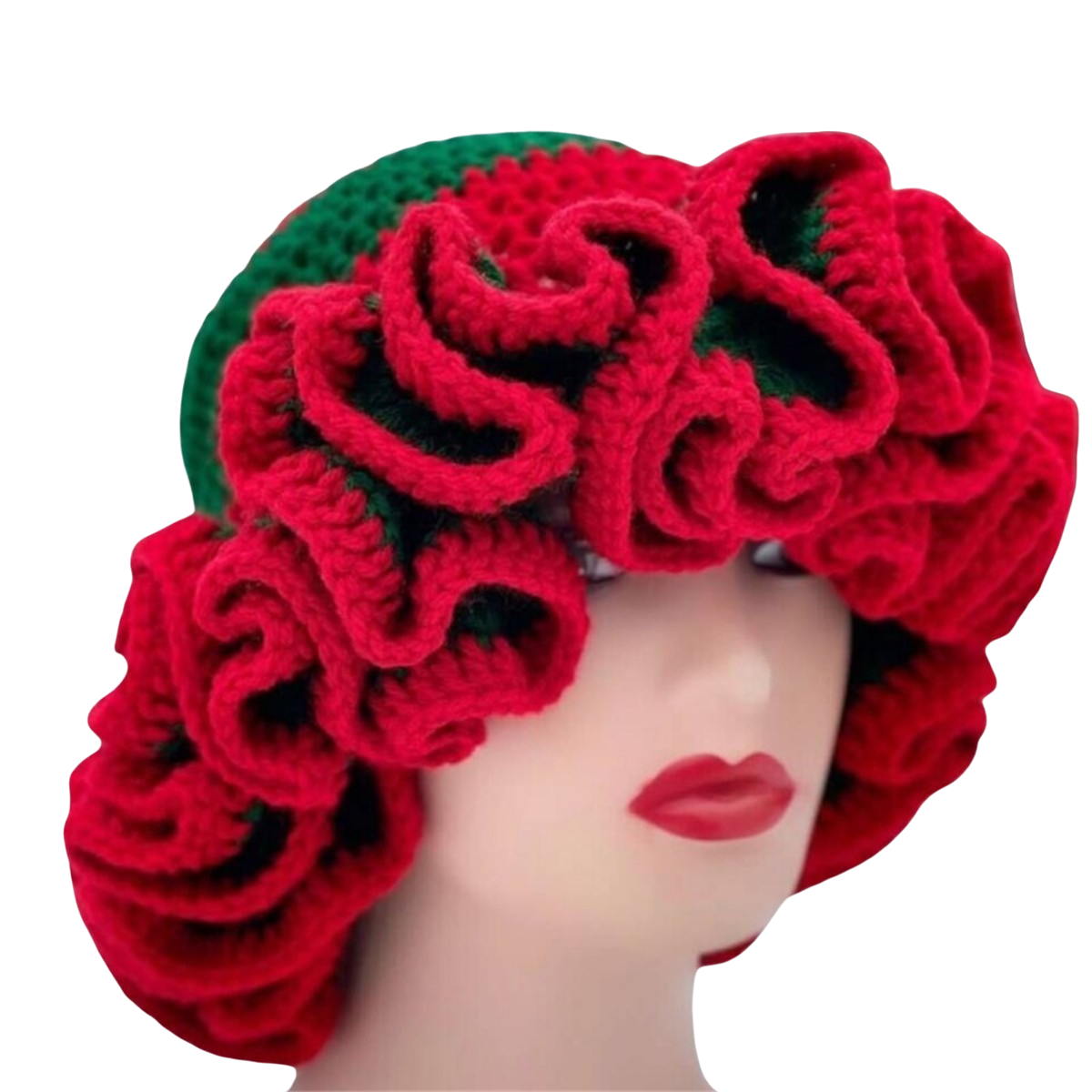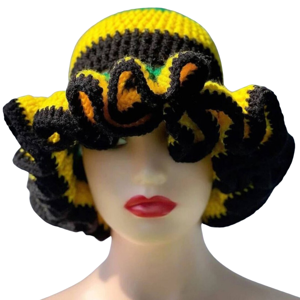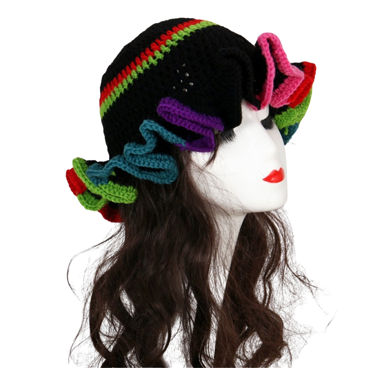 1.Stay warm and stylish this winter with a handmade knitted hat featuring a eye catching ruffled brim, perfect for carnival!