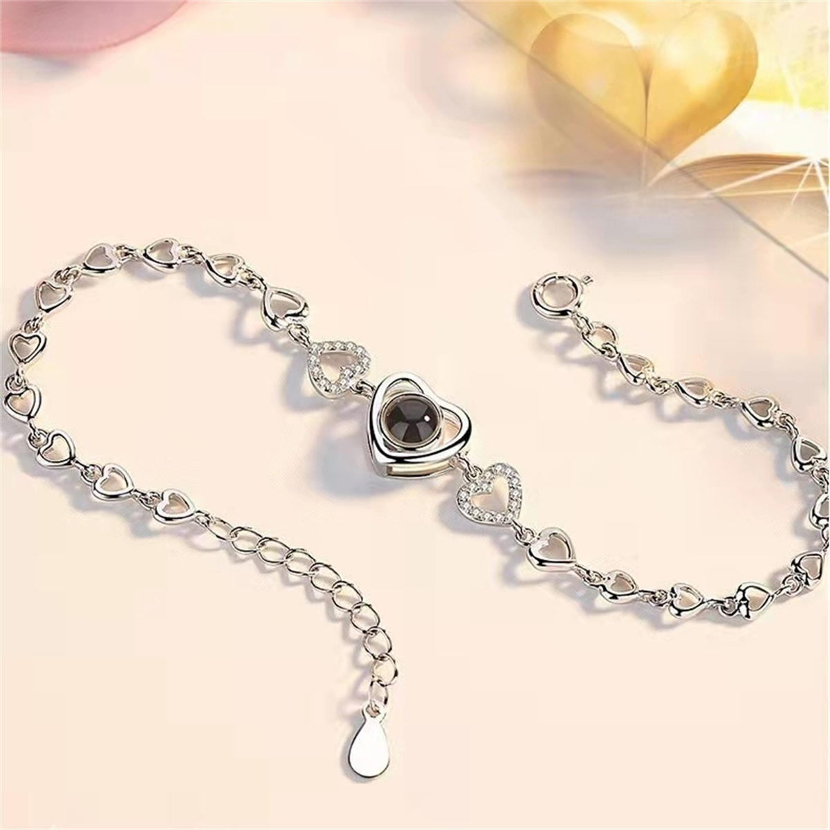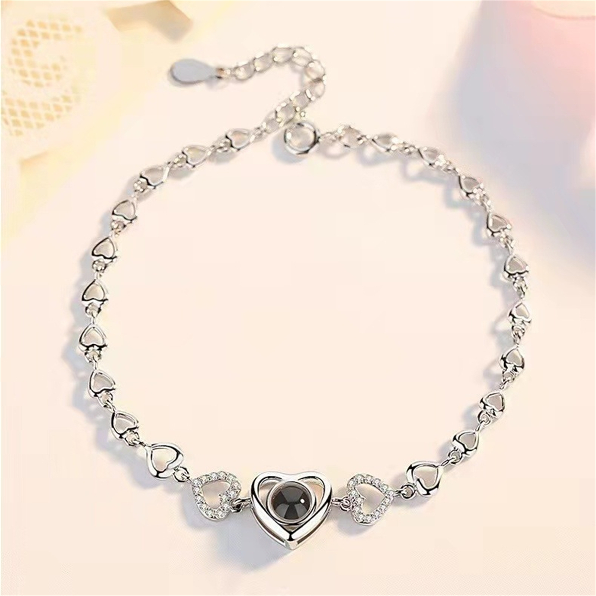 2. With a see-through lens, you can see the photo inside bracelet or you can shine a light through it and project your photo on a wall. Also, the length of the bracelet chain can be adjusted according to the size of your wrist.