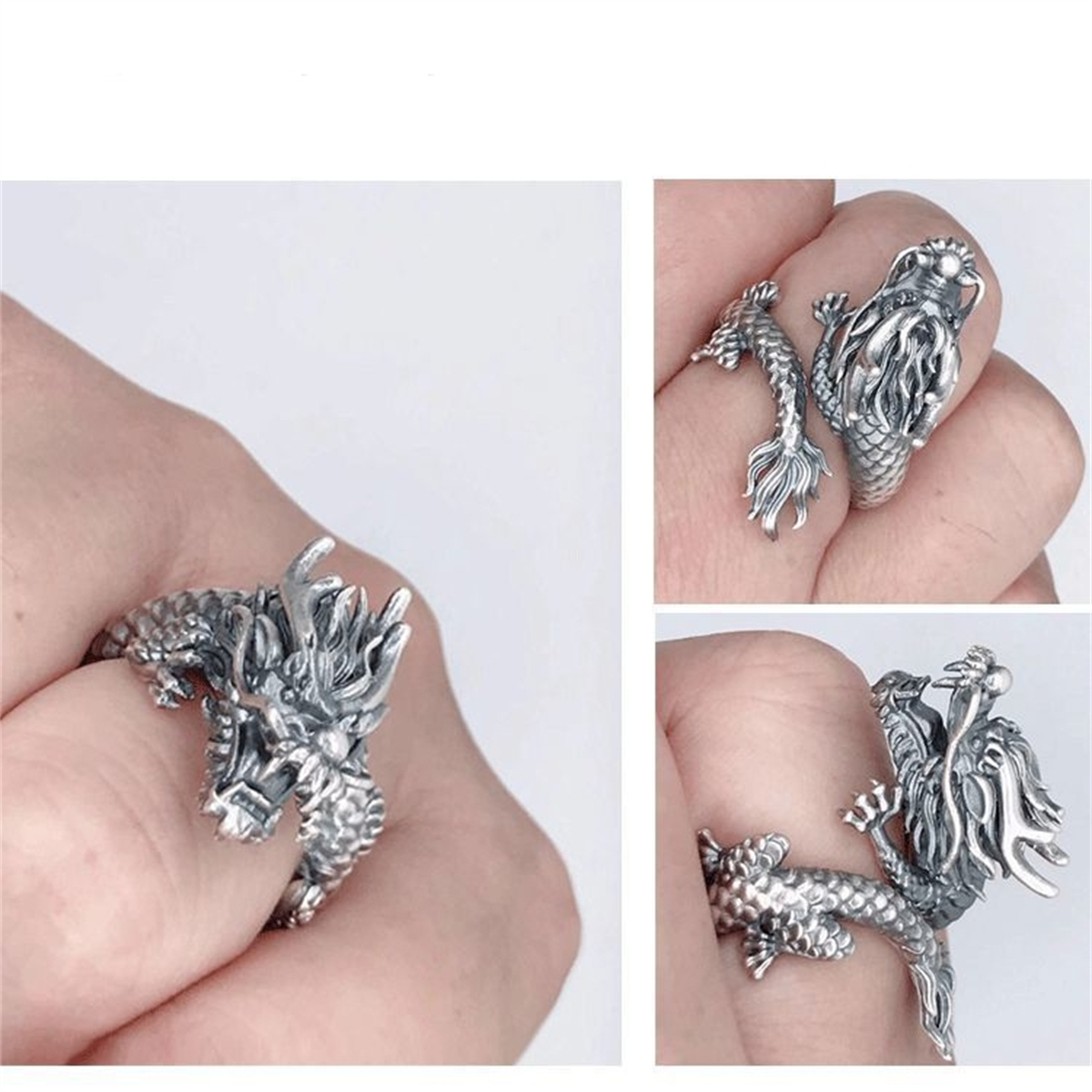 Vintage Dragon Adjustable Rings for Men Retro Gothic Finger Opening Ring Gift