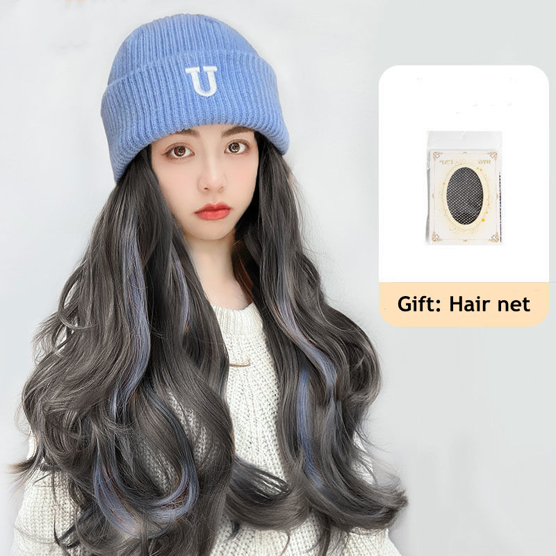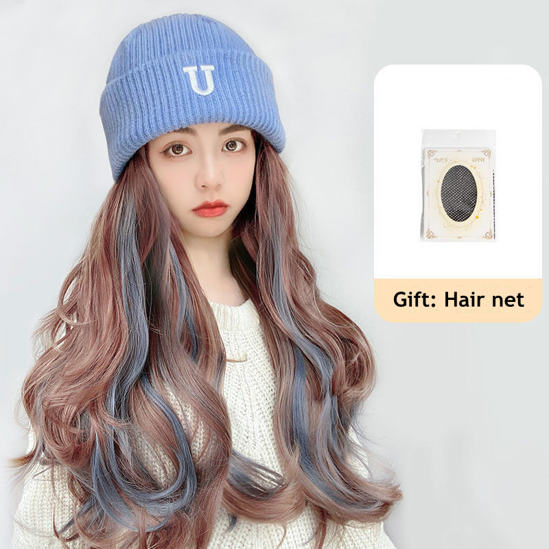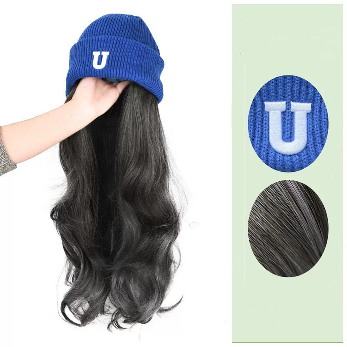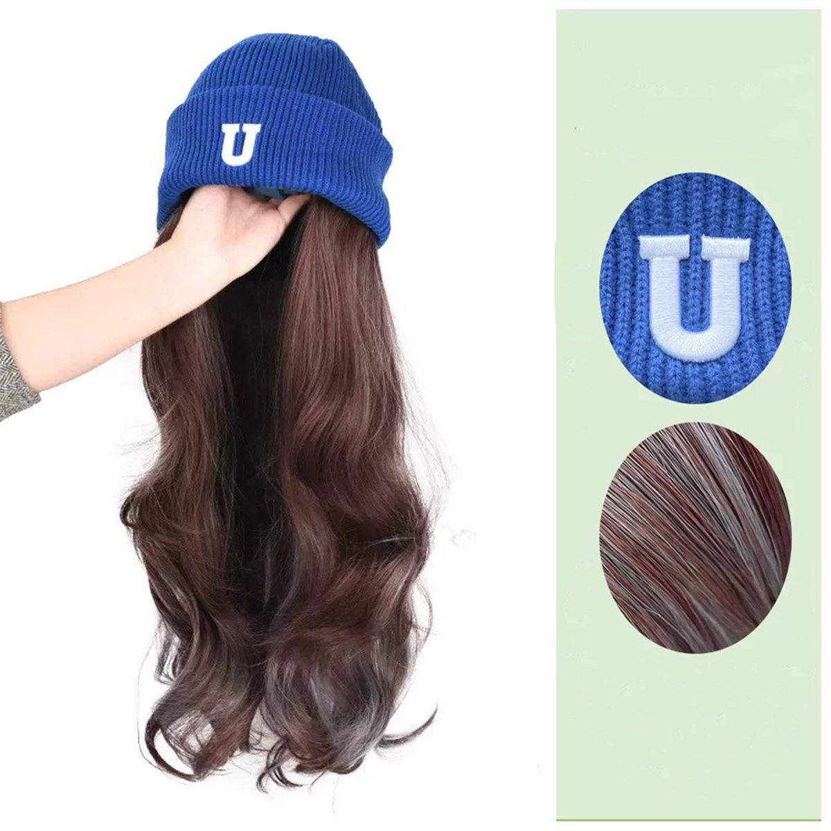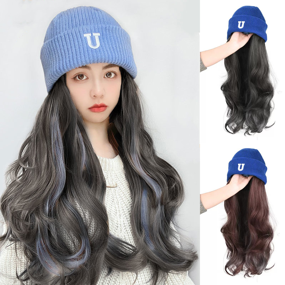 Women Hat Wig For Women Synthetic Long Wavy Curly Winter Knitted Beanies Hat