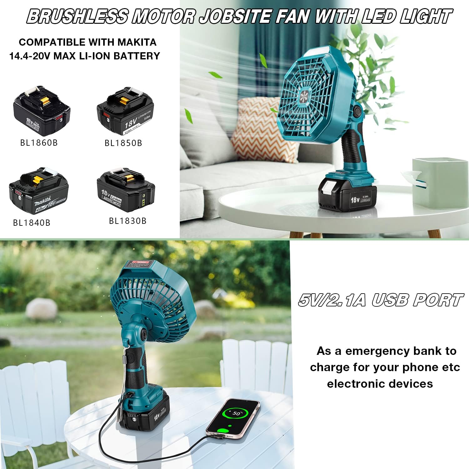 3 in 1 Camping Fan with LED Lantern, USB Portable Cordless Fan Compatible with Makita 18V LXT Lithium-ion Battery, 3 Speed Battery Operated Fan Personal Handheld Fan with Remote Table Fan