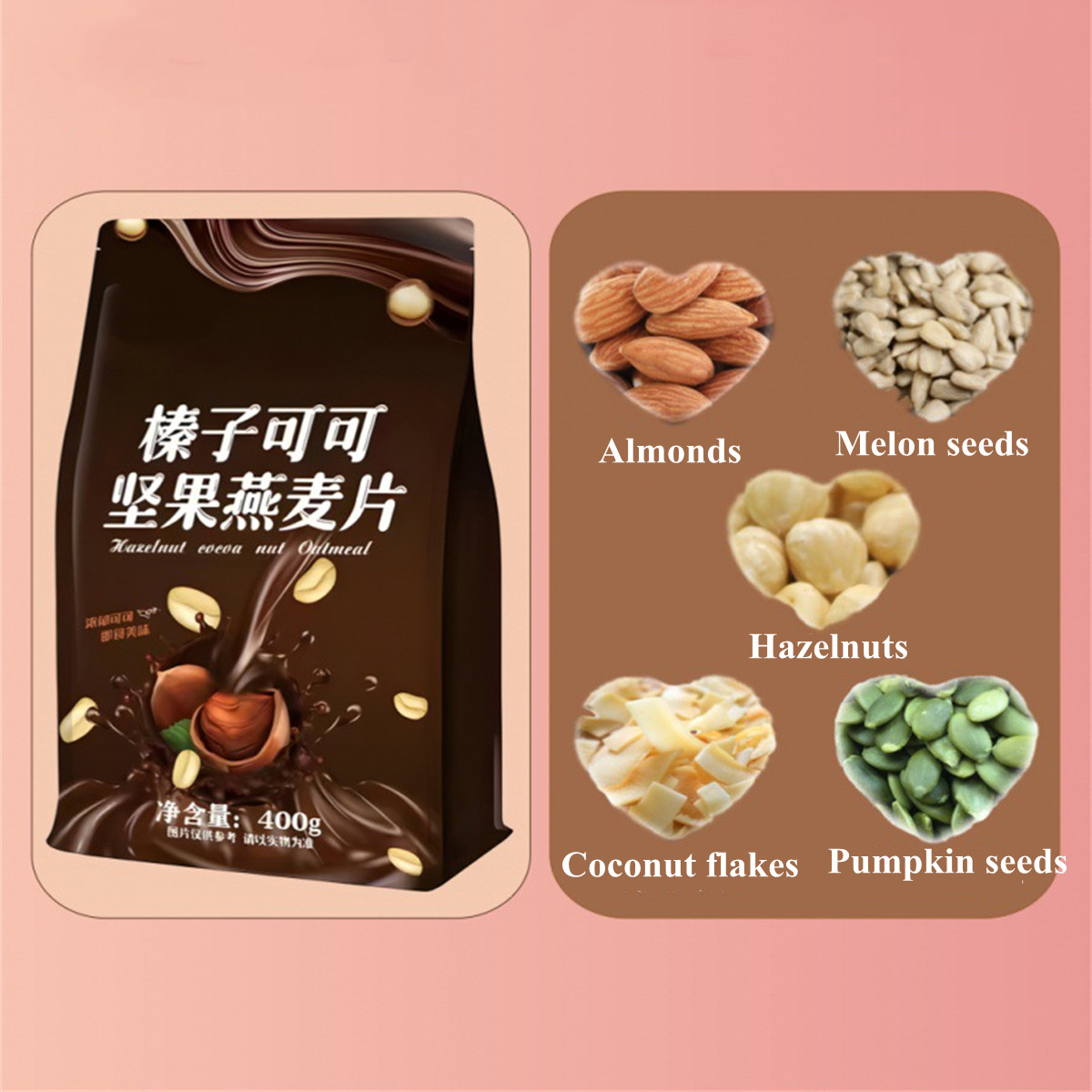 400g Hazelnut Cocoa Nut Baking Oatmeal Nut Chocolate Morning Meal Replacement