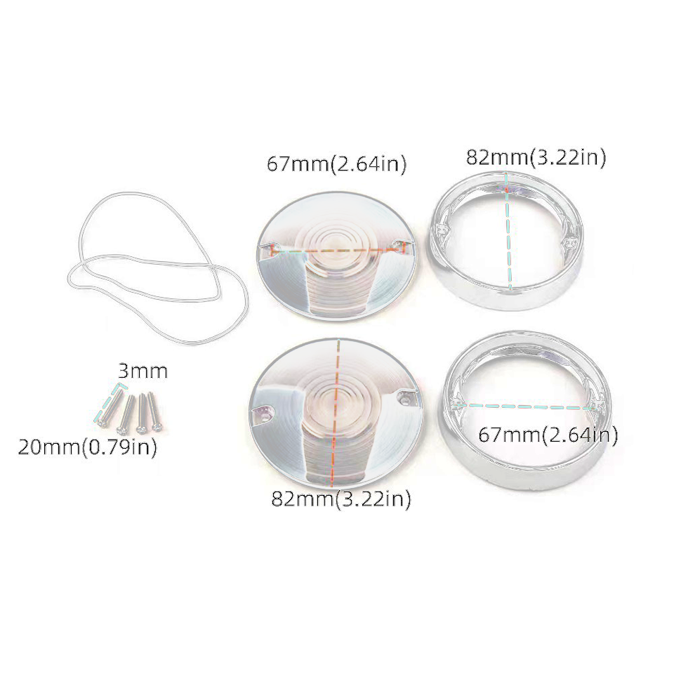 Add depth & style to your stock flat pancake style turn signals. These new Deep Dish Bezels are just the ticket to add a whole new look to the front or rear of your motorcycle. Simple to install, simply mounts over your existing turn signal lenses & features a design that allows for the existing edge of the lens to glow when illuminated. Specification: Condition: Brand New 2 x Waterproof seal rubber rings Fitment: Fit for 1986-up Harley Davidson 3 1/4" Flat Style Turn Signals (Electra Glides, Tour Glides, Road Glides, Road King, Heritage)