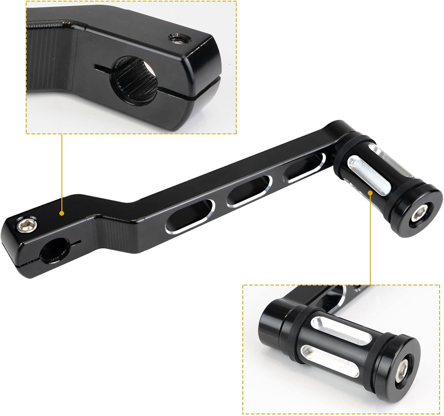 Features: Color:Black Material:High quality billet aluminum Size:aprox.18.9cm(Length) Place on motorcycle: Left (front & rear) Best replacement for your stock levers Fit For Harley Softail 1986-2017 Fit For Harley Touring 1988-2023 Fit For Harley Tri 2008-2023 Package included: 1 pair Shift Lever Pedal (Left: Front & Rear) Easy to install. Instruction is no Included.Heel Toe Gear Shift Lever + Shift Peg for Harley FL Softail/Touring Electra Glide Road King Road Glide FLHX Street Glide/Tri Glide Trikes Shifter Levers,Black
