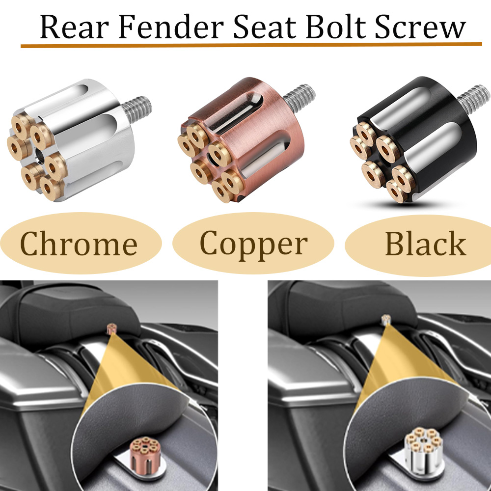 Specification: Condition: Brand New 3 Color optional : Chrome or Black or Copper for your choice Bolt Thread size: 6mm(1/4''-20) No fit 1/4"-28 thread. Material: Billet aluminum Package included: 1 x Rear Seat bolt Features: 1:Thread type is 1/4"-20, replaces the standard seat bolt 2: Quick and easy to remove the seat instead of wasting time to find a screwdriver to take it off 3:This bolt is for rear of seat to top of rear fender mount. 4:Lot for side mount bolts or nuts or not for Knob mounting. 5:Don't need tools to install or remove. 6:Easy installation. 7.Compatible:is for with Harley Sportster Touring Softail Dyna CVO 1996-2022 and other vehicles with 1/4"-20 Thread. Fitment: For 1996-2015 Harley Sportster, Wide Glide, Street Bob, Roadking, Fatbob, Streetbob, Softail, Dyna, Street Glide, Road Glide, Ultra Glide, Touring and other model with 1/4-20 thread Does not fit seats equipped with spring-loaded rear seat bracket. Note: Please check the existing thread type on your Harley Seat Bolt first to confirm that this product will be compatible.