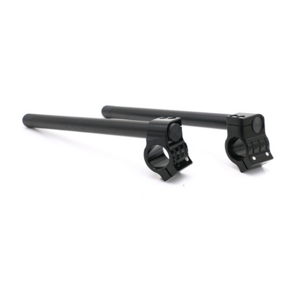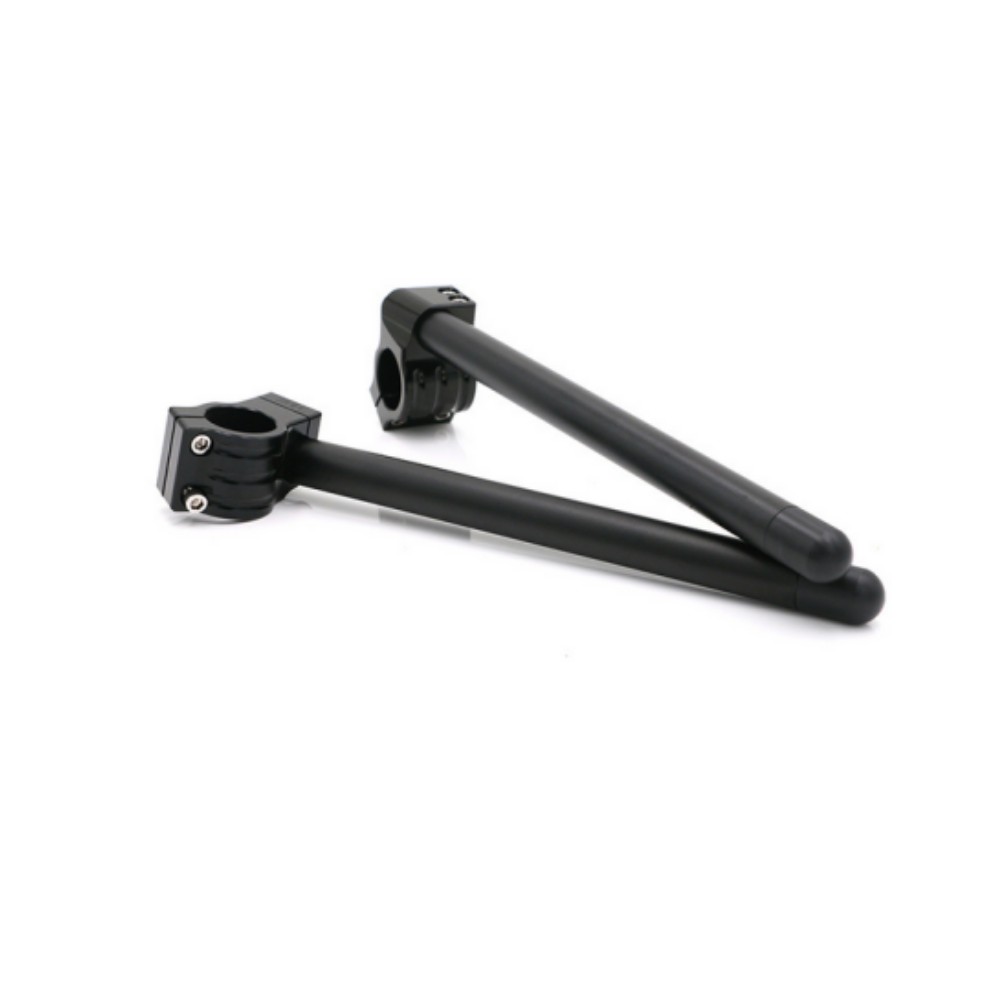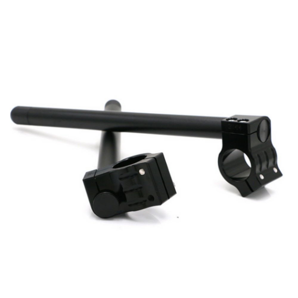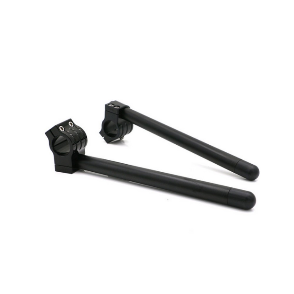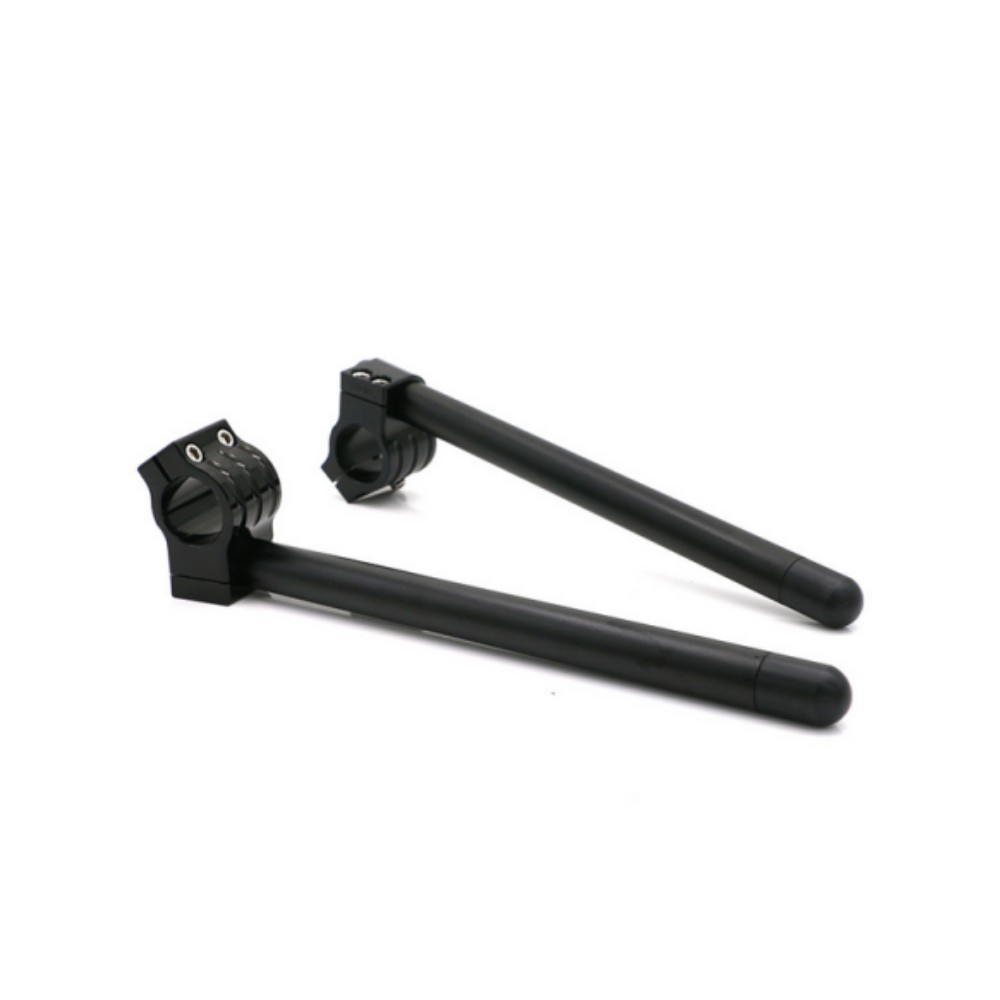 The Clip-On Handlebars are stronger, lighter and more adjustable than stock handlebars. CNC machined from solid billet aluminum with a removable handlebar.In the event of a crash , you simply replace the handlebar tube instead of the entire handlebar Stainless steel fasteners and delrin plastic ends add the finishing touch.It is a very economical replacement and fast upgrade for your vehicle.