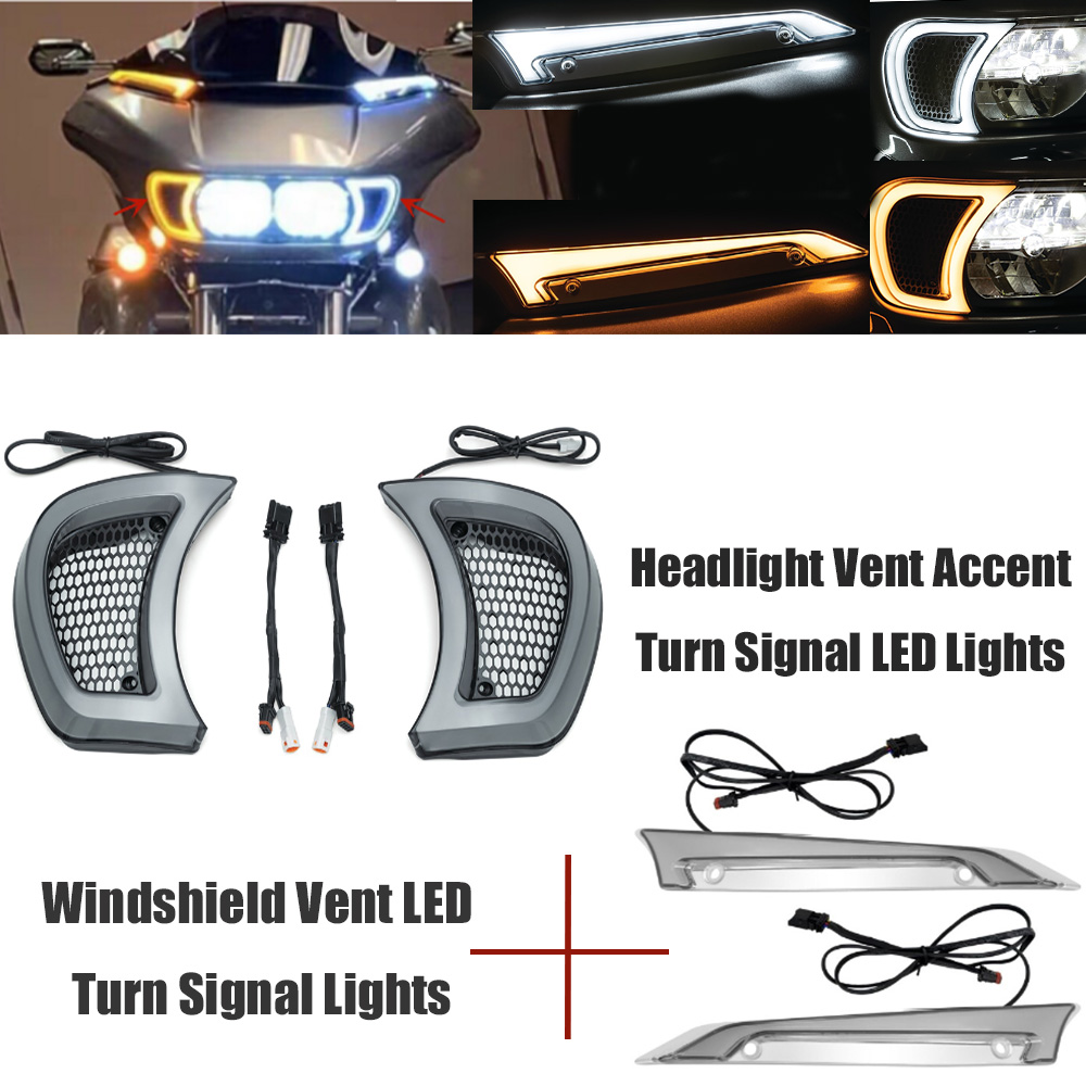 For Harley 2015-up Road Glide FLTRX LED Windshield Headlight Vent Trim Light