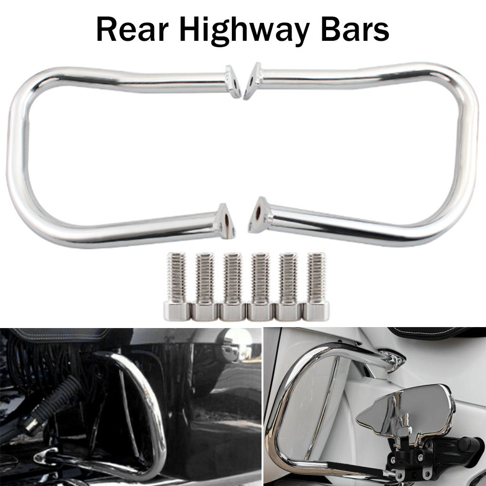 Specification: Material: Steel Color: Chrome (black available) Tube Diameter:1 inch Placement on Vehicle: Rear To help give the motorcycle a classic American motorcycle look while providing added protection. Installation: Mount directly to the Indian Motorcycle frame ,Bars bolt to frame easily with provided fasteners FITMENT PACKAGE INCLUDED: A Pair highway barsChrome Black Rear Highway Bars For Indian Chief Classic Vintage 2014-2023 Dark Horse