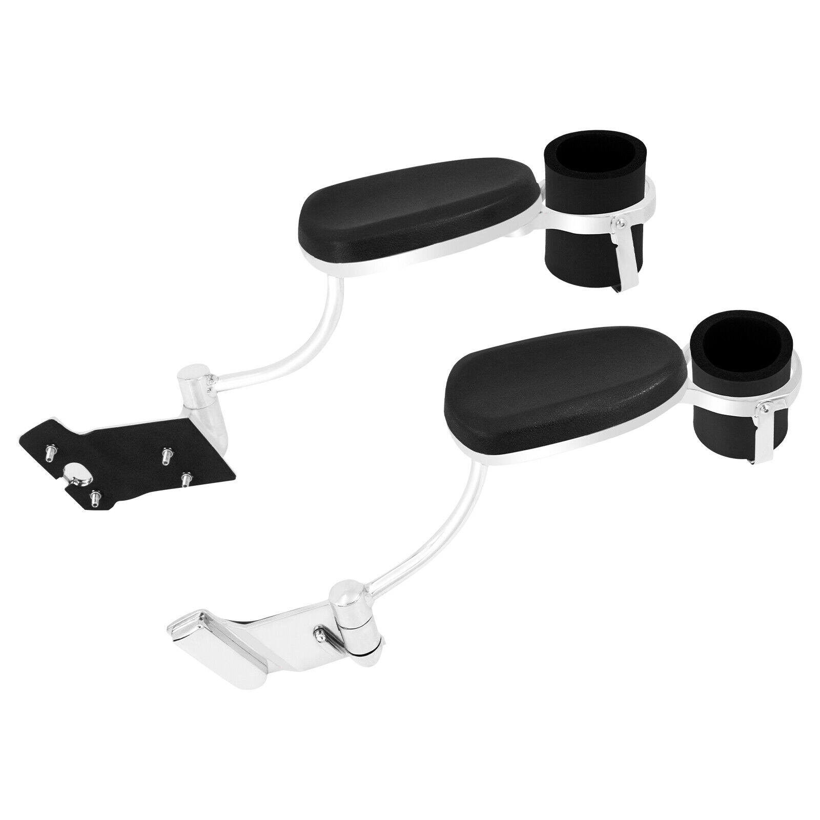 - The shapely chrome mounting brackets of Passenger Armrest Kit fasten to the trunk & provide a sturdy mount for the swing-away armrests.