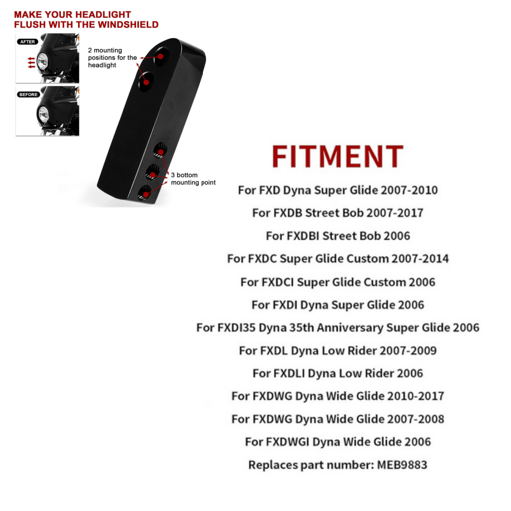 Headlight Extension Block Replacement for Harley Dyna Road Warrior Fairing 2007-2017 for Memphis Shades Windshields and Fairings Replaces MEB9883