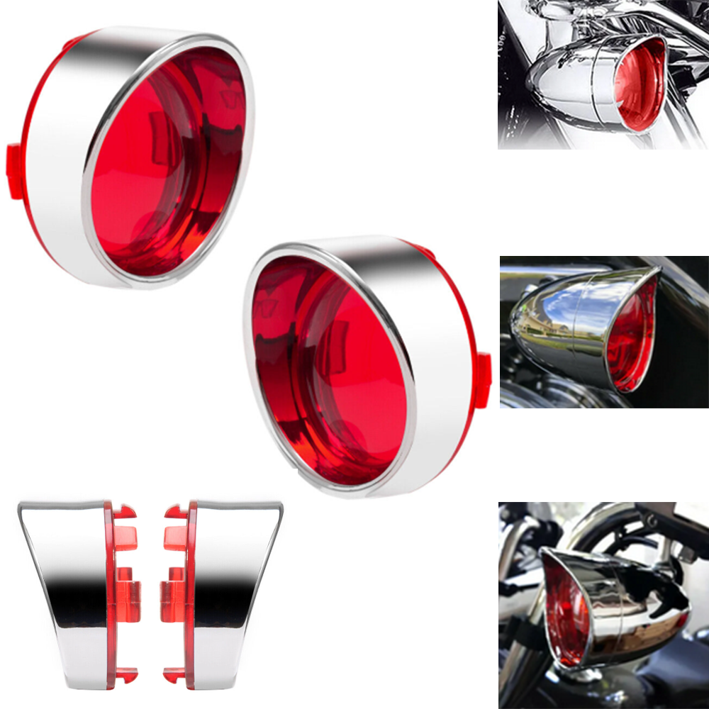 2X Turn Signal Light Red Lens Cover Bezel Visor for Harley Touring Dyna Softail
