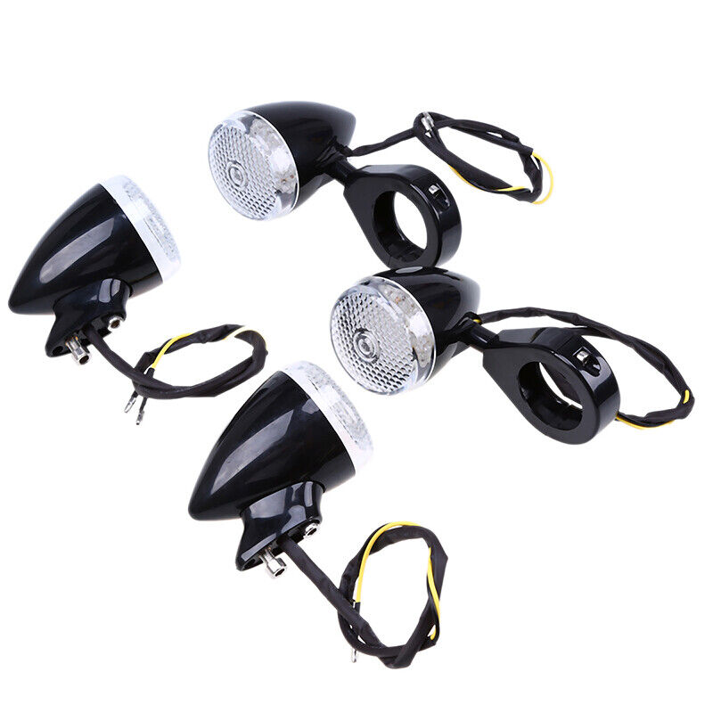 4pcs Motorcycle Led Turn Signal Lights For Harley Indicator Lamps Black Housing 39mm With Front Rear Fork Clamp