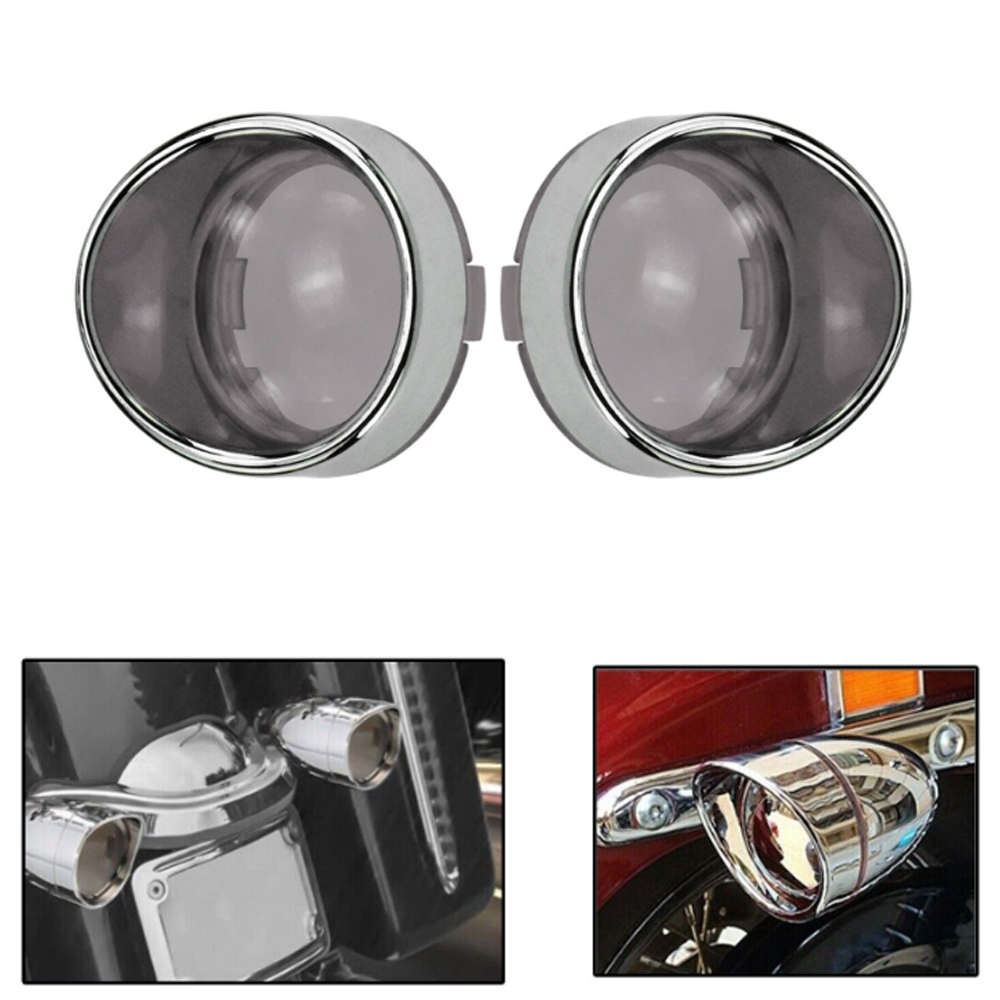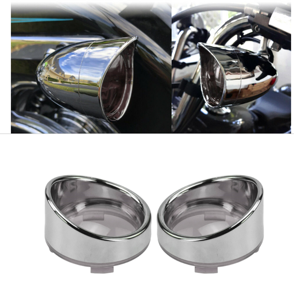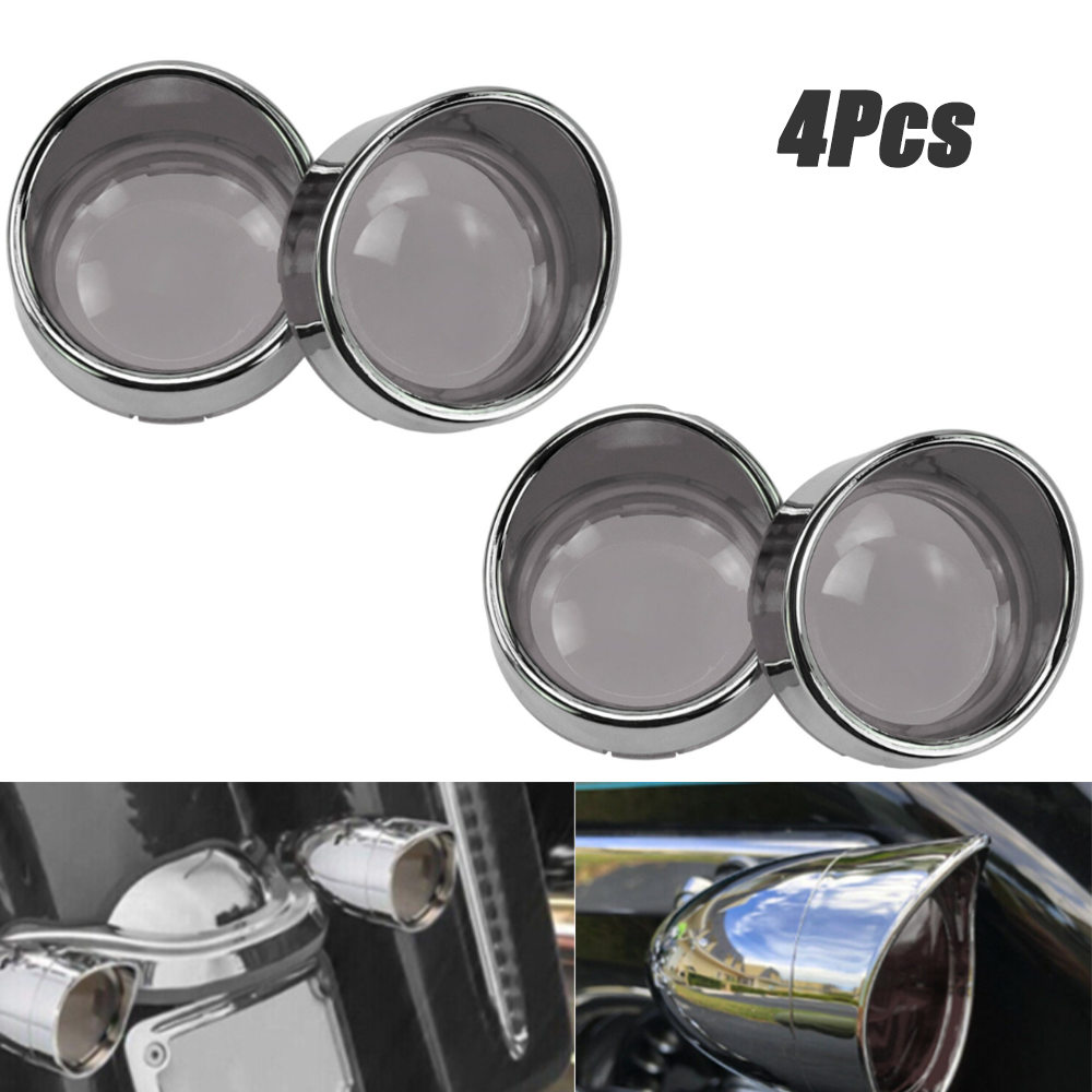 4x Smoked Turn Signal Lens Covers w/Chrome Visors Bezels Fit For Harley Touring