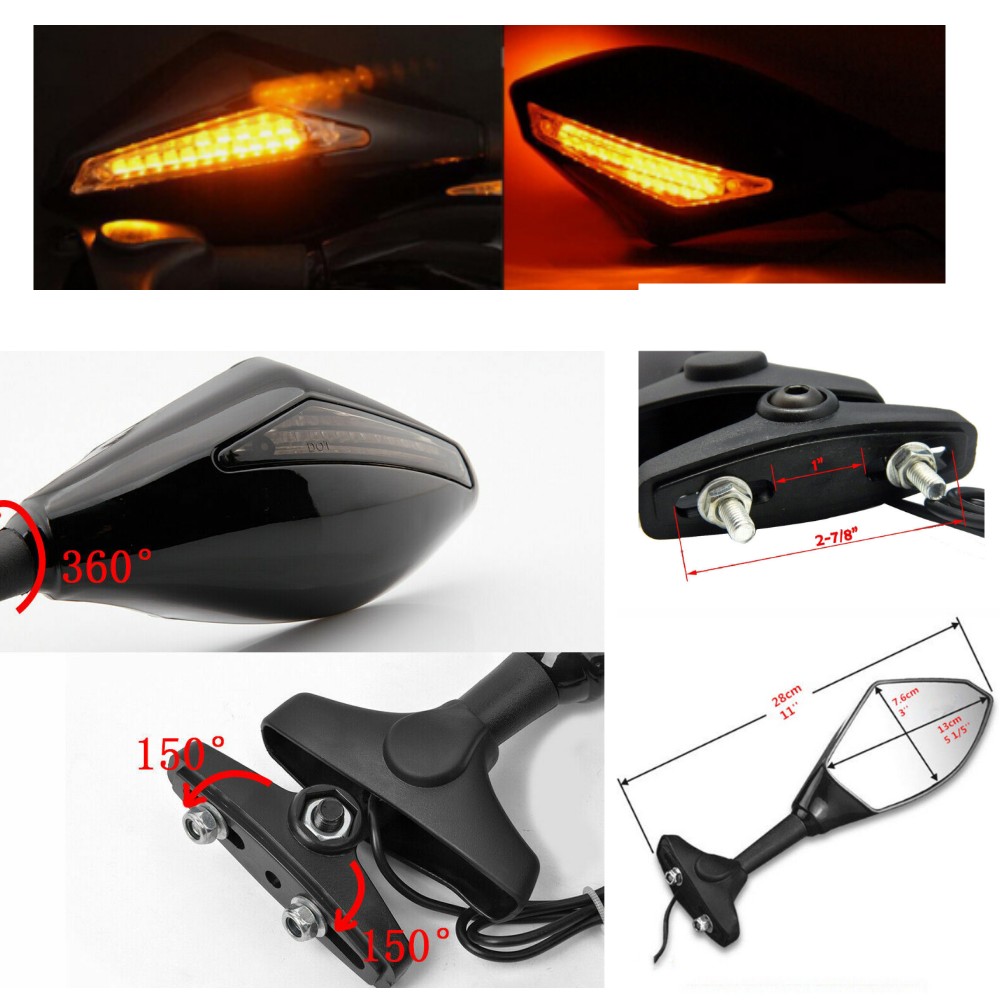 ✅【 With Led Turn Signal Lights 】Thanks to the design of LED light on the back, this motorcycle rearview mirror can also be the turn signal lights at the same time.Thus, it can help you see the upcoming cars and obstacles no matter in day or night,which ensures your safety in dark condition.