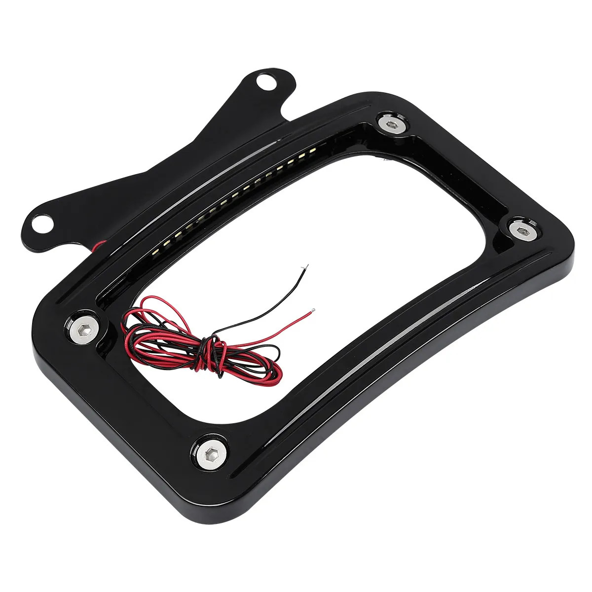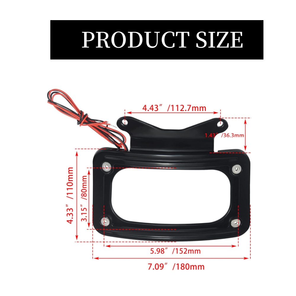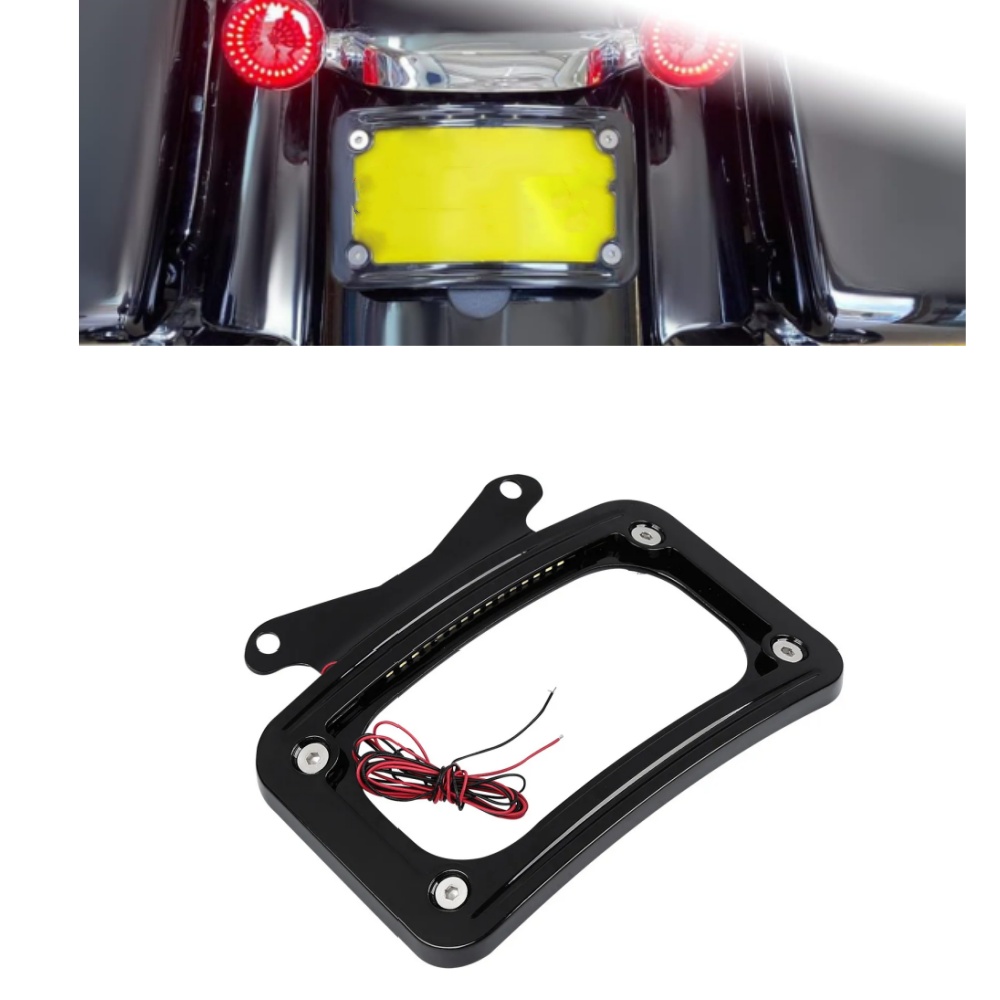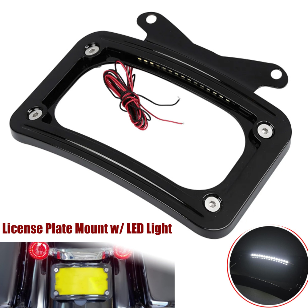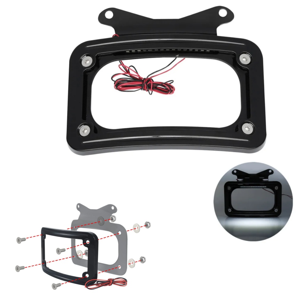 Specification: Feature: --Installation instructions not included. --Attaches to the underside of the rear turn signal bar; Dress up the rear fender and add practical auxiliary lighting at the same time. Designed to replace the Original --Equipment black license plate bracket, the curved design of the frame complements the shape of the fender, it comes with white LED lighting to enhance visibility and type on the road; Fitment: Package Included: